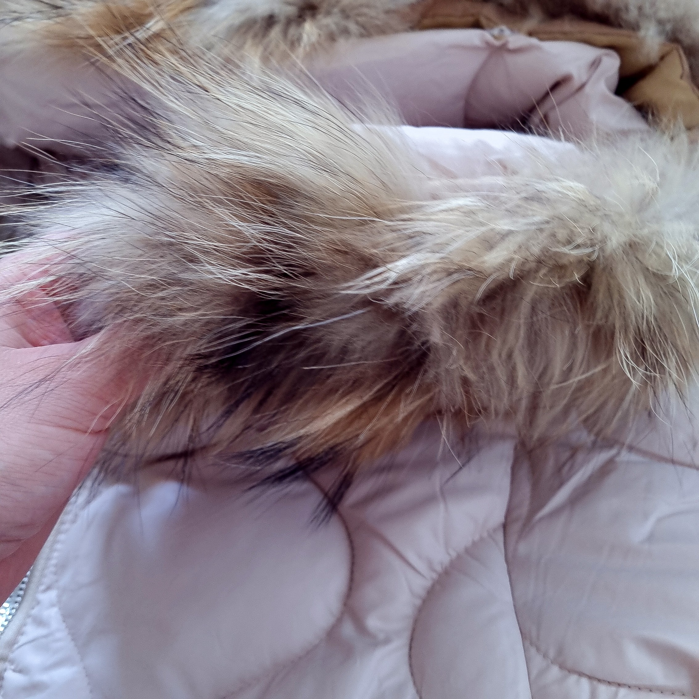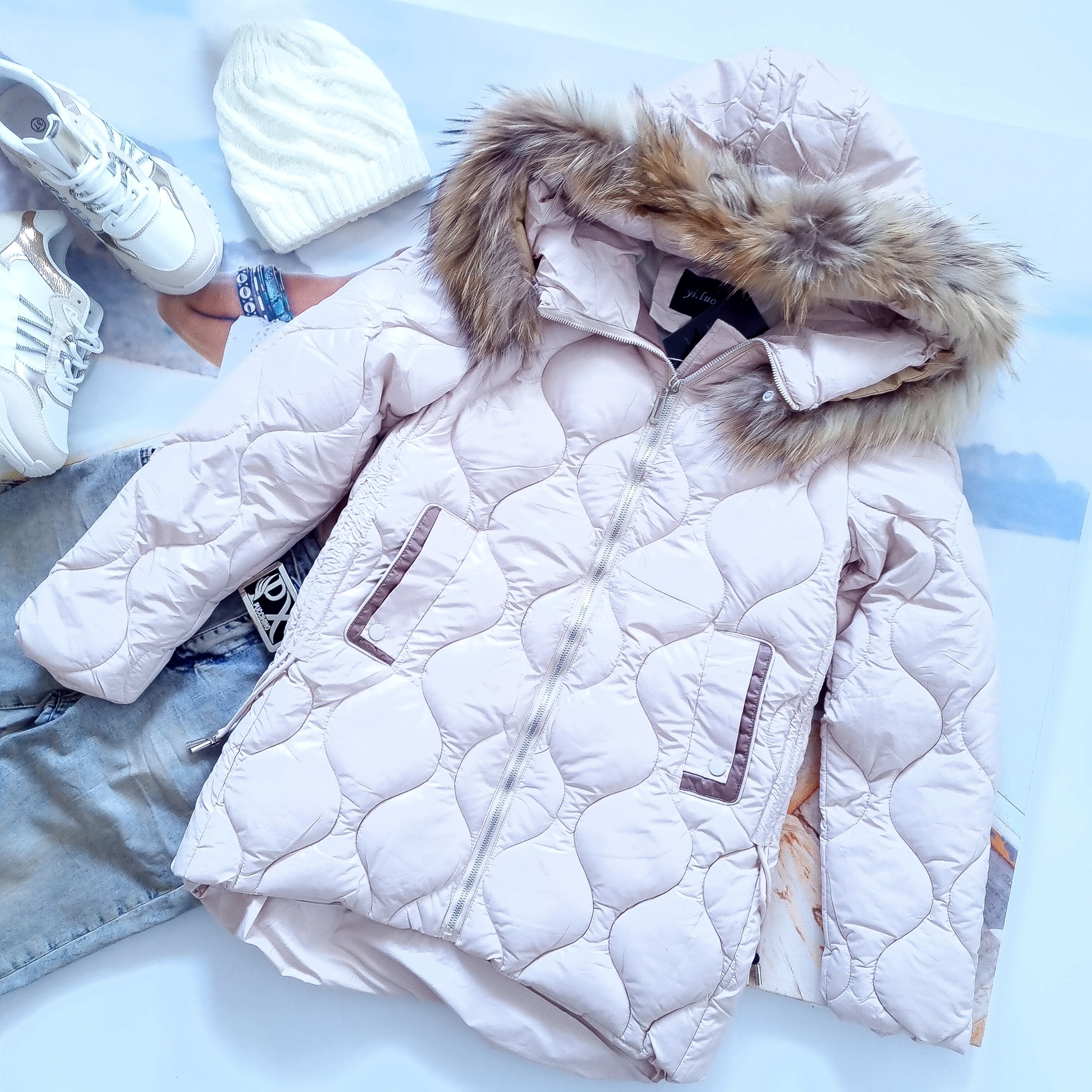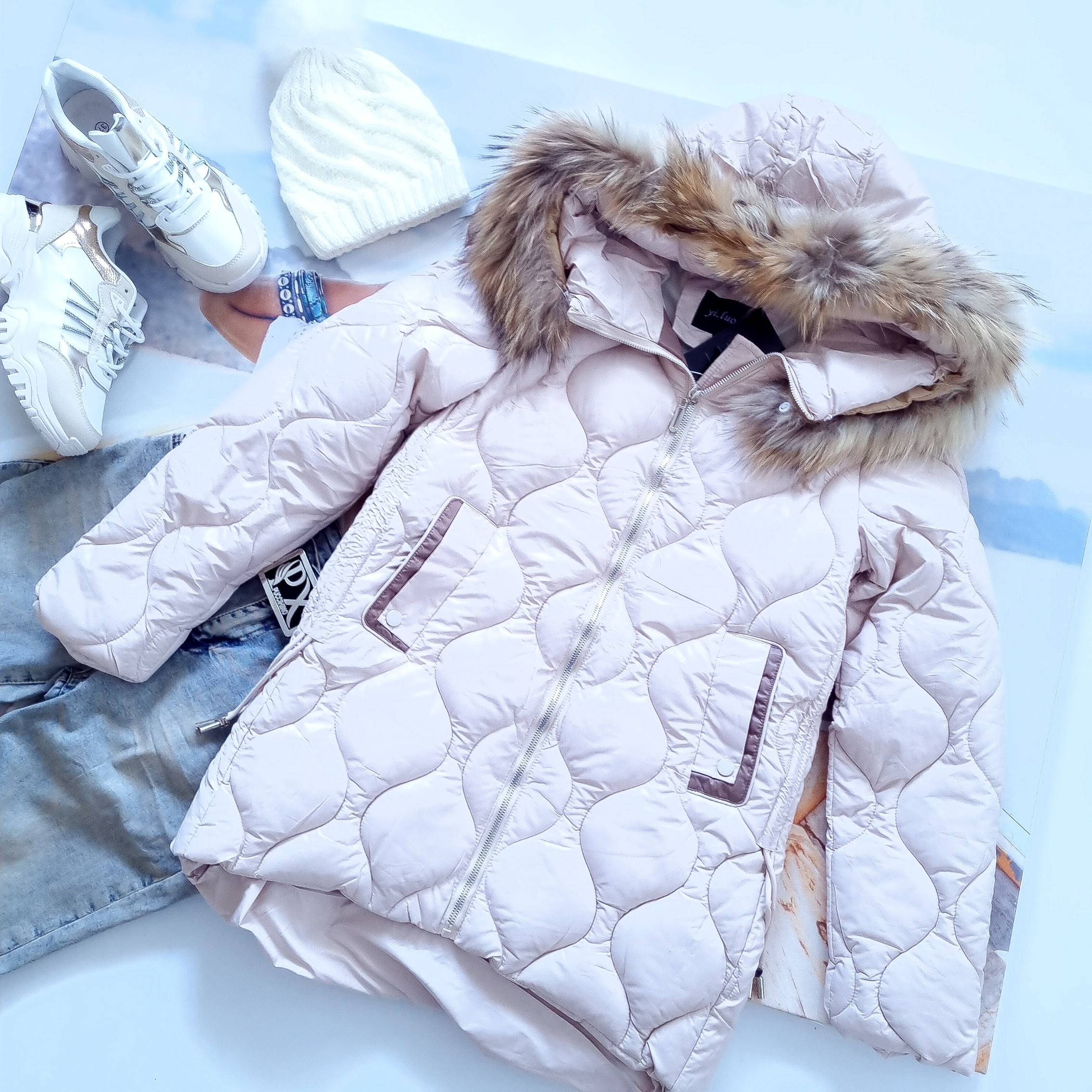 BEŻOWA PIKOWANA KURTKA Z KAPTUREM - NATURALNE FUTRO'