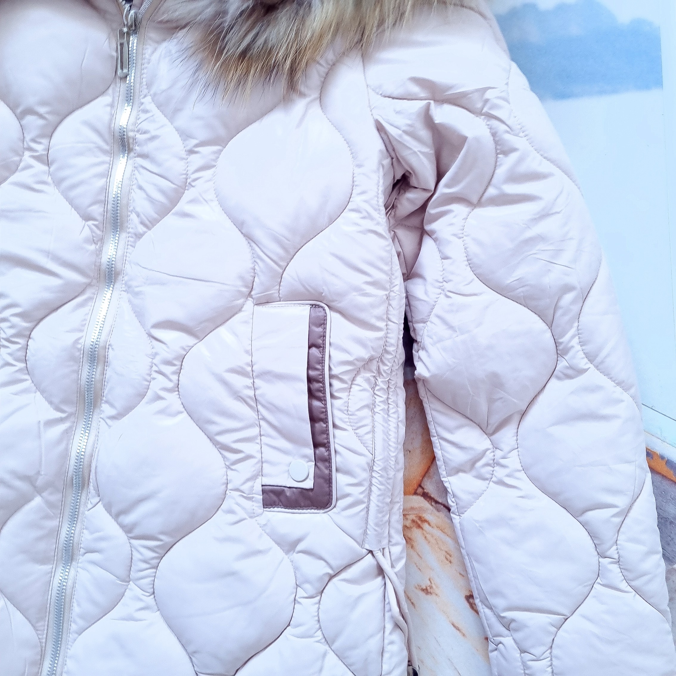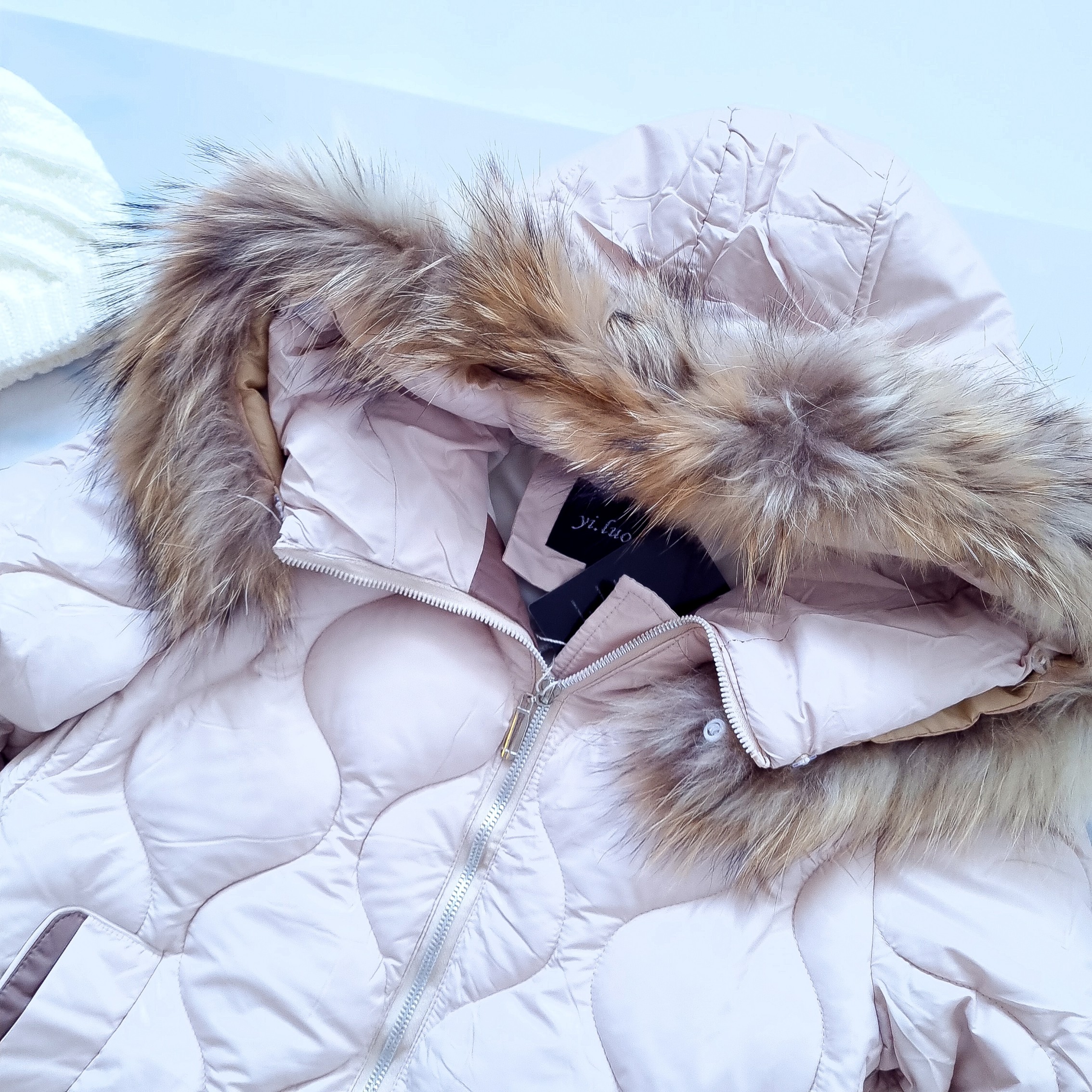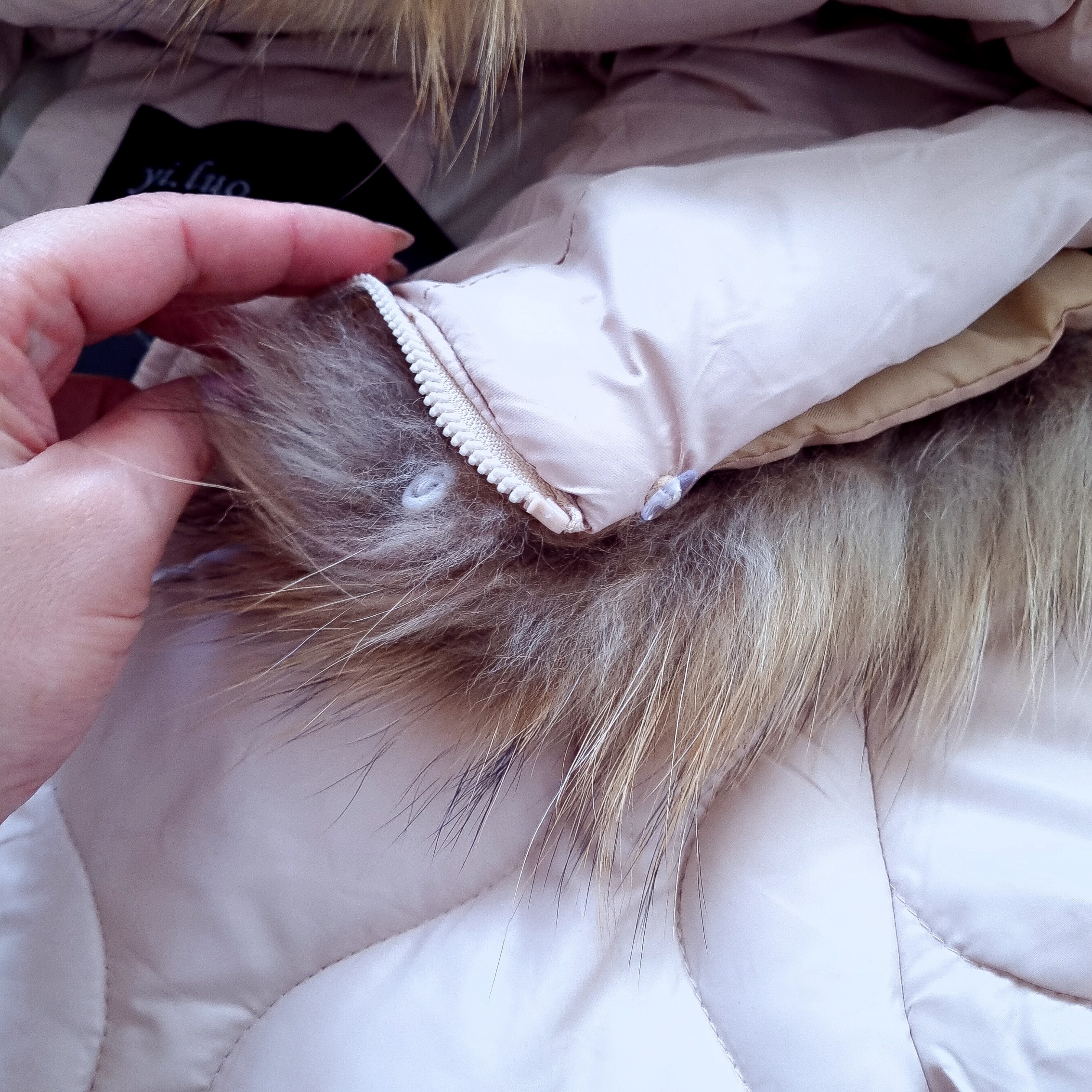 BEŻOWA PIKOWANA KURTKA Z KAPTUREM - NATURALNE FUTRO'