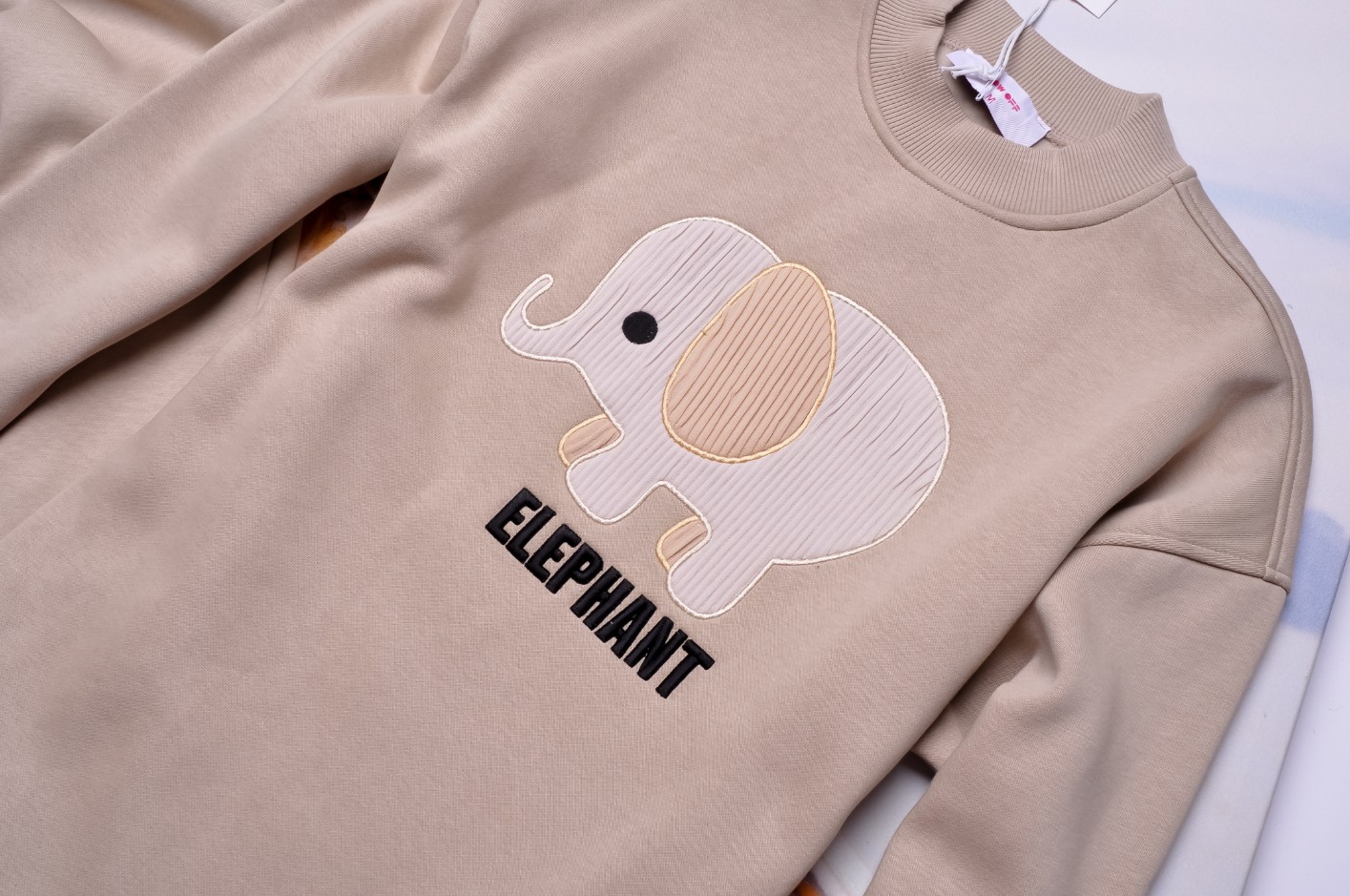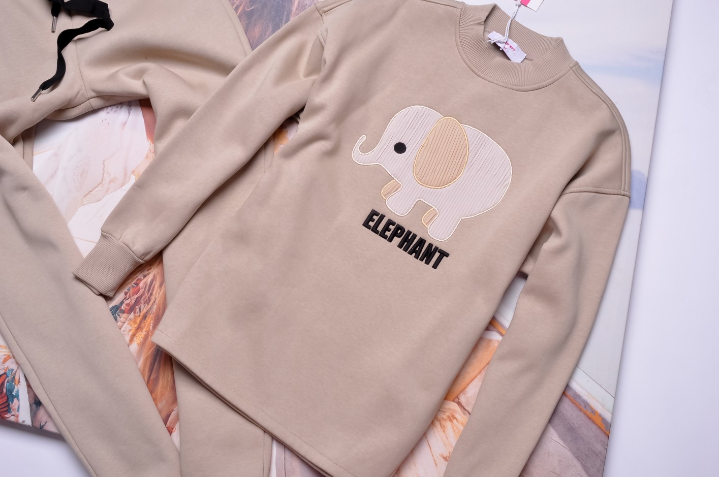 BEŻOWY DRES OVERSIZE ZE SŁONIKIEM