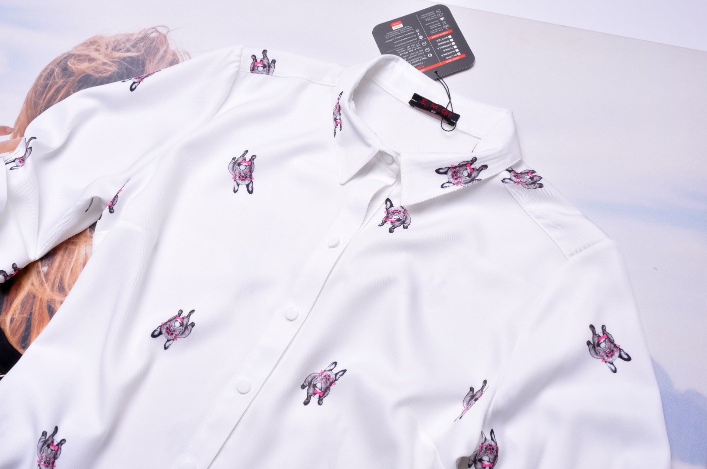 BIAŁA KOSZULA W PRINT UROCZYCH BULDOGÓW