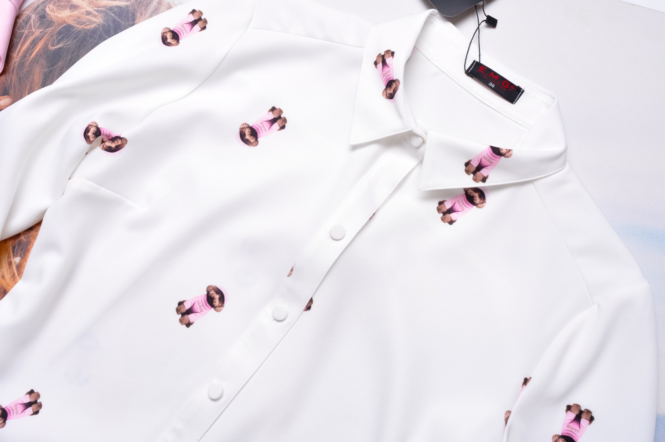 BIAŁA KOSZULA W PRINT UROCZYCH PUDELKÓW