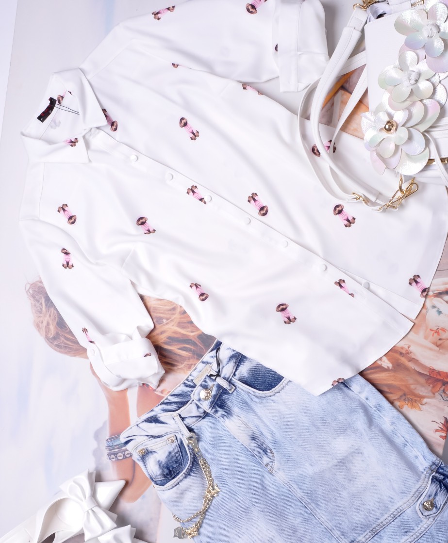 BIAŁA KOSZULA W PRINT UROCZYCH PUDELKÓW