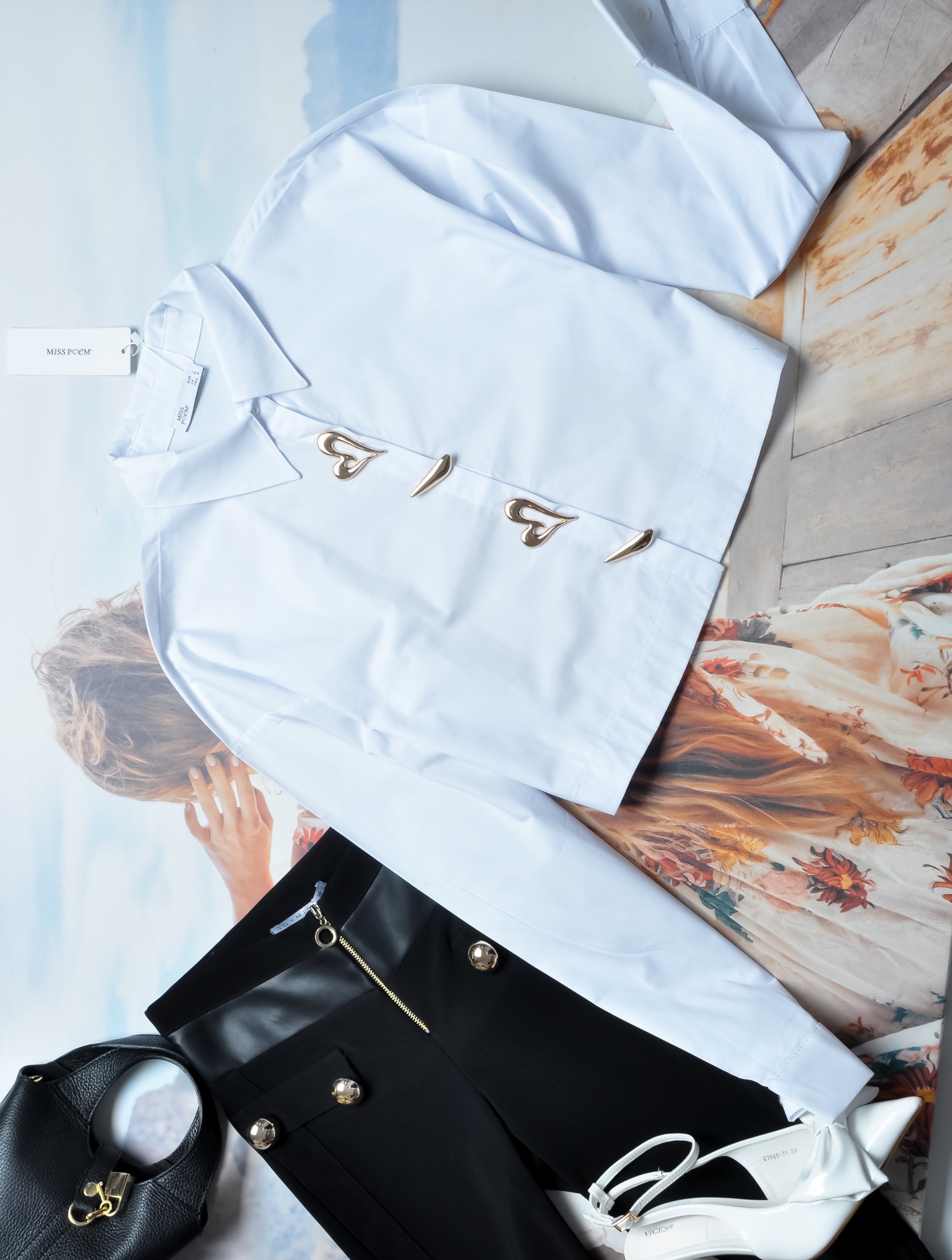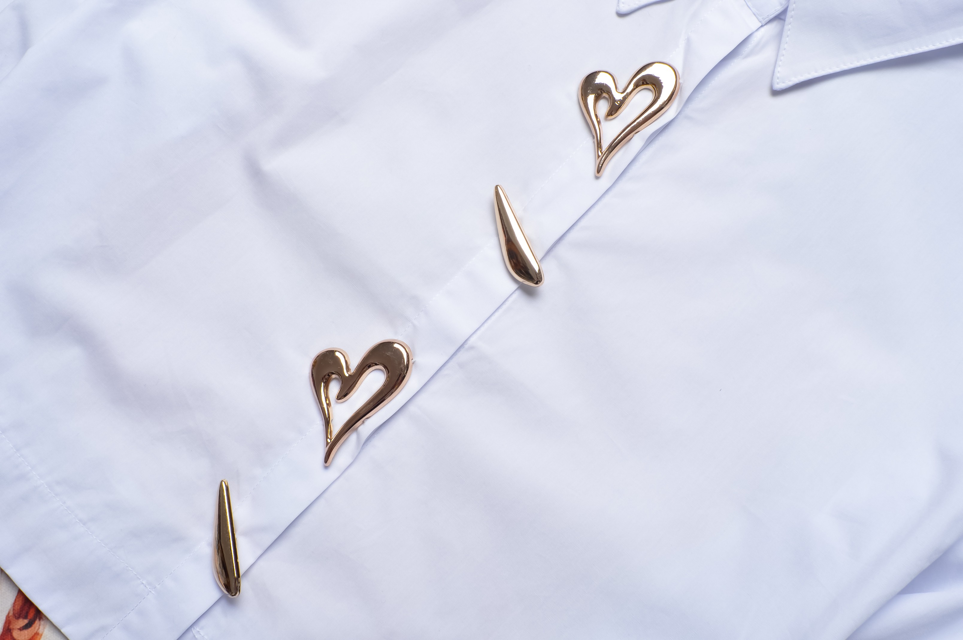 BIAŁA KRÓTKA KOSZULA - ZŁOTE PRZYSZYWKI