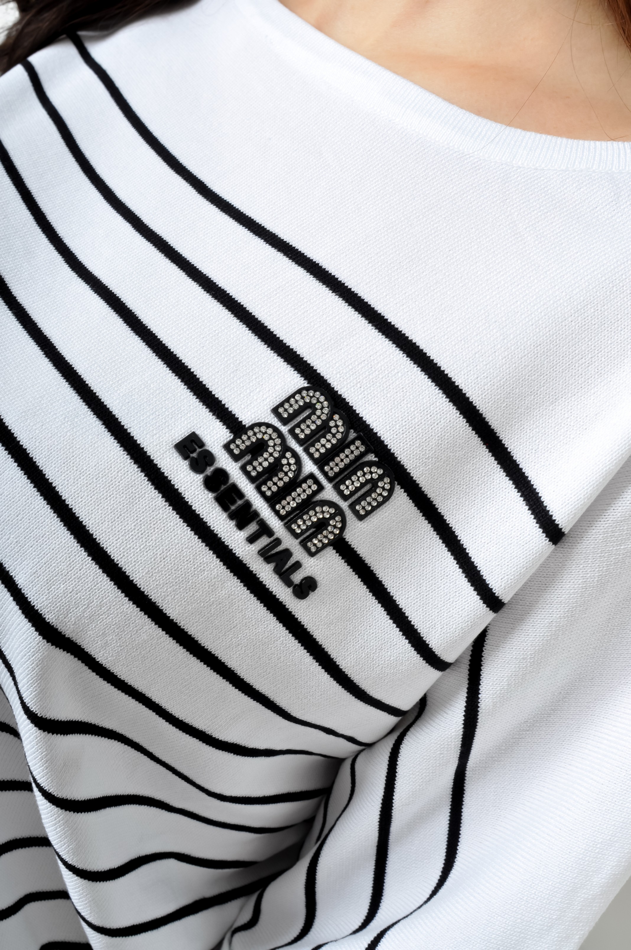 Kod produktu:33/2 BIAŁY SWETEREK W CZARNE PASKI - SREBRNE LOGO_20251211125659