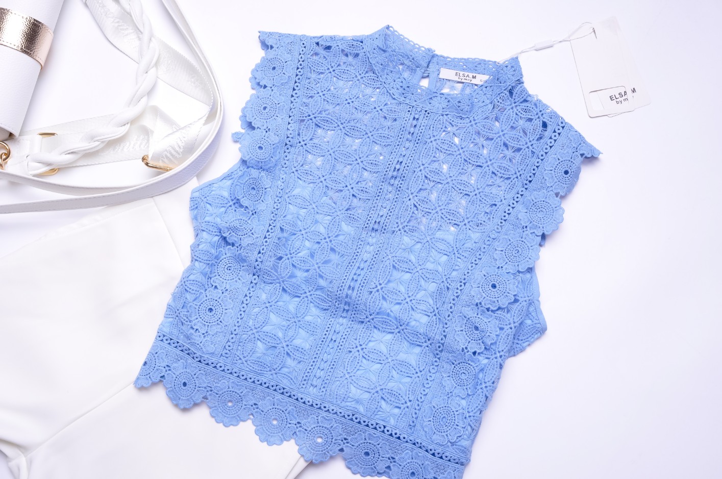BŁĘKITNA KRÓTKA AŻUROWA BLUZECZKA