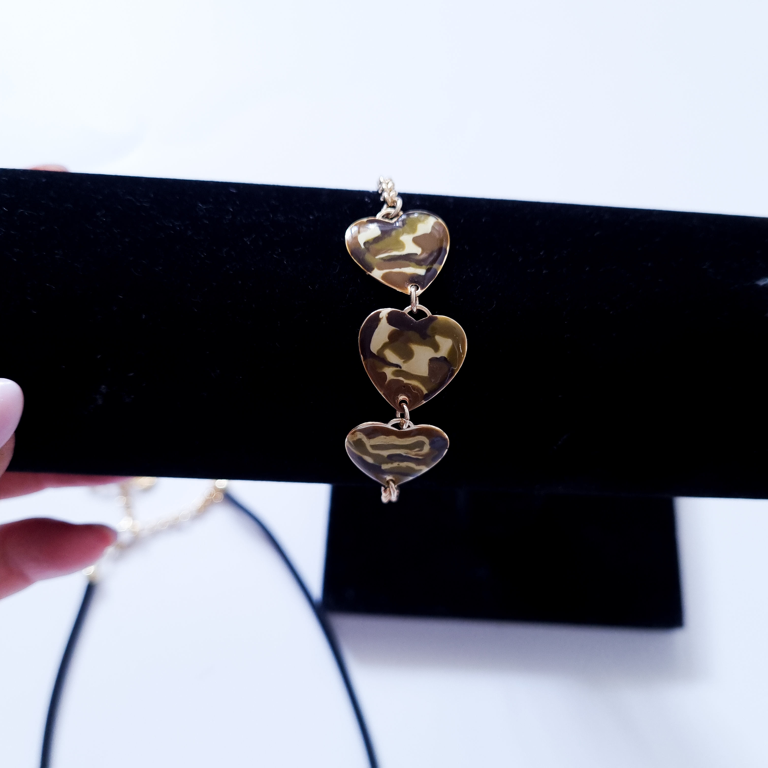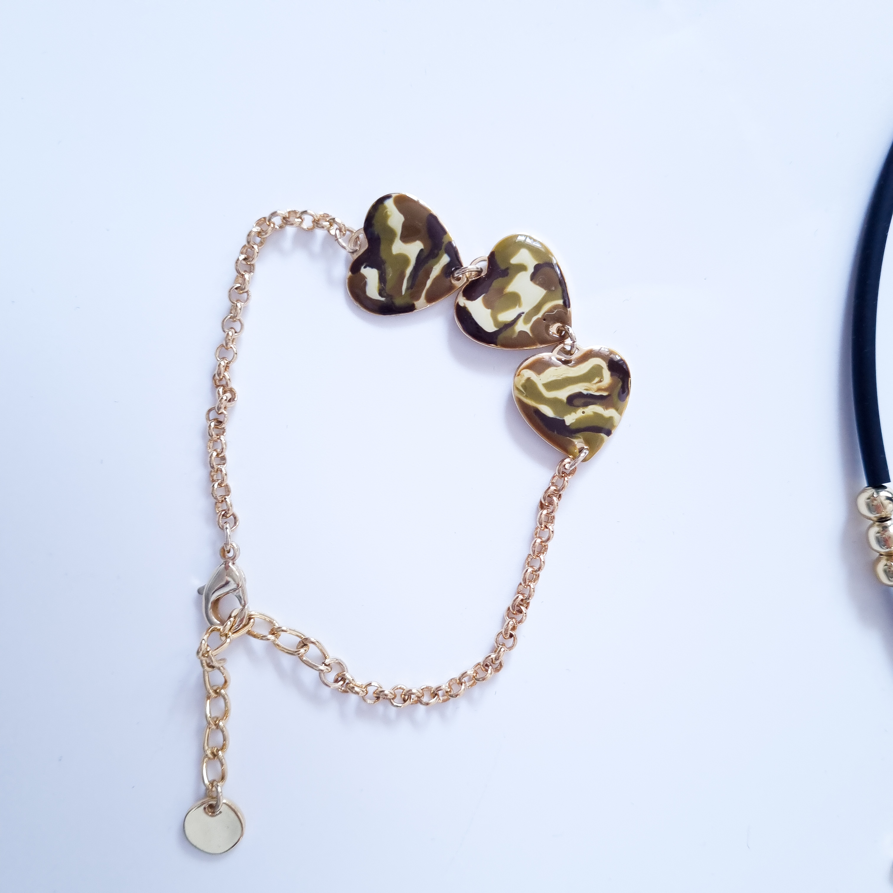 BRANSOLETKA Z SERDUSZKAMI W STYLU MILITARNYM