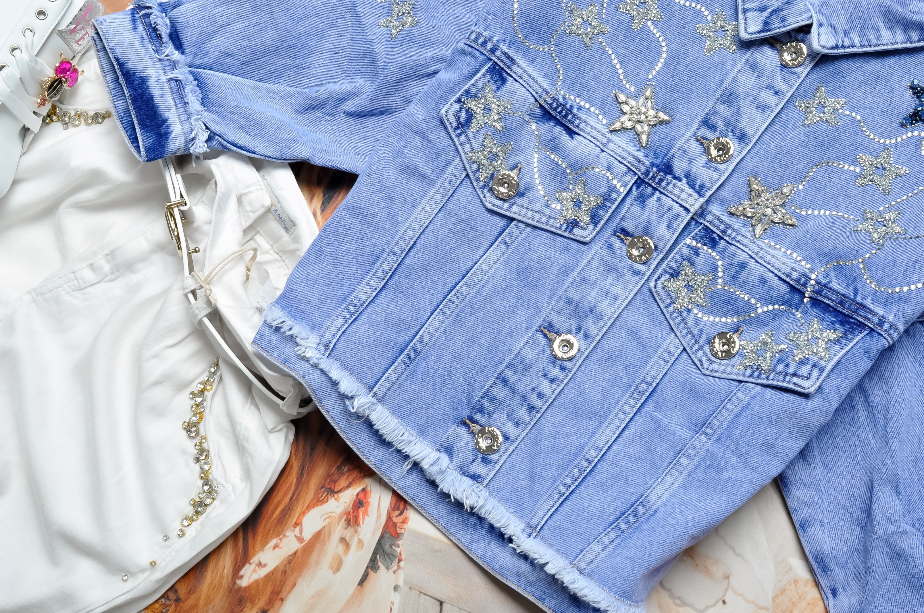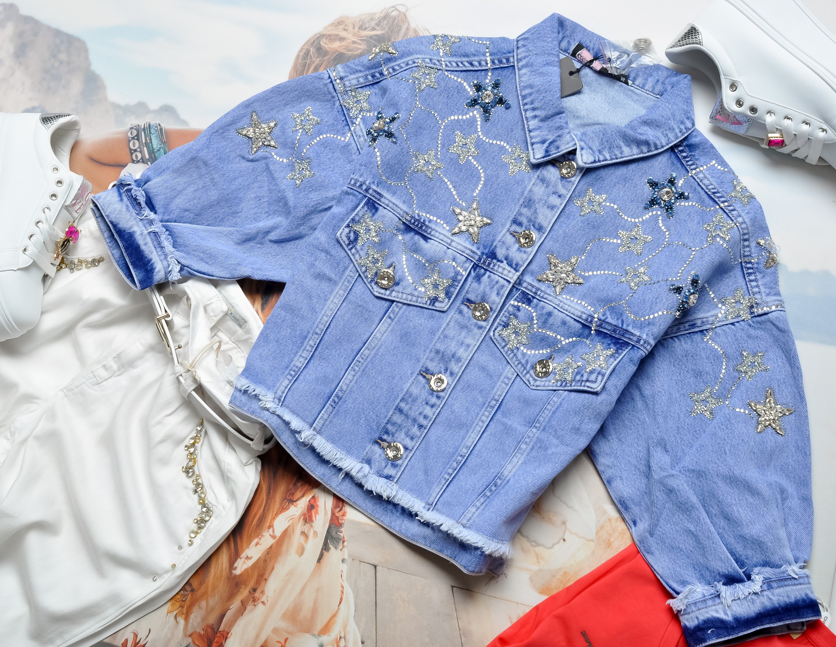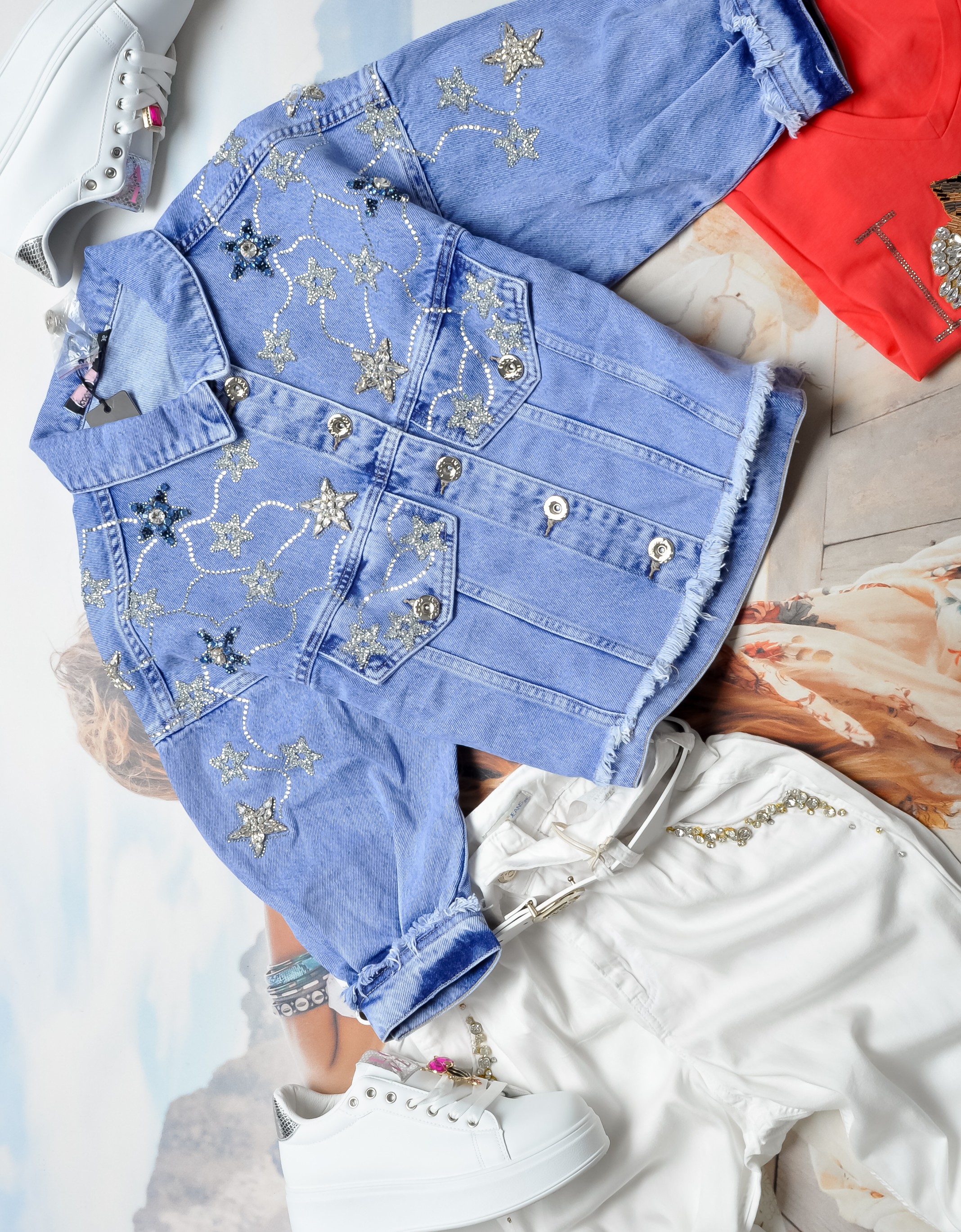 COCO BIANCA - JEANSOWA KURTKA - CYRKONIOWE GWIAZDY - 3/4 RĘKAWY