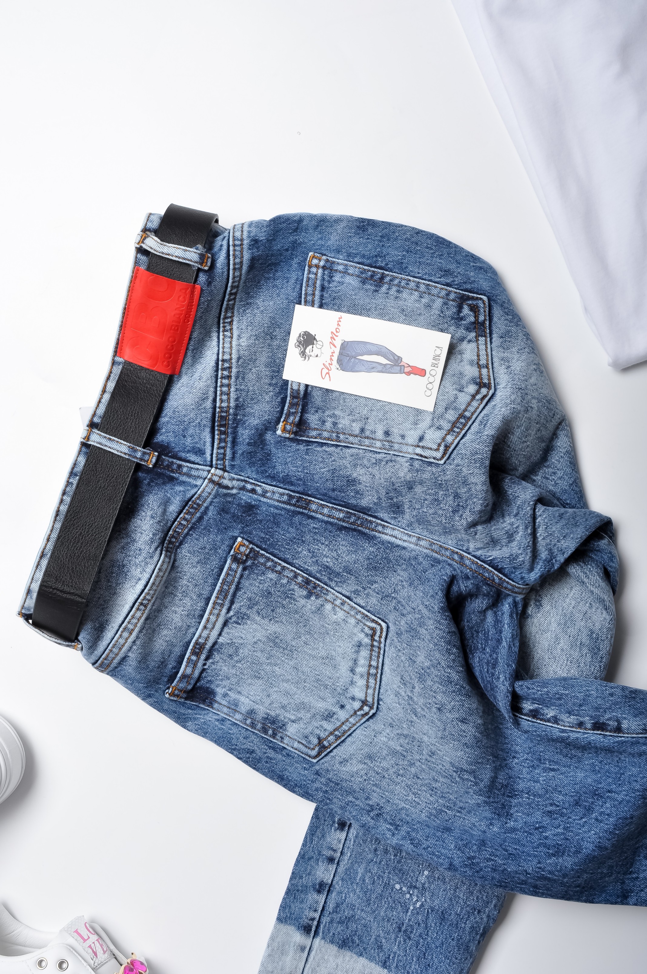 COCO BIANCA - JEANSOWE PRZECIERANE SPODNIE - SLIM MOM - CYRKONIE