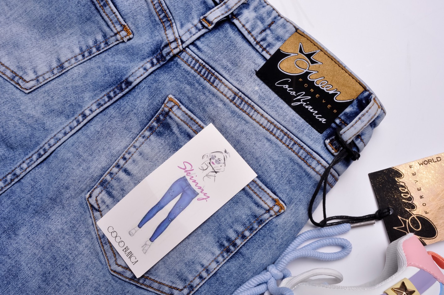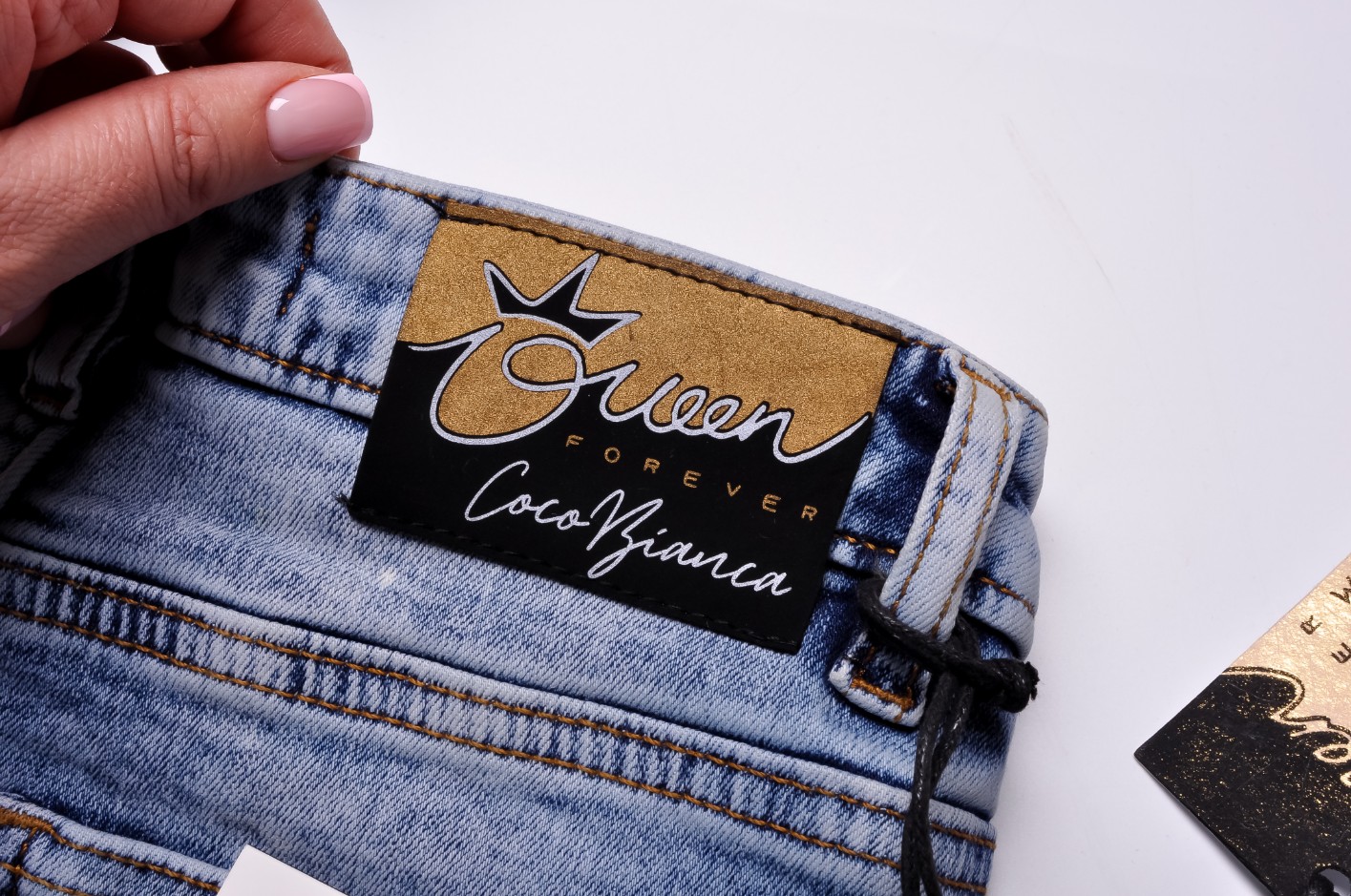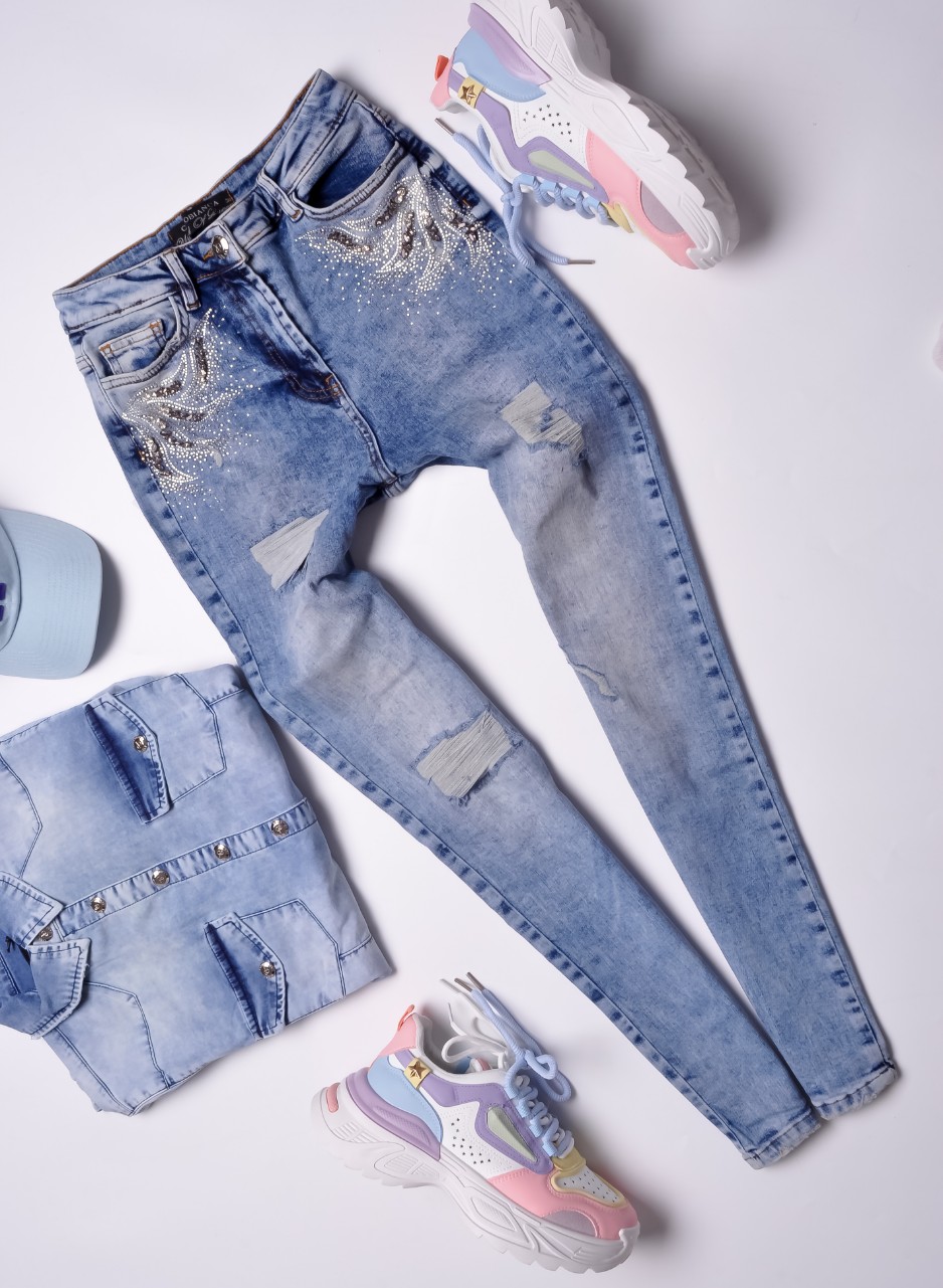 COCO BIANCA - JEANSOWE PRZECIERANE SPODNIE ZDOBIONE CYRKONIAMI - SKINNY