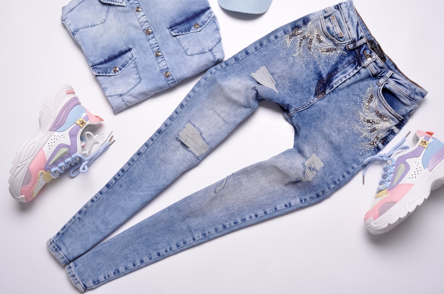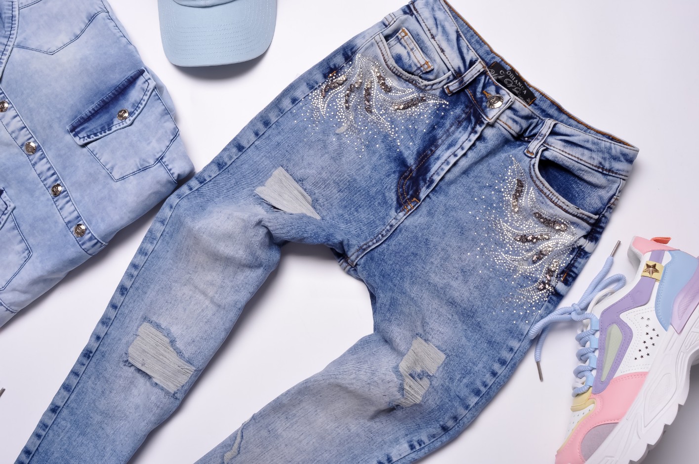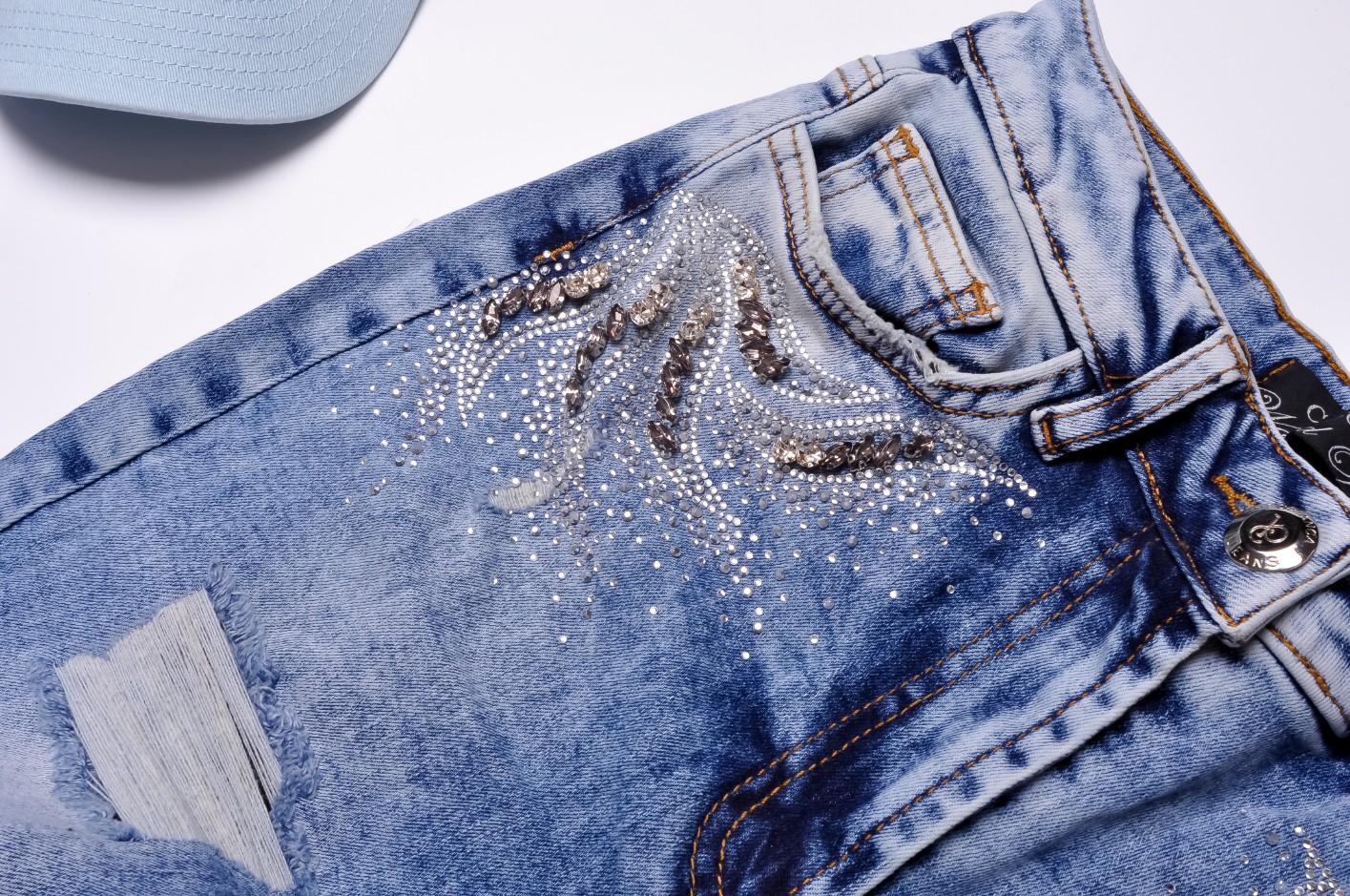 COCO BIANCA - JEANSOWE PRZECIERANE SPODNIE ZDOBIONE CYRKONIAMI - SKINNY