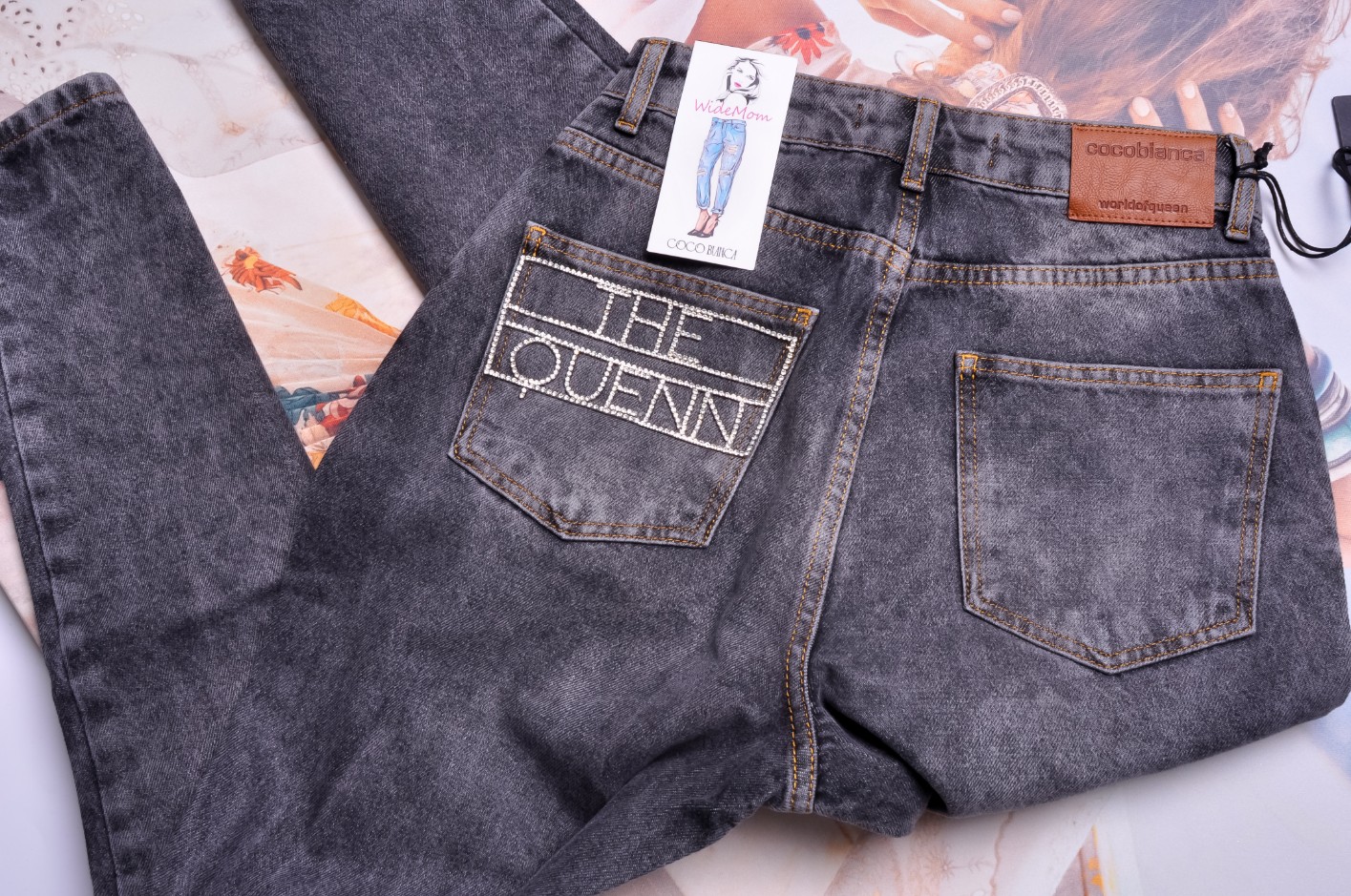 COCO BIANCA - SZARE PRZECIERANE SPODNIE - MOM FIT - CYRKONIE