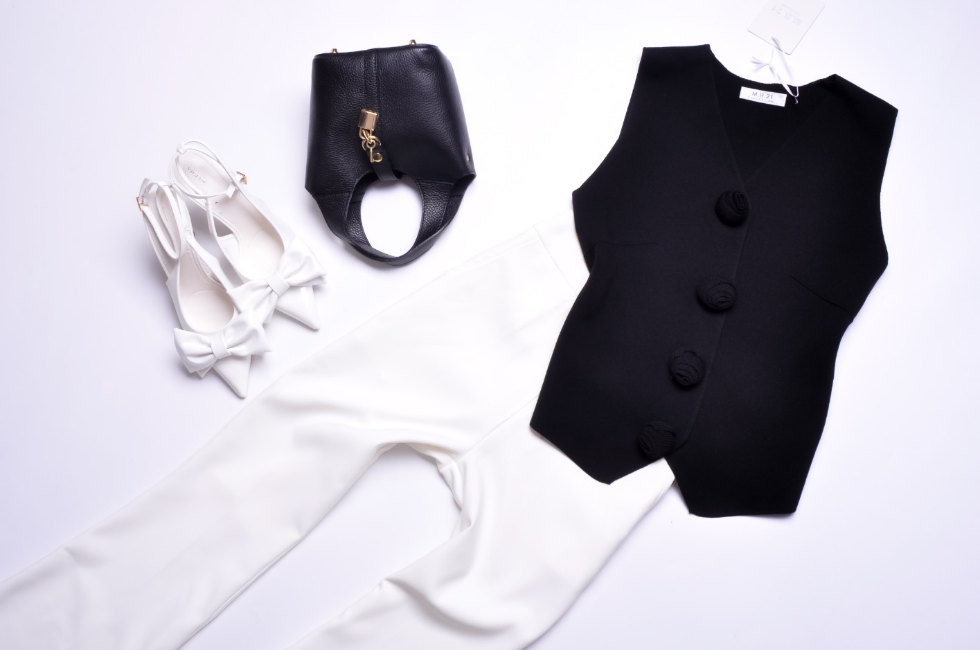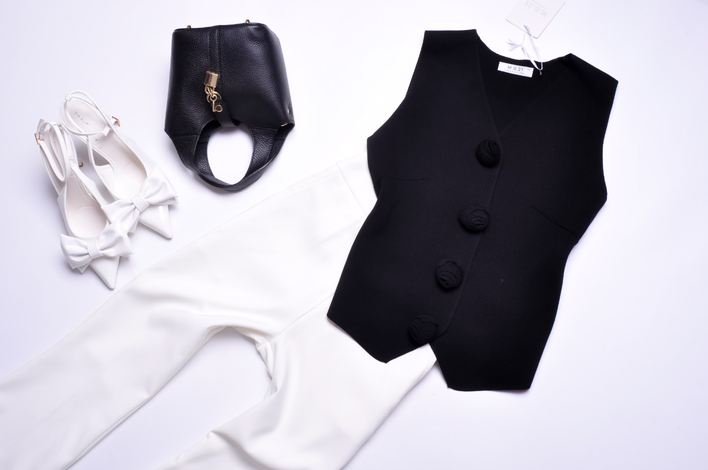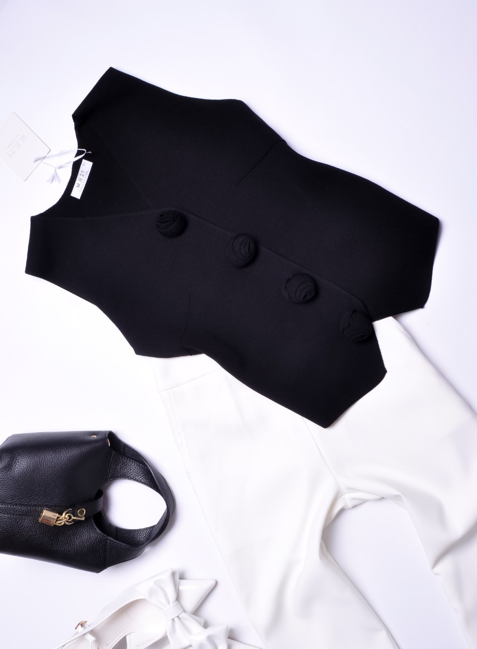 CZARNA DZIANINOWA KAMIZELKA - KWIATUSZKI