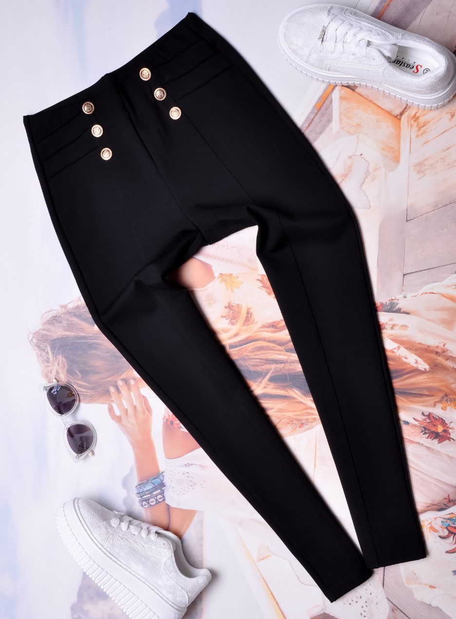 CZARNE LEGGINSY ZE ZŁOTO - CZARNYMI GUZIKAMI I PRZESZYCIAMI