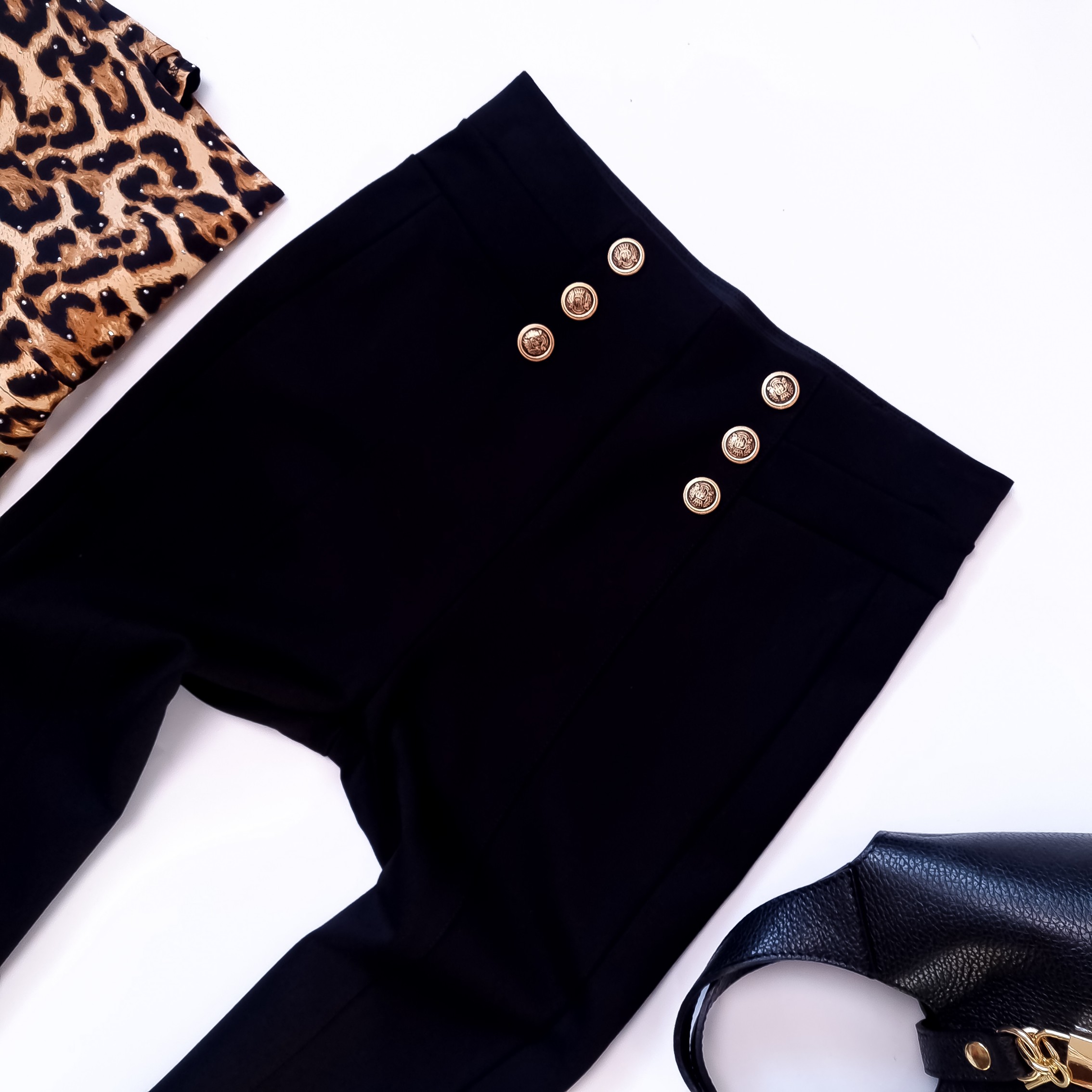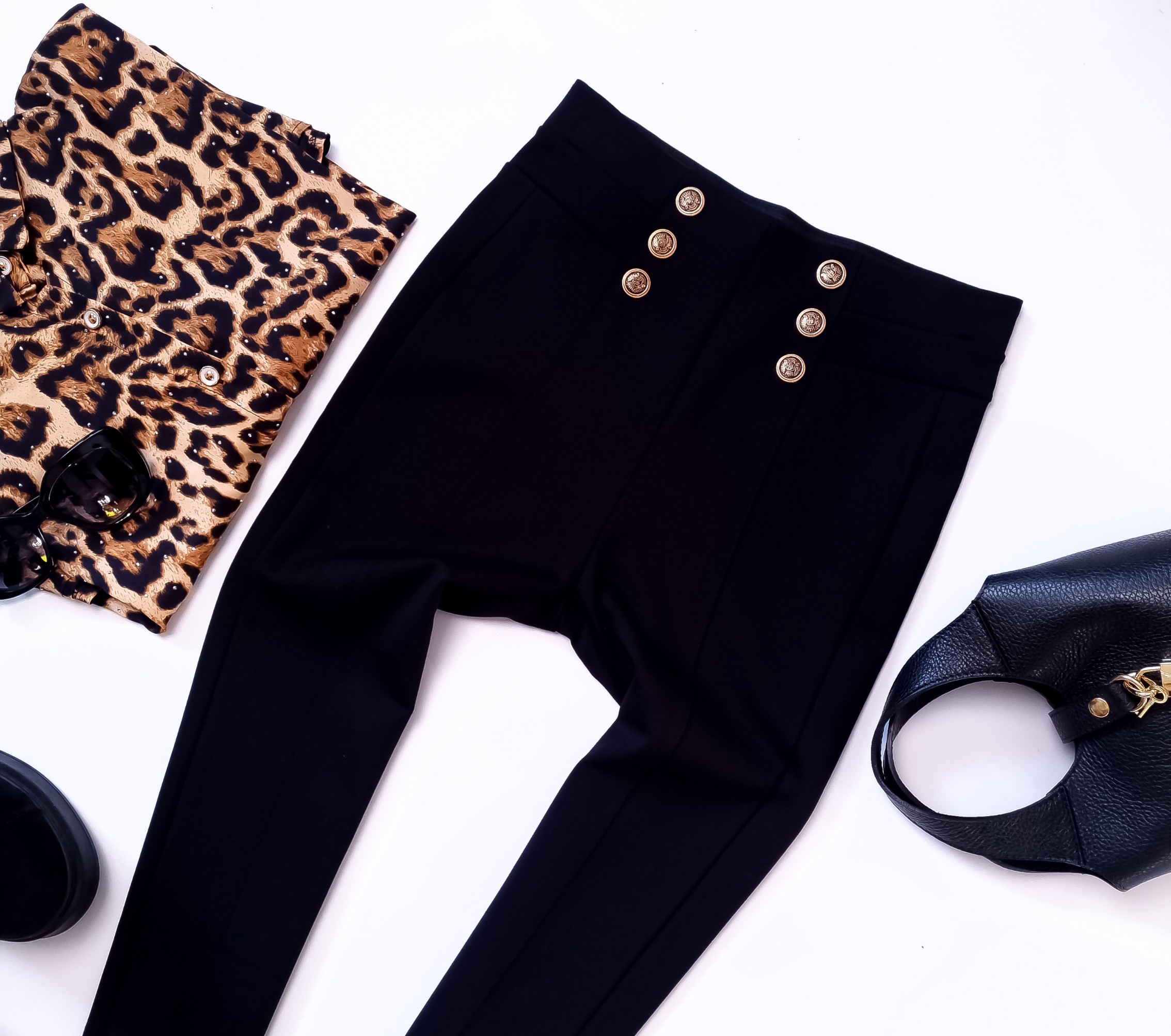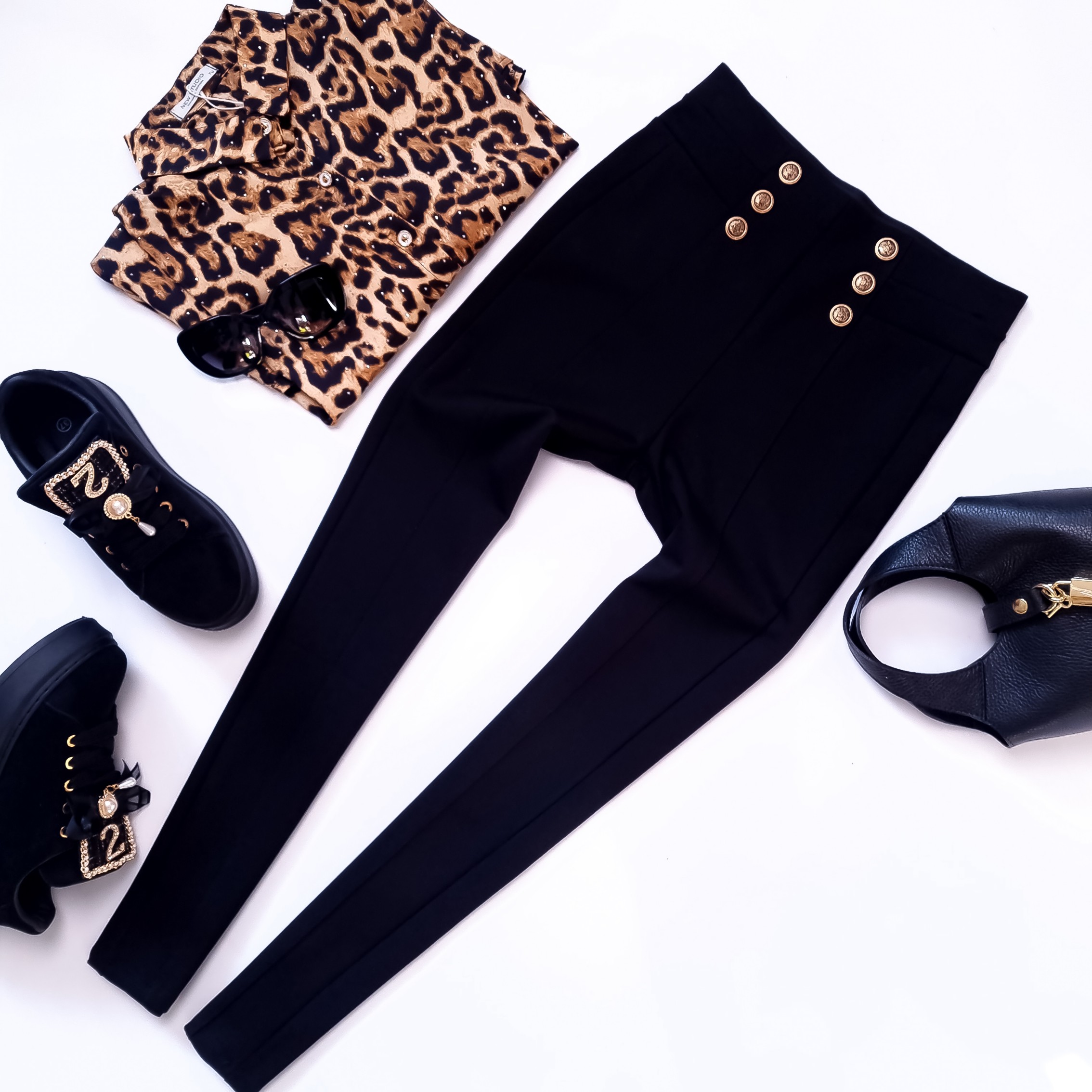 CZARNE LEGGINSY ZE ZŁOTO - CZARNYMI GUZIKAMI