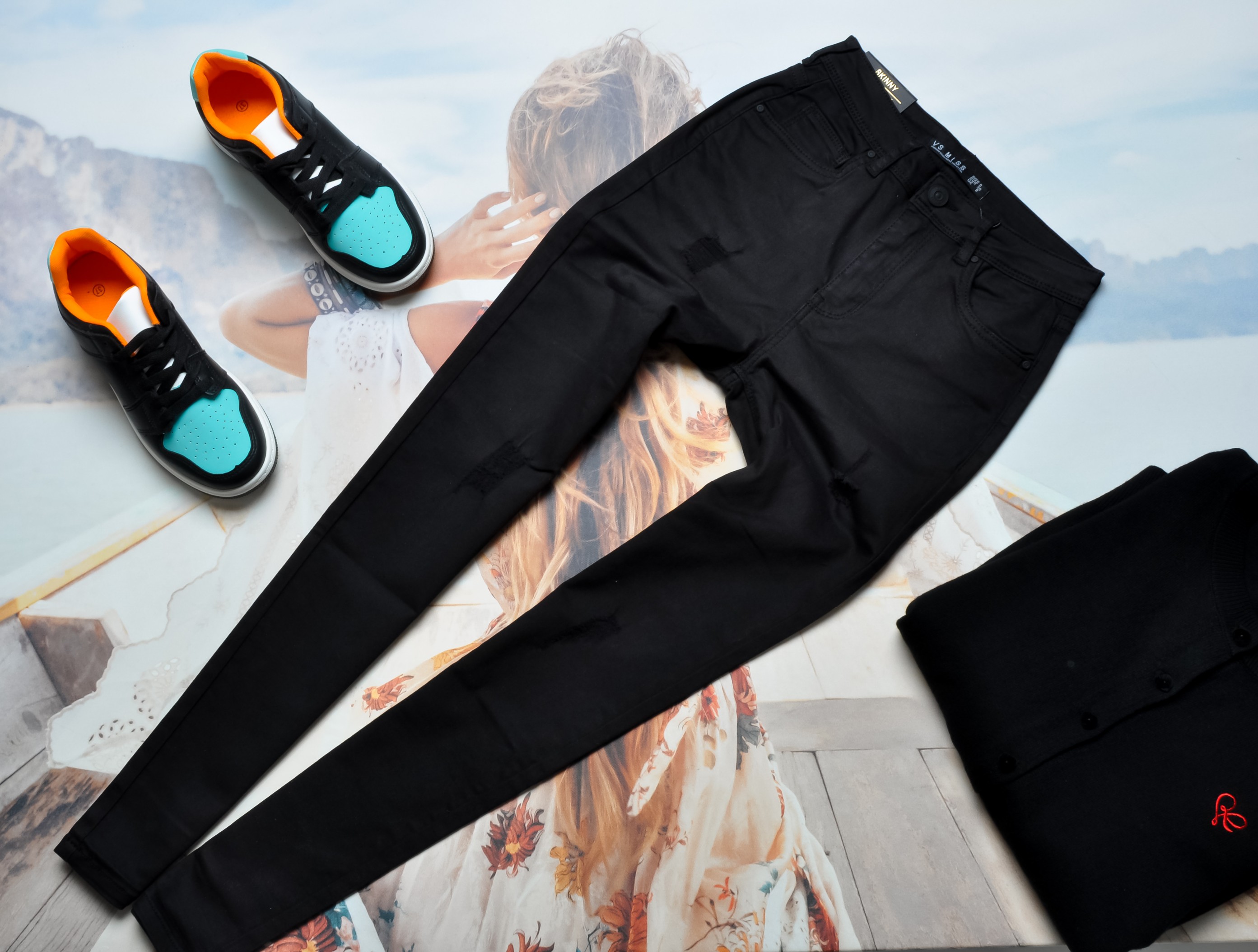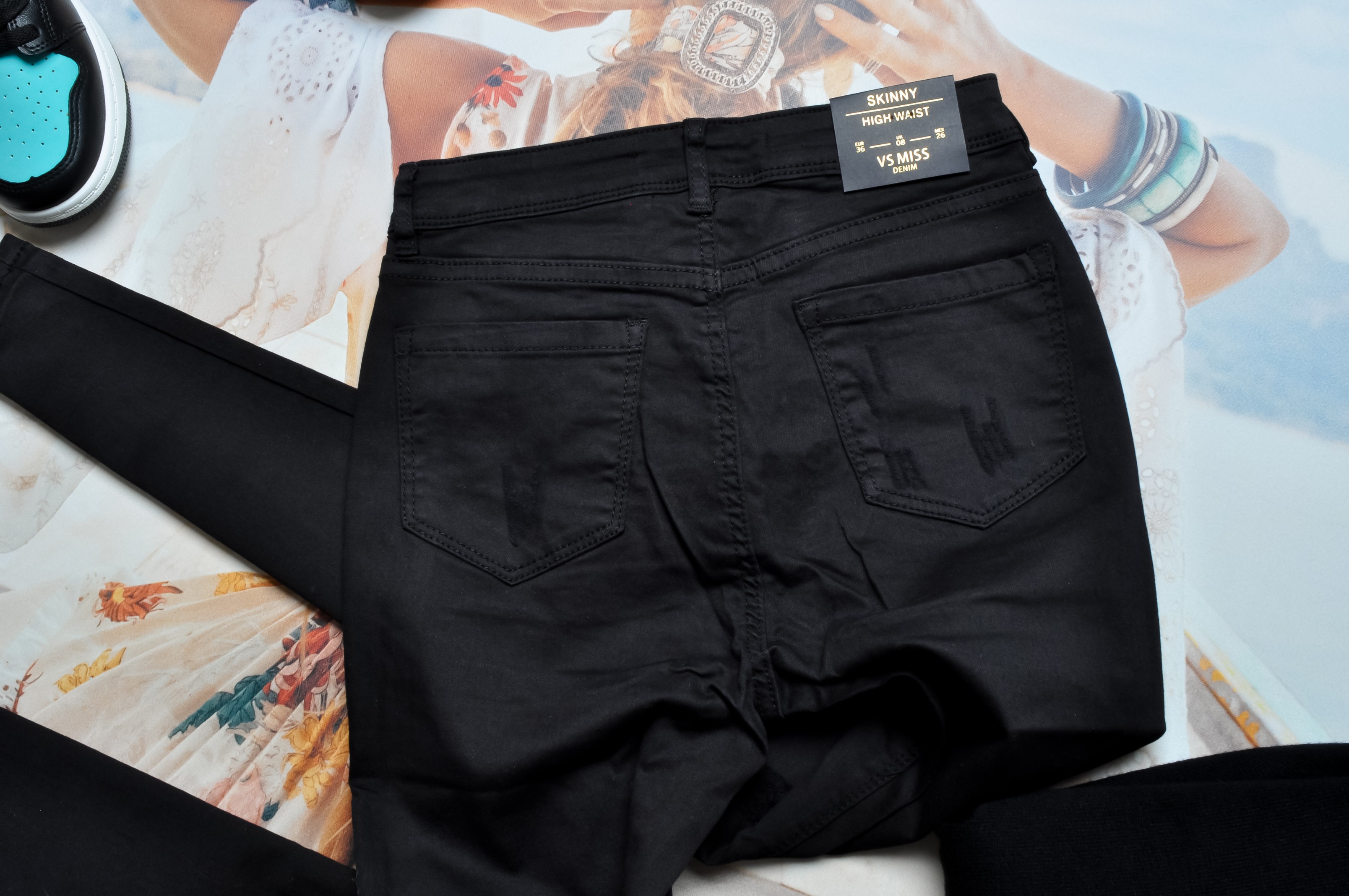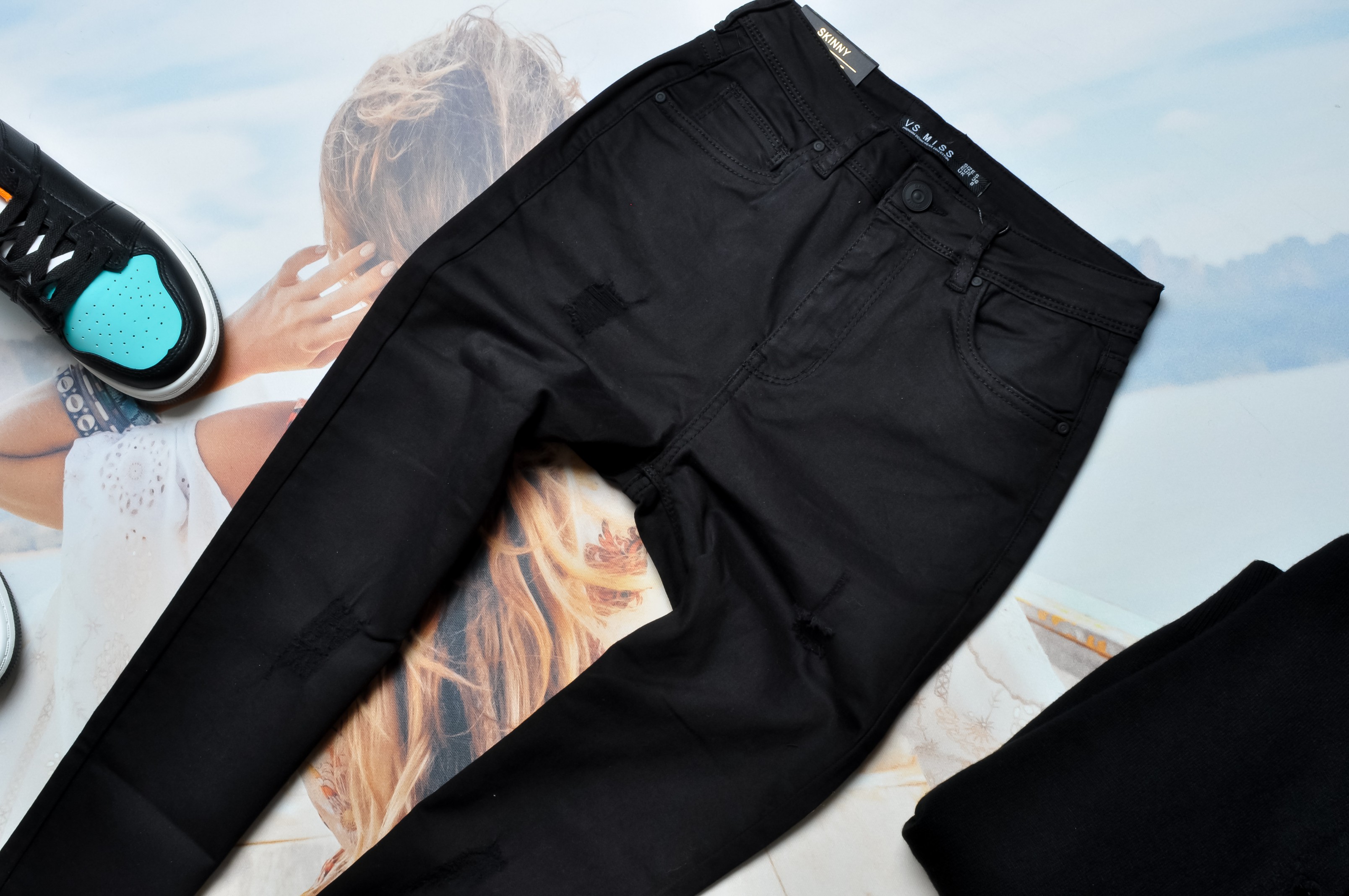 CZARNE PRZECIERANE SPODNIE - HIGH WAIST - SLIM FIT