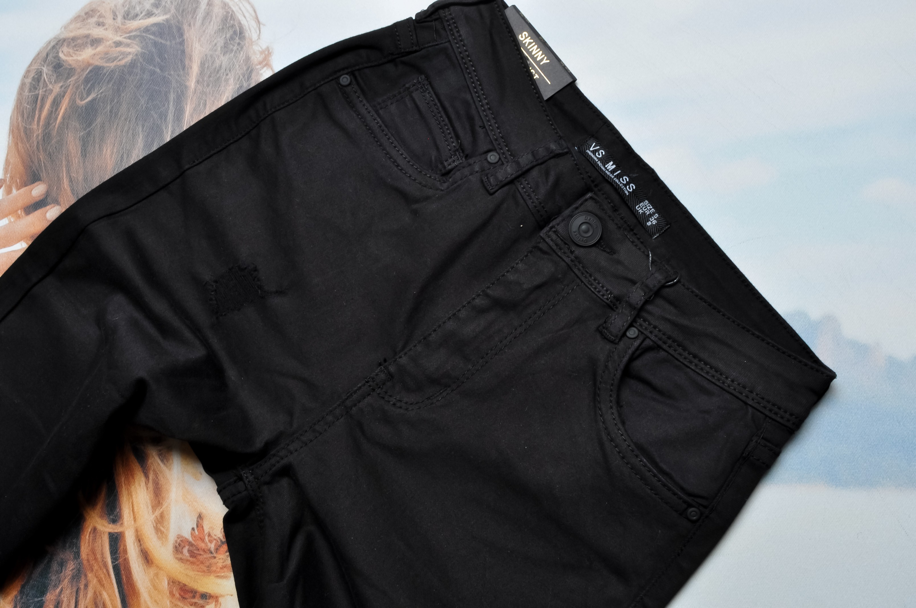 Jeansy z wysokim stanem - rurki, fason 'SKINNY FIT' w czarnym kolorze. Z przodu i z tyłu dwie kieszenie. Z przodu delikatne przetarcia.