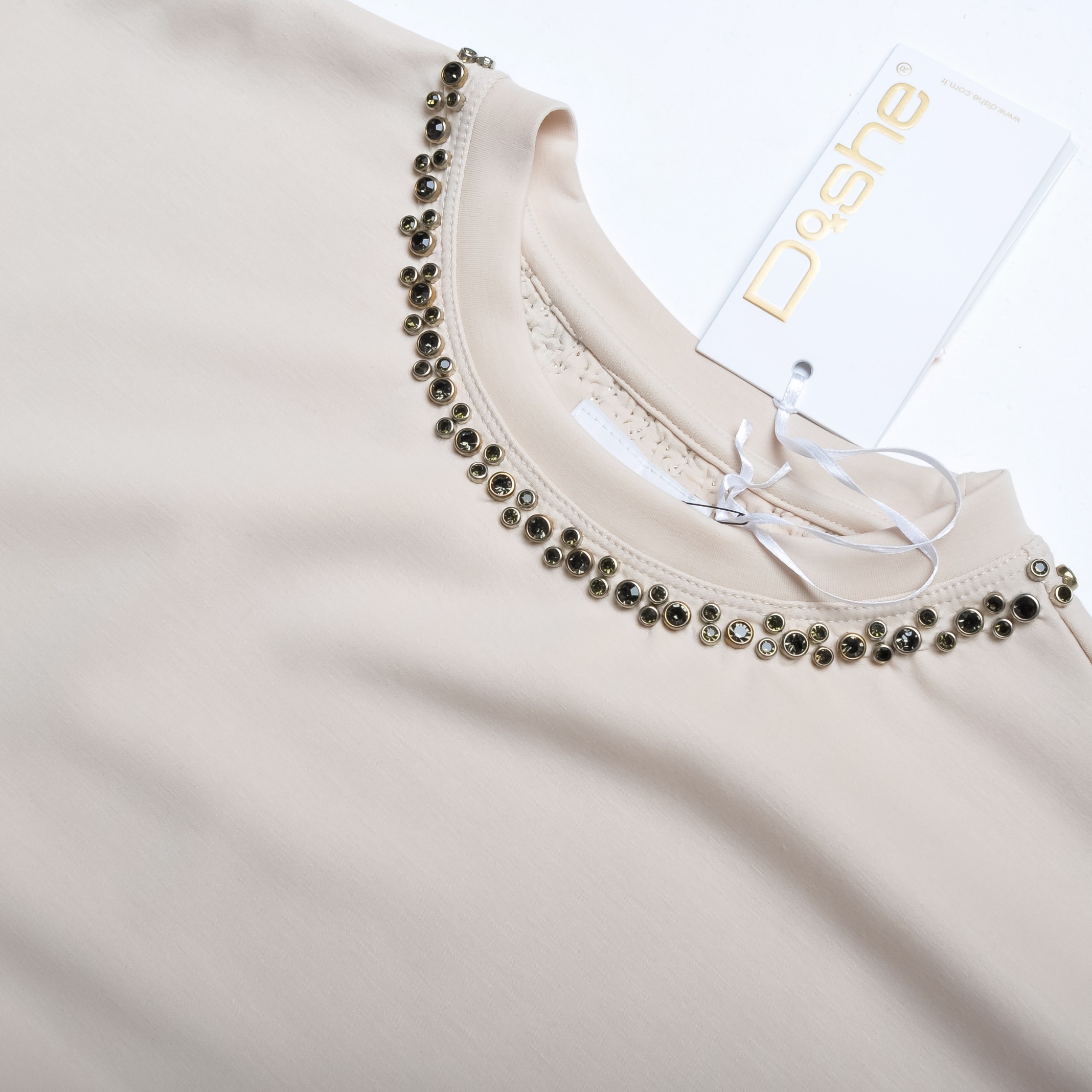 DI'SHE BEŻOWA BLUZA Z CZARNYMI CYRKONIAMI