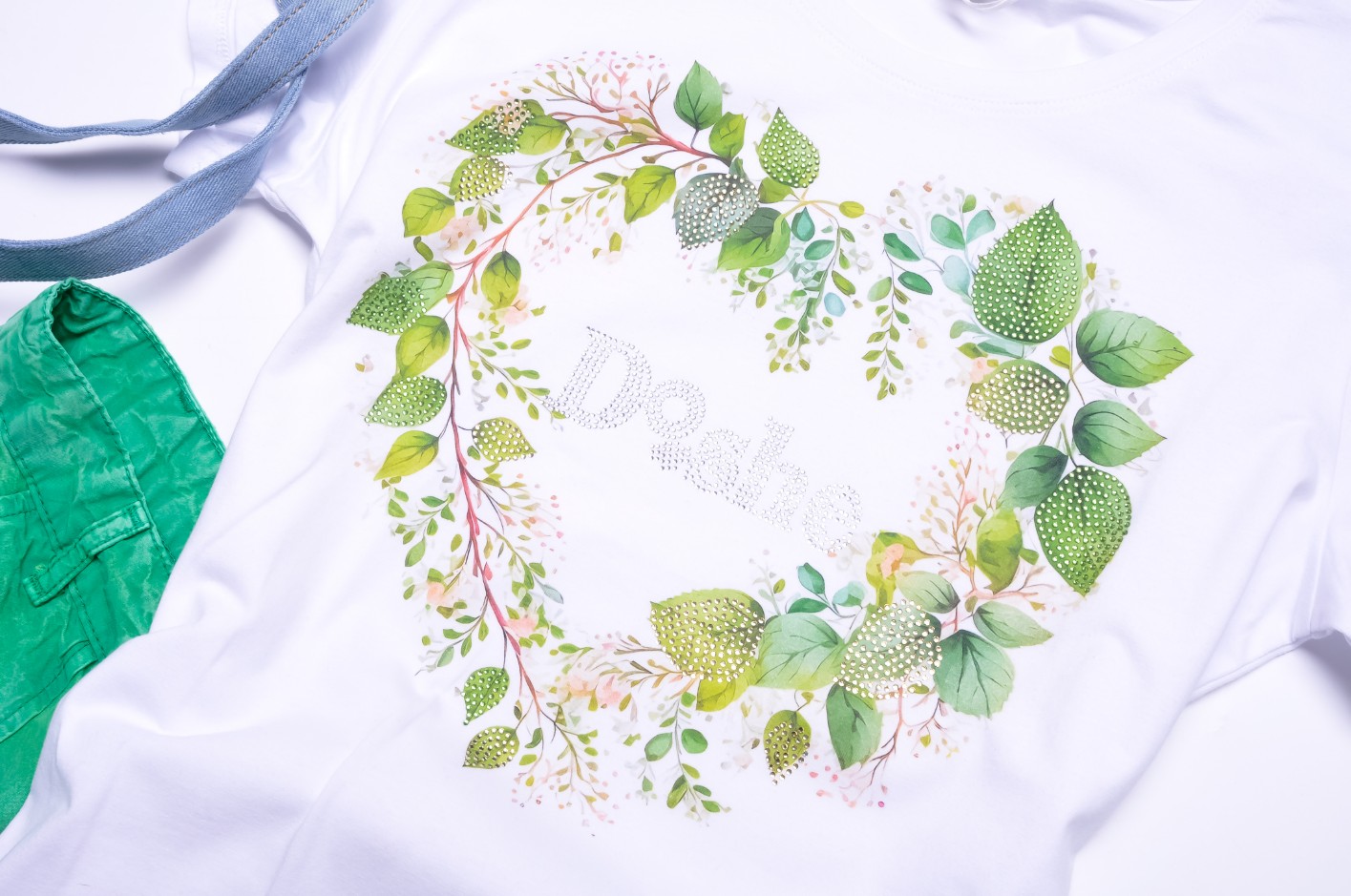 DI'SHE - BIAŁA BLUZKA - LISTKI - SERCE - CYRKONIOWE LOGO