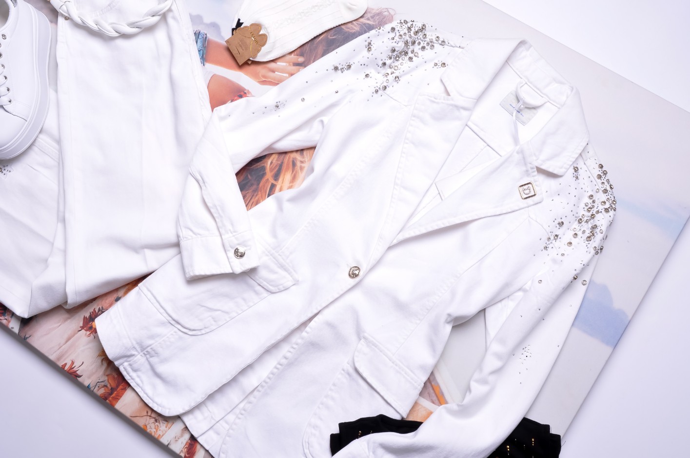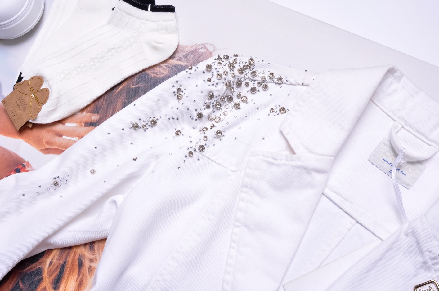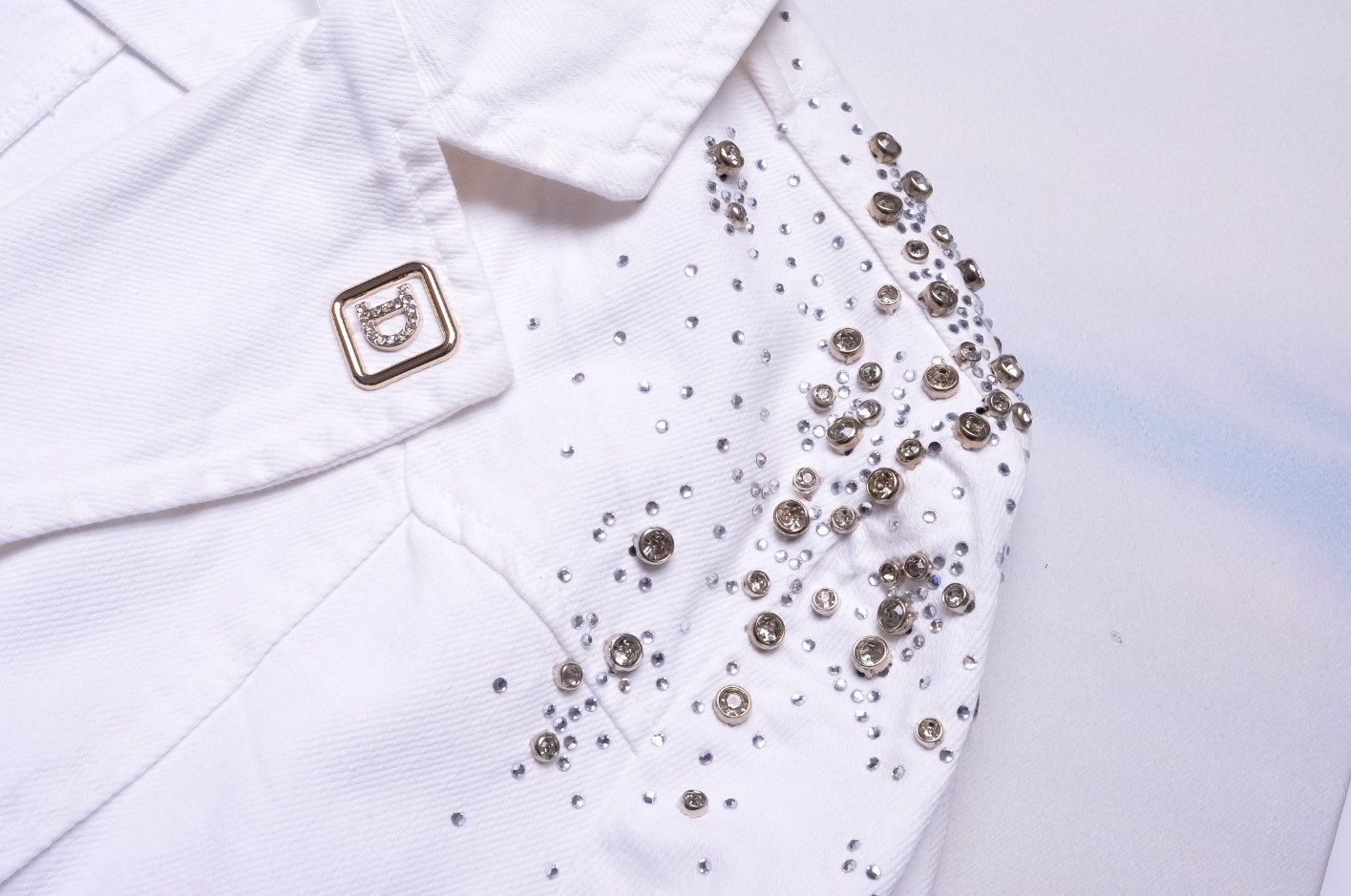 DI'SHE - BIAŁA JEANSOWA MARYNARKA - CYRKONIE