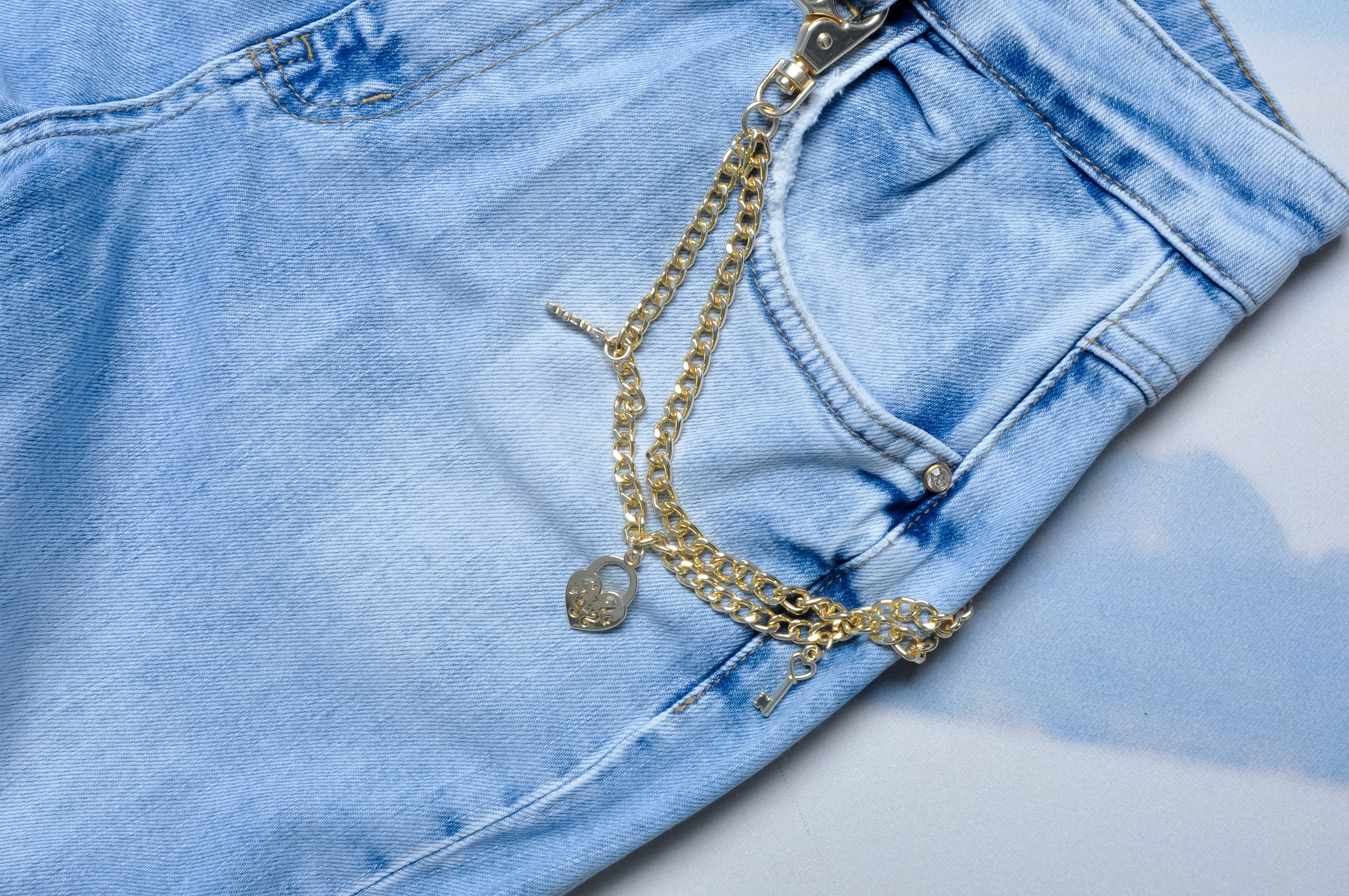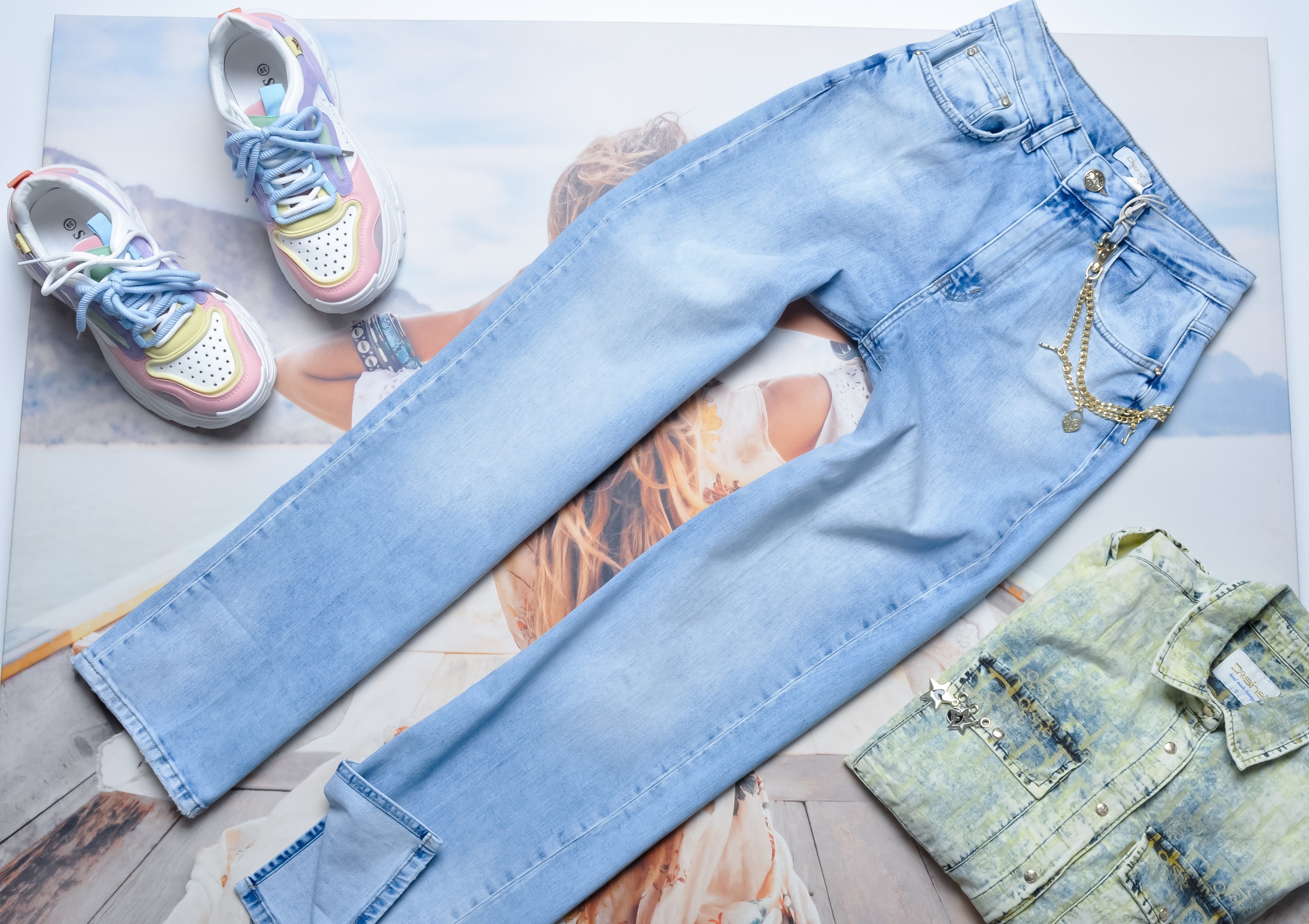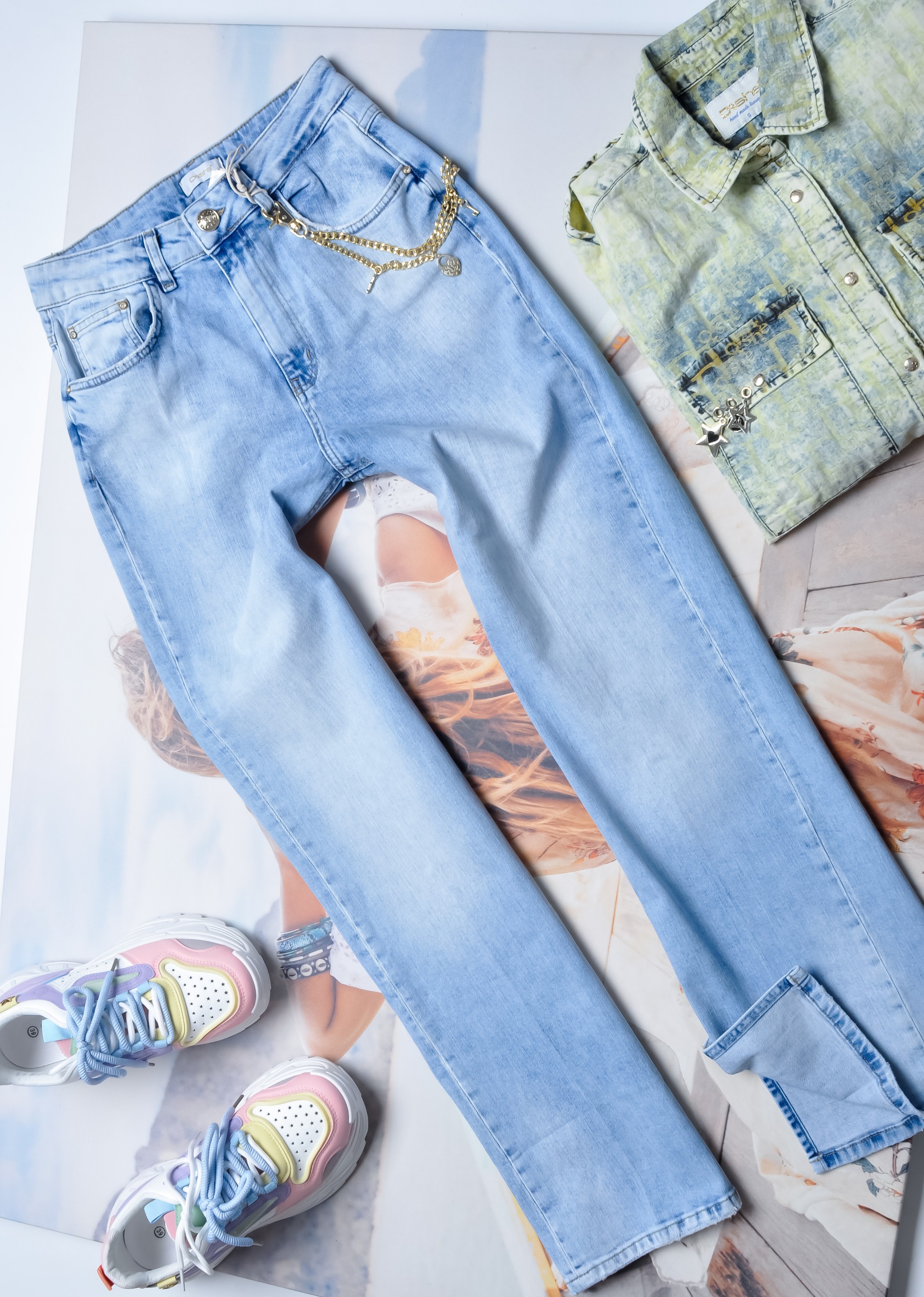 DI'SHE - BŁĘKITNE JEANSOWE SPODNIE - ZŁOTY ŁAŃCUCH
