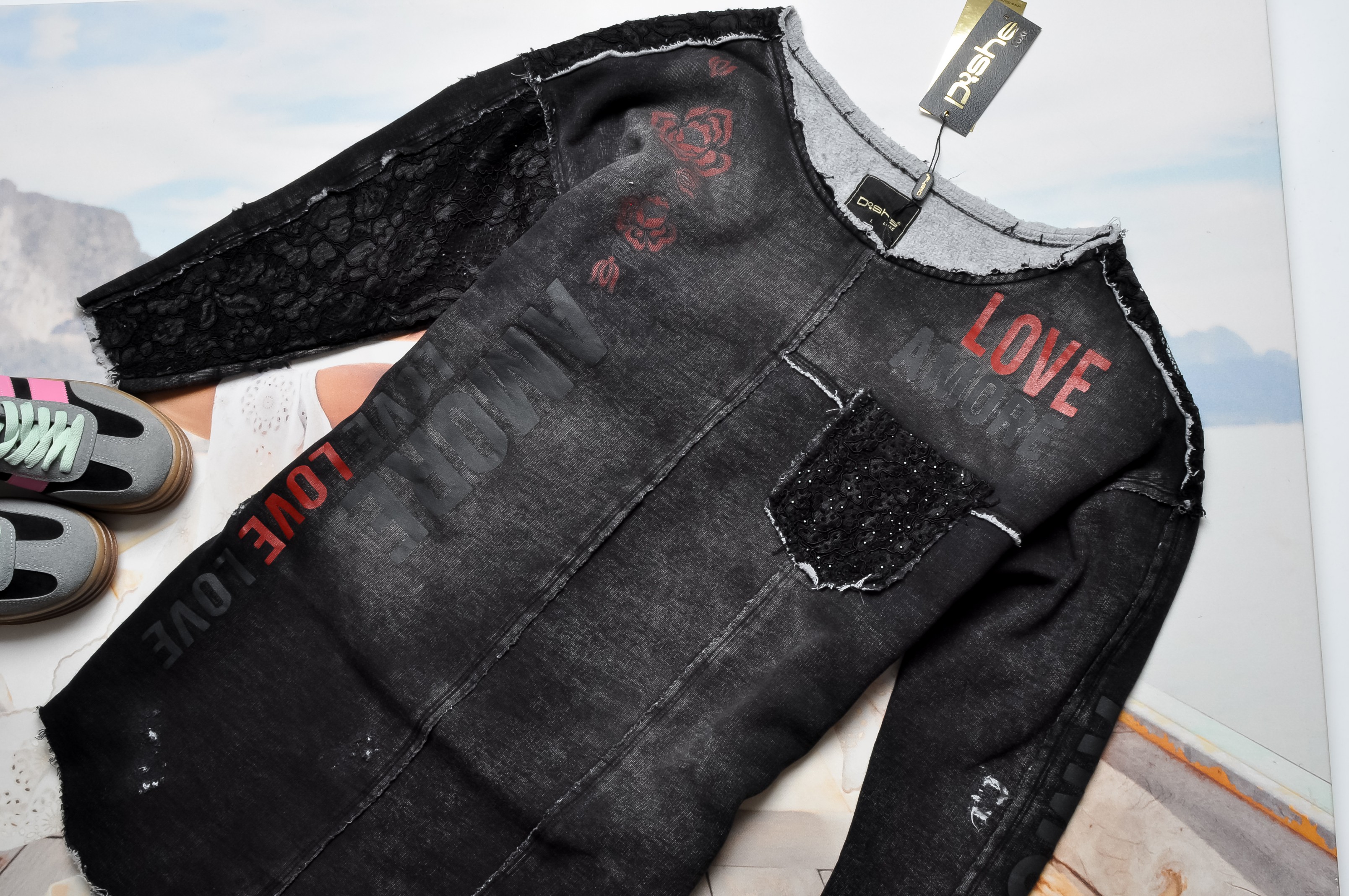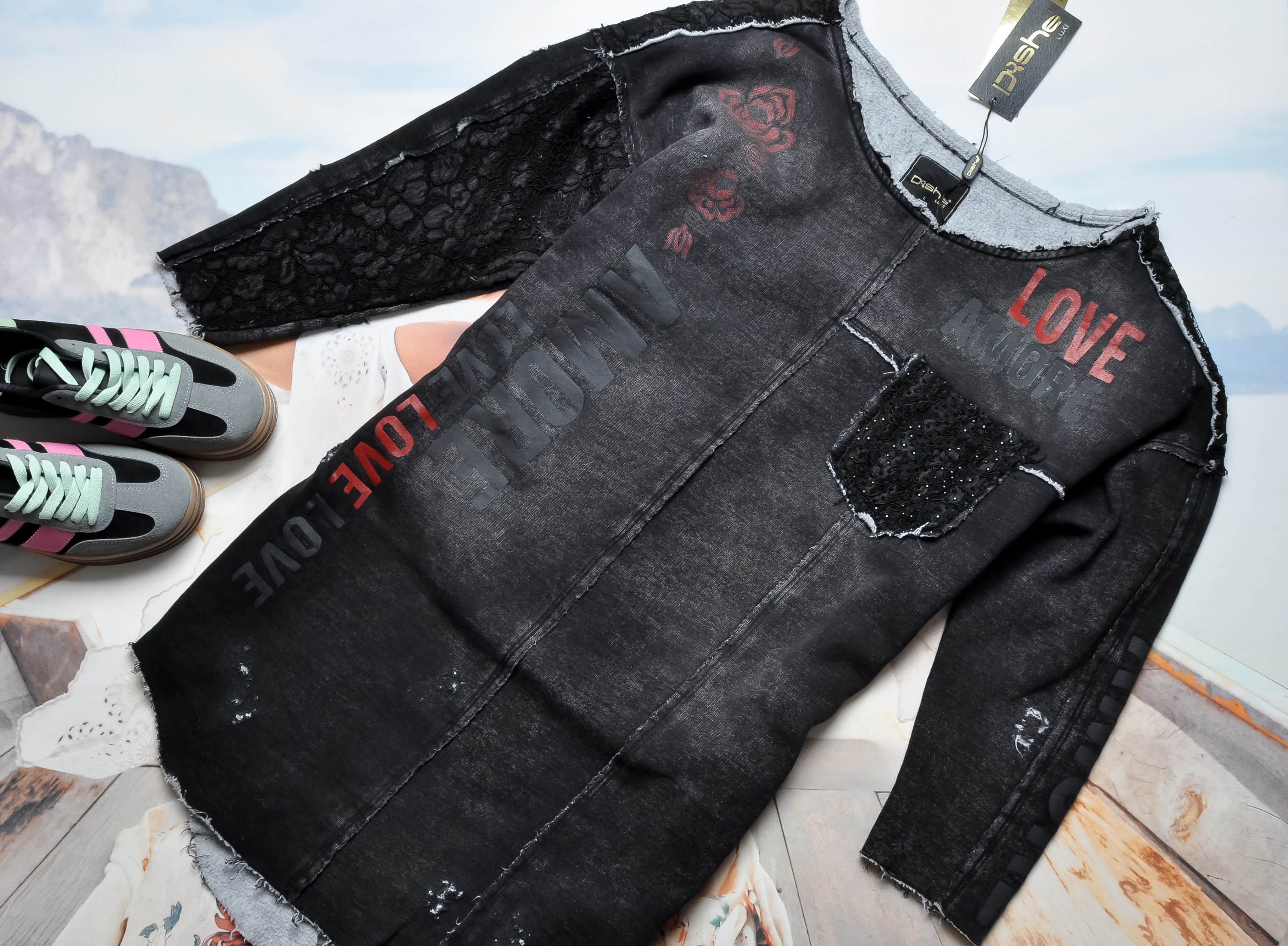 DI'SHE - CIEMNA DZIANINOWA SUKIENKA W ROCKOWYM STYLU