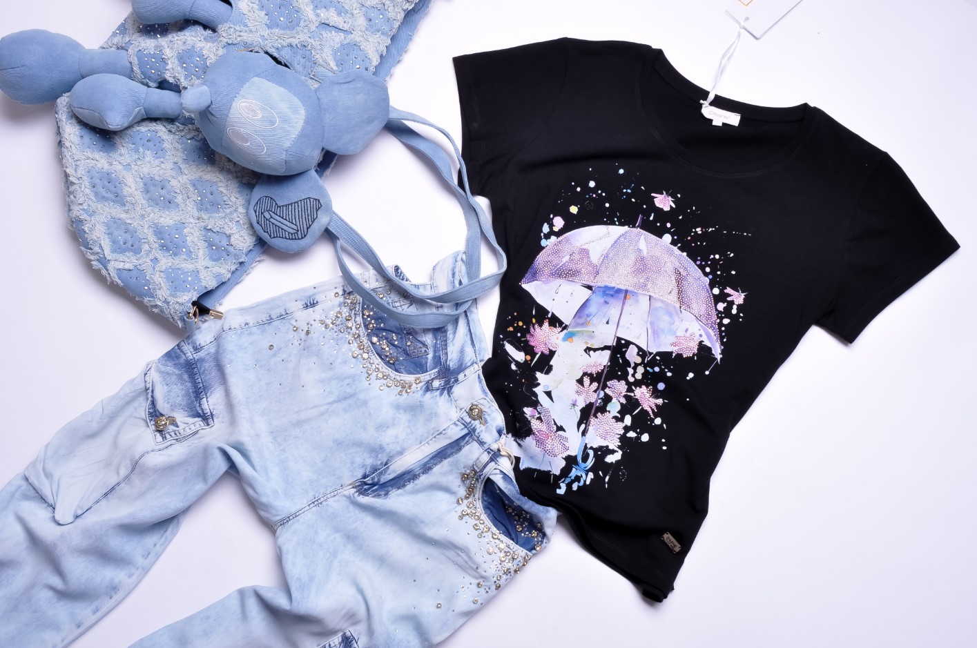 DI'SHE - CZARNA BLUZKA - CYRKONIOWY PARASOL - KWIATKI