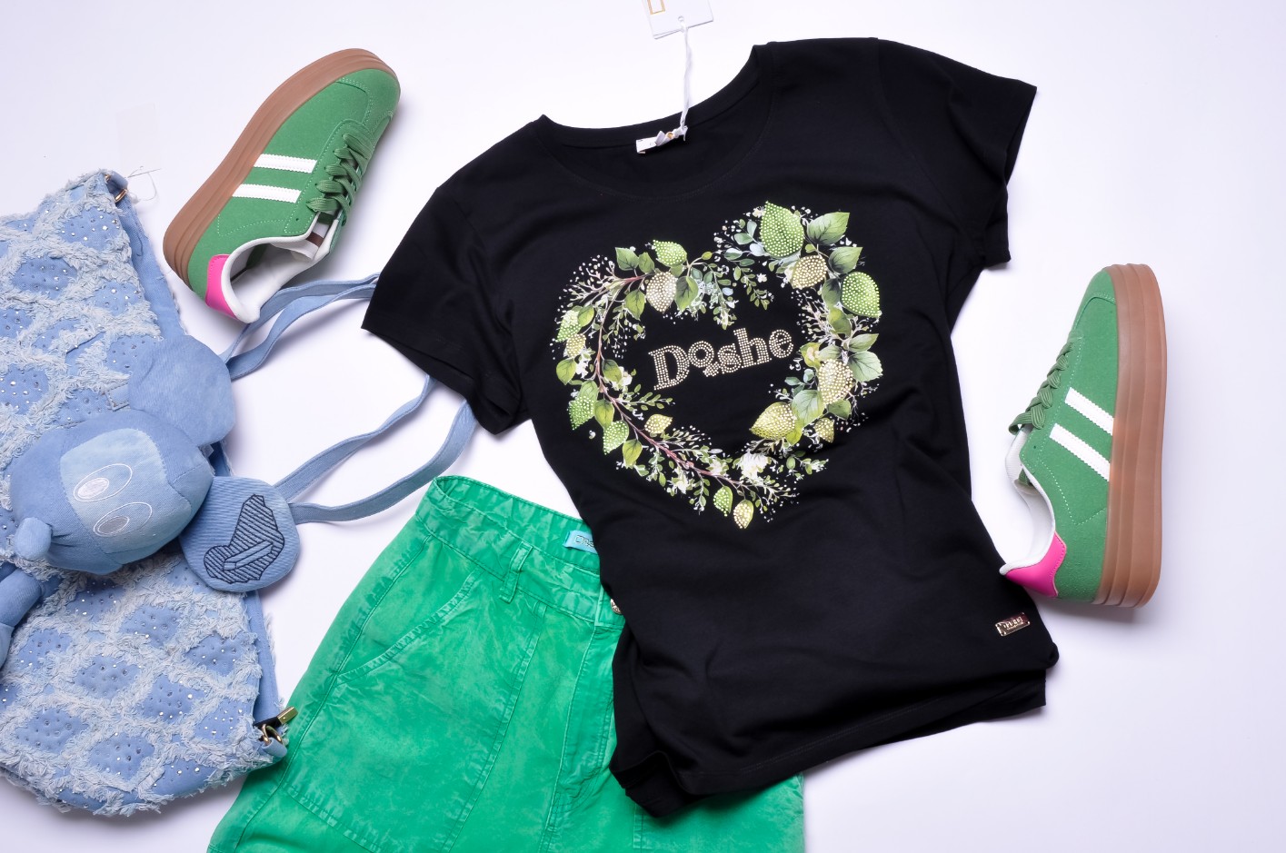 DI'SHE - CZARNA BLUZKA - LISTKI - SERCE - CYRKONIOWE LOGO
