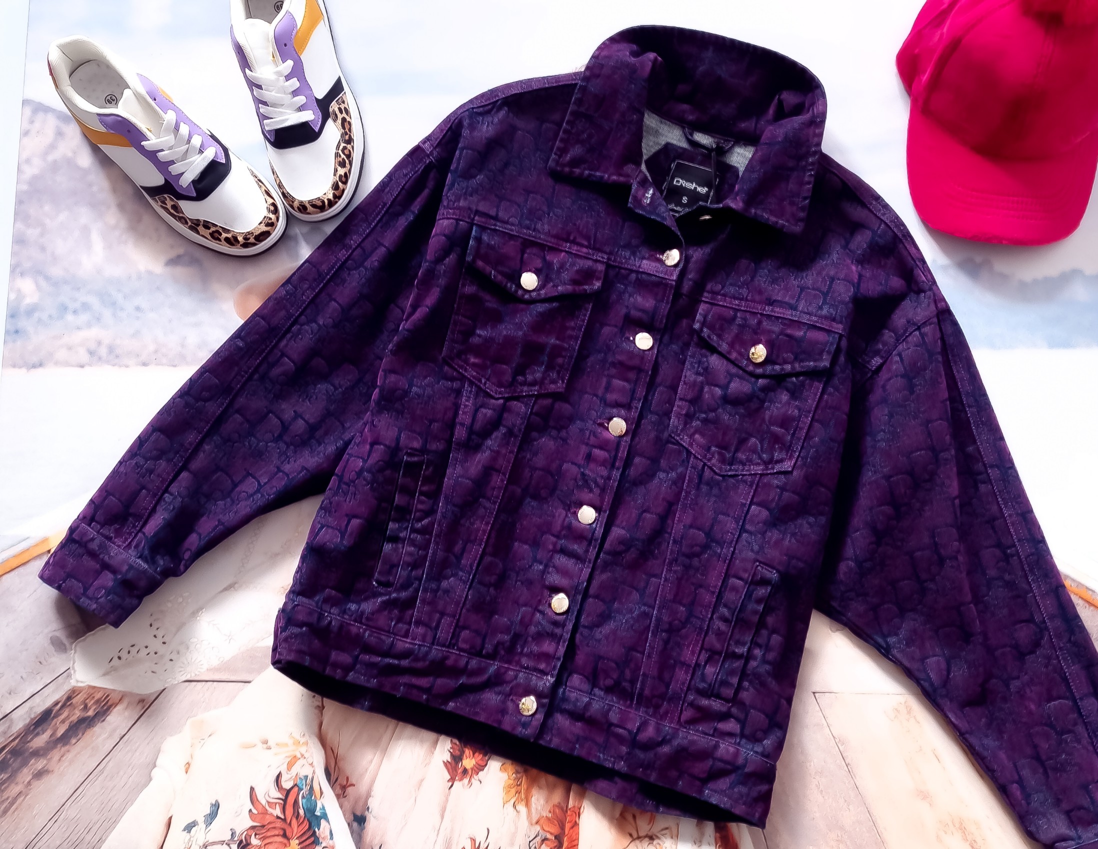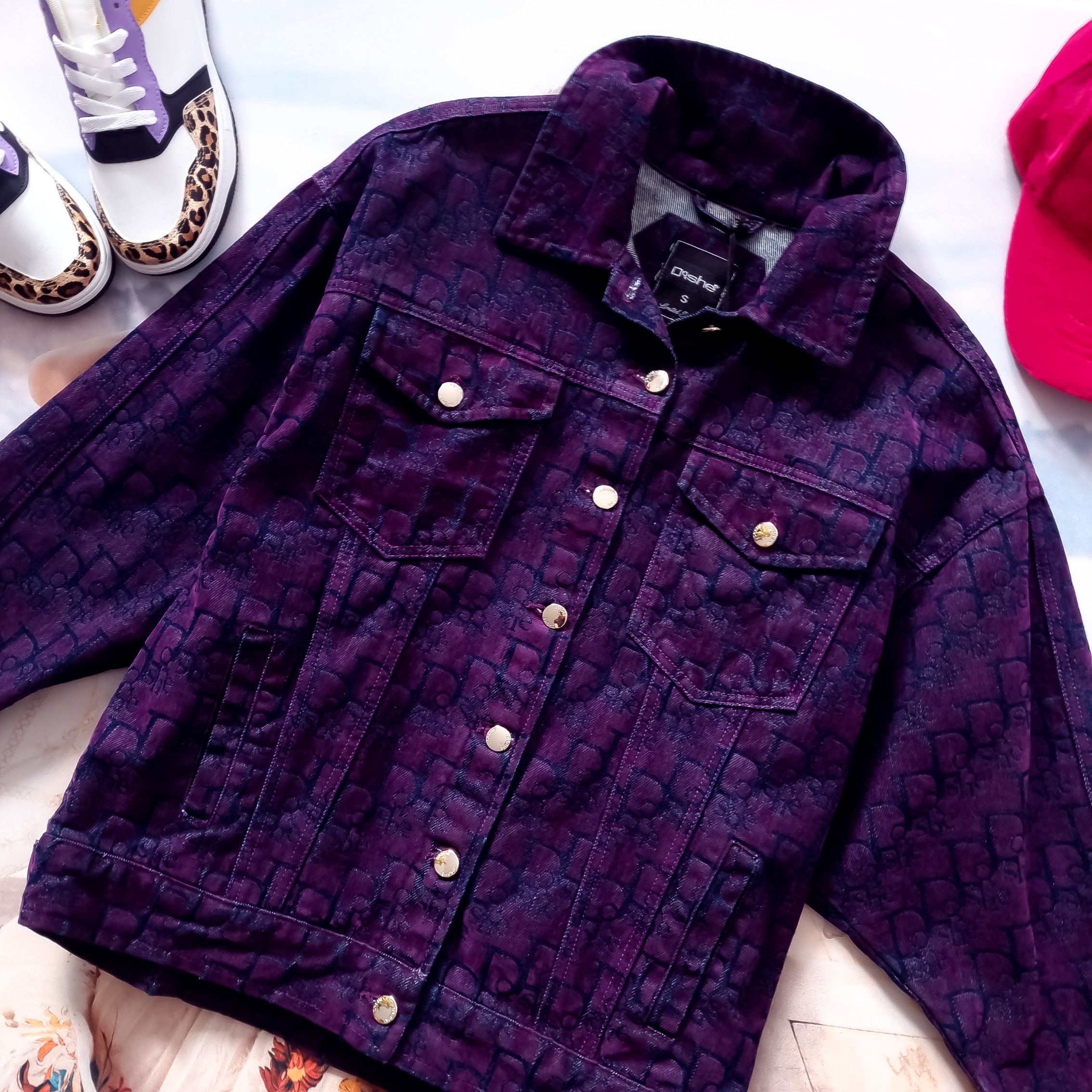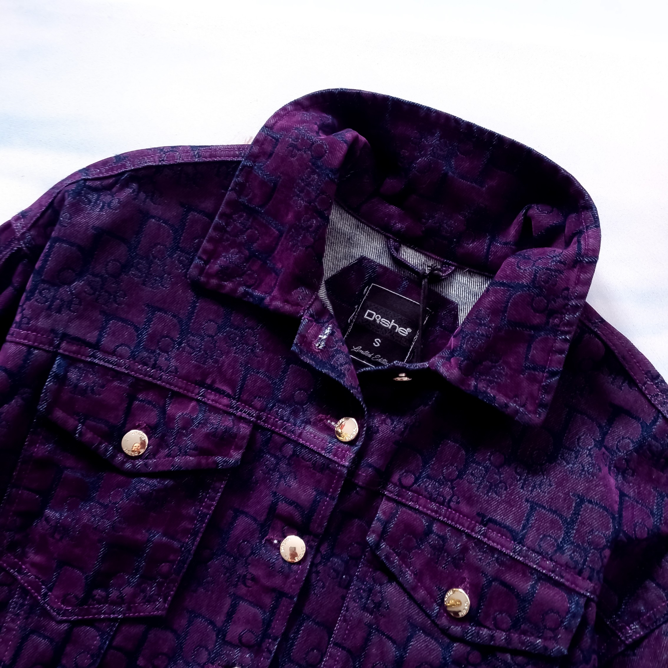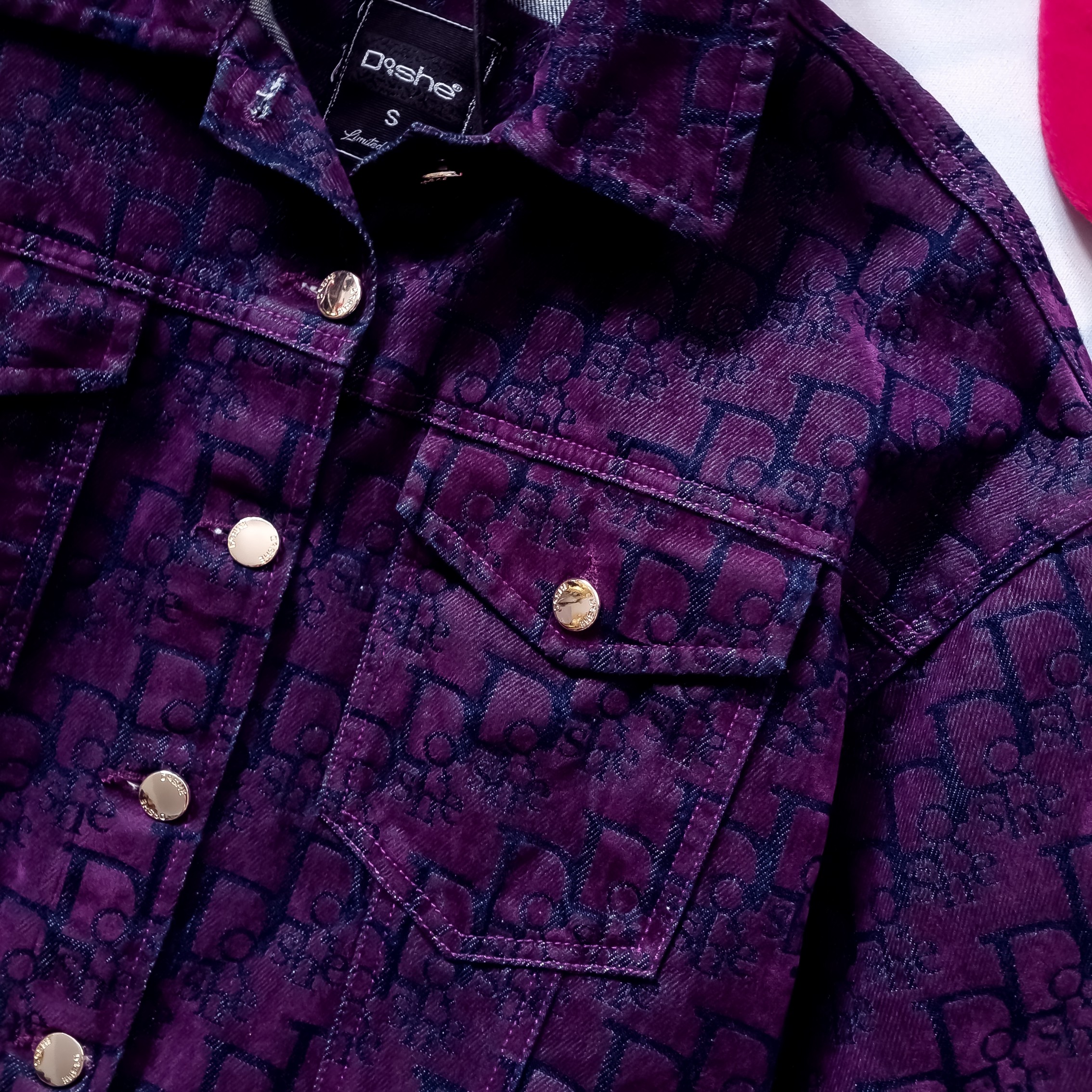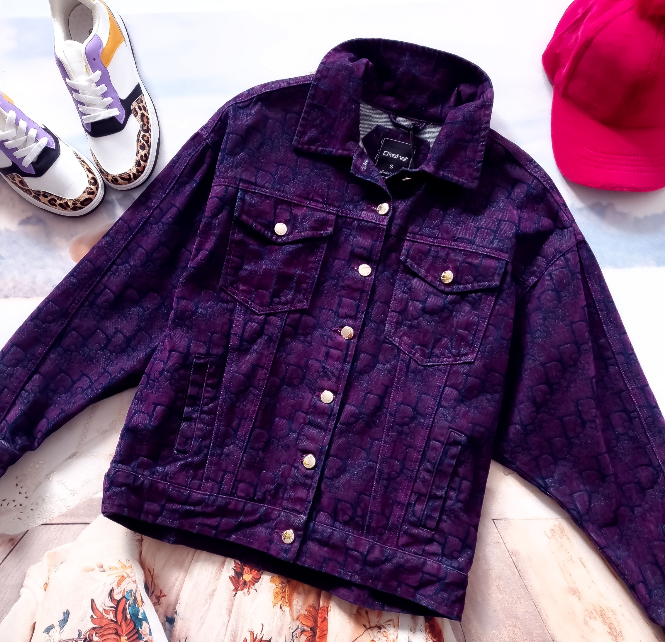 DI'SHE FIOLETOWA KURTKA JEANSOWA + ZŁOTE GUZICZKI