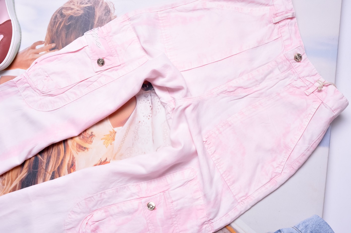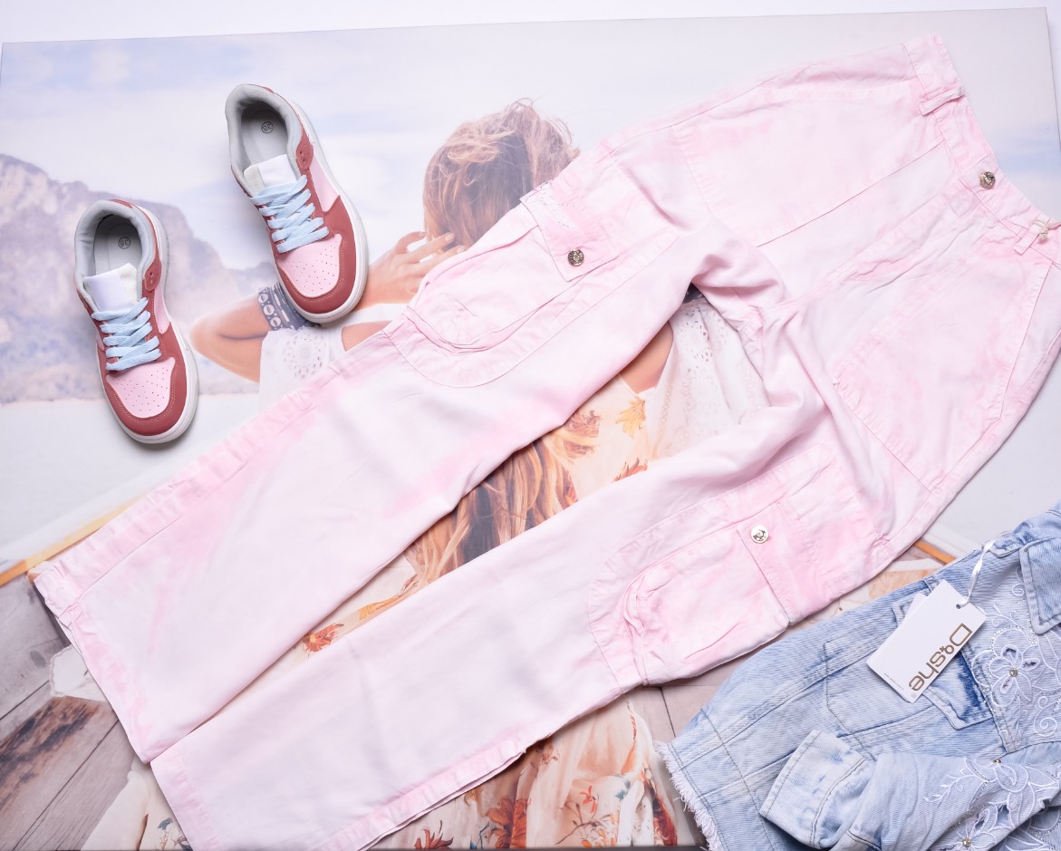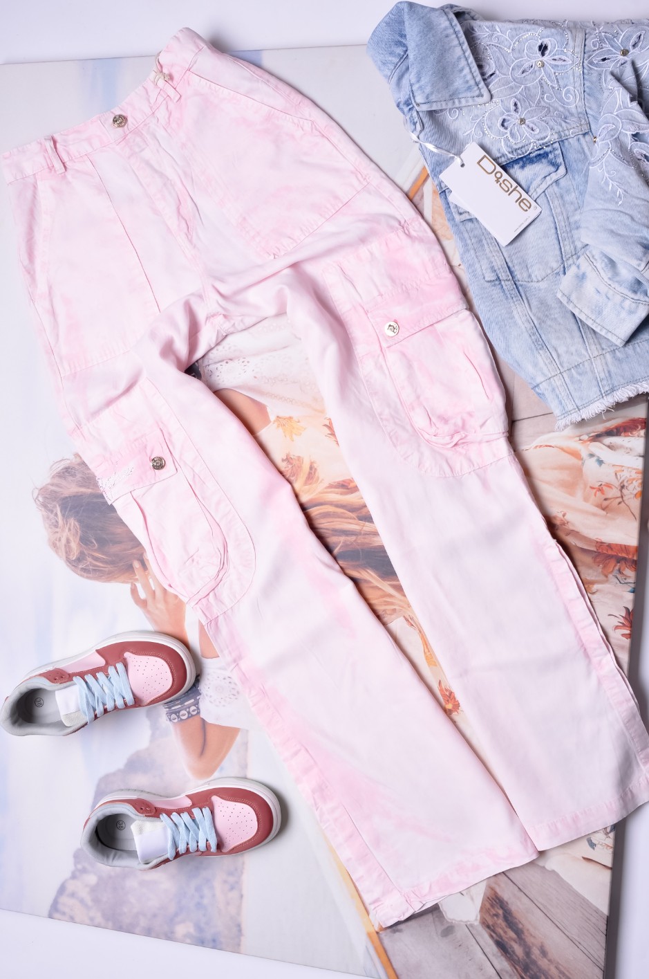 DI'SHE - ZWIEWNE RÓŻOWE SPODNIE CARGO