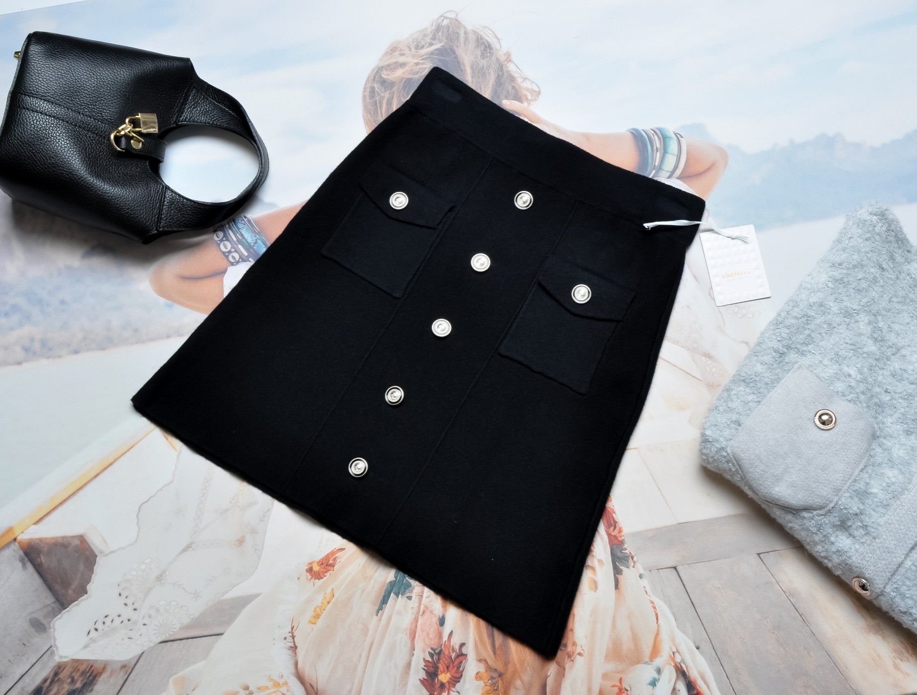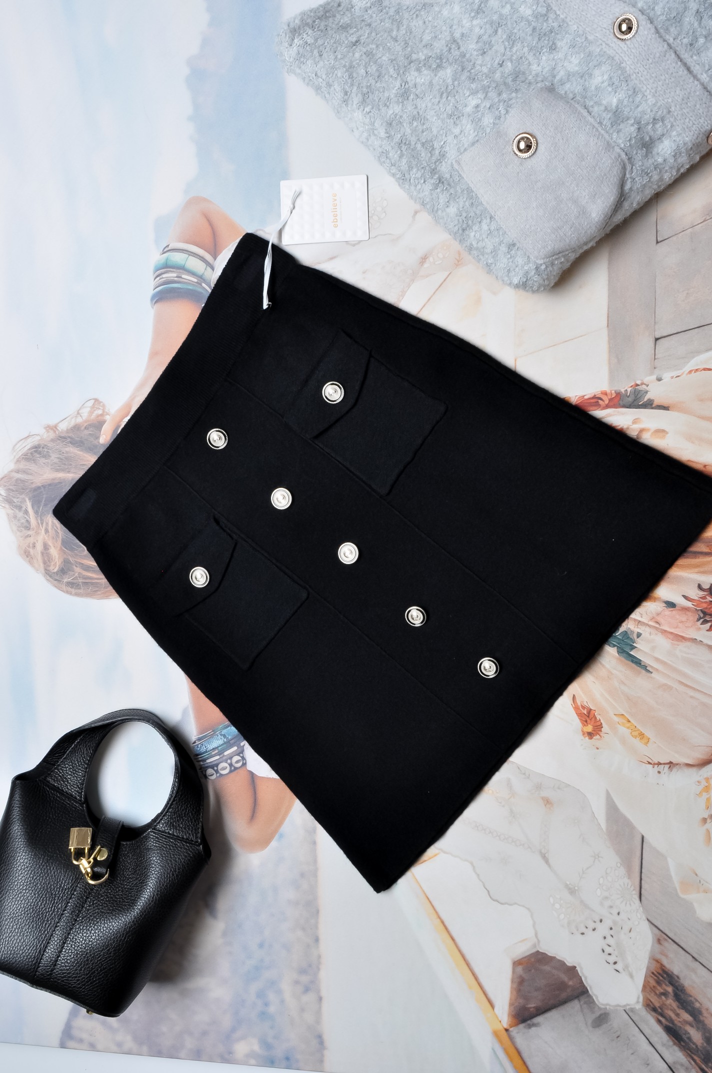 DZIANINOWA SPÓDNICA W KOLORZE CZARNYM Z GUZICZKAMI