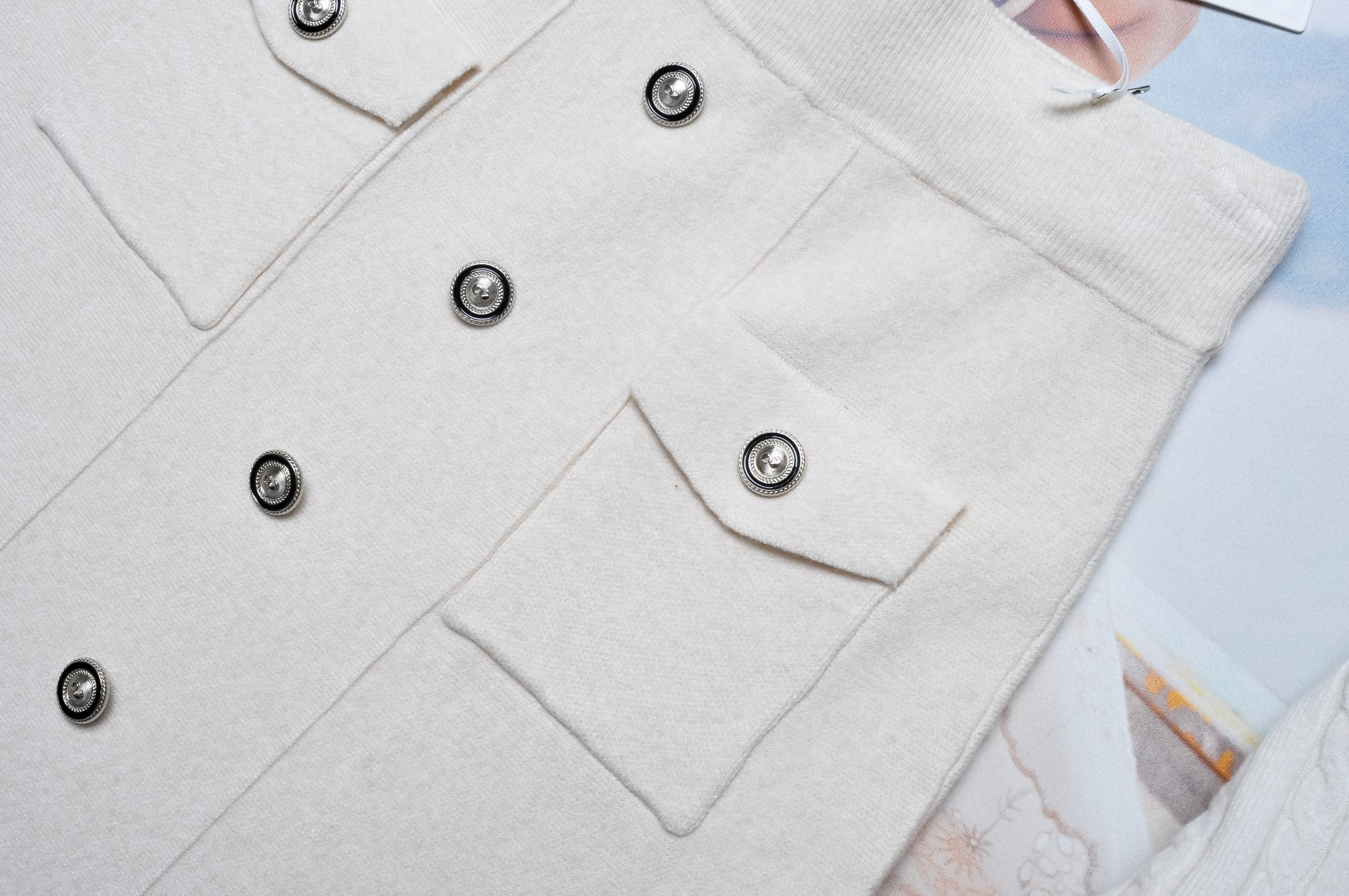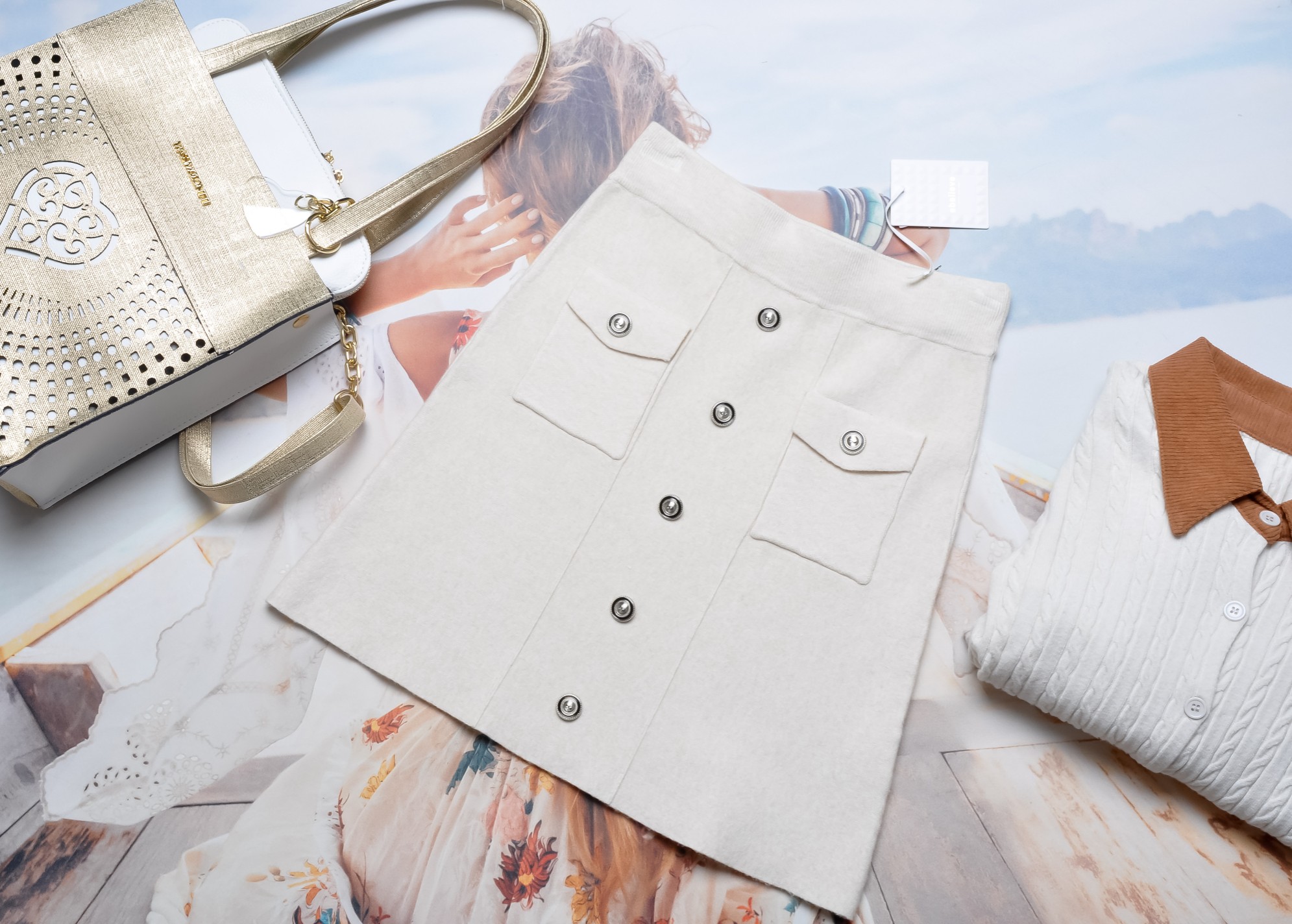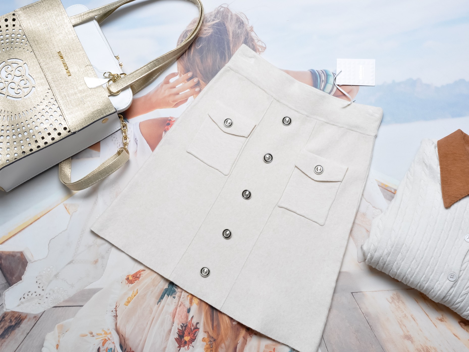 DZIANINOWA SPÓDNICA W KOLORZE KREMOWYM Z GUZICZKAMI