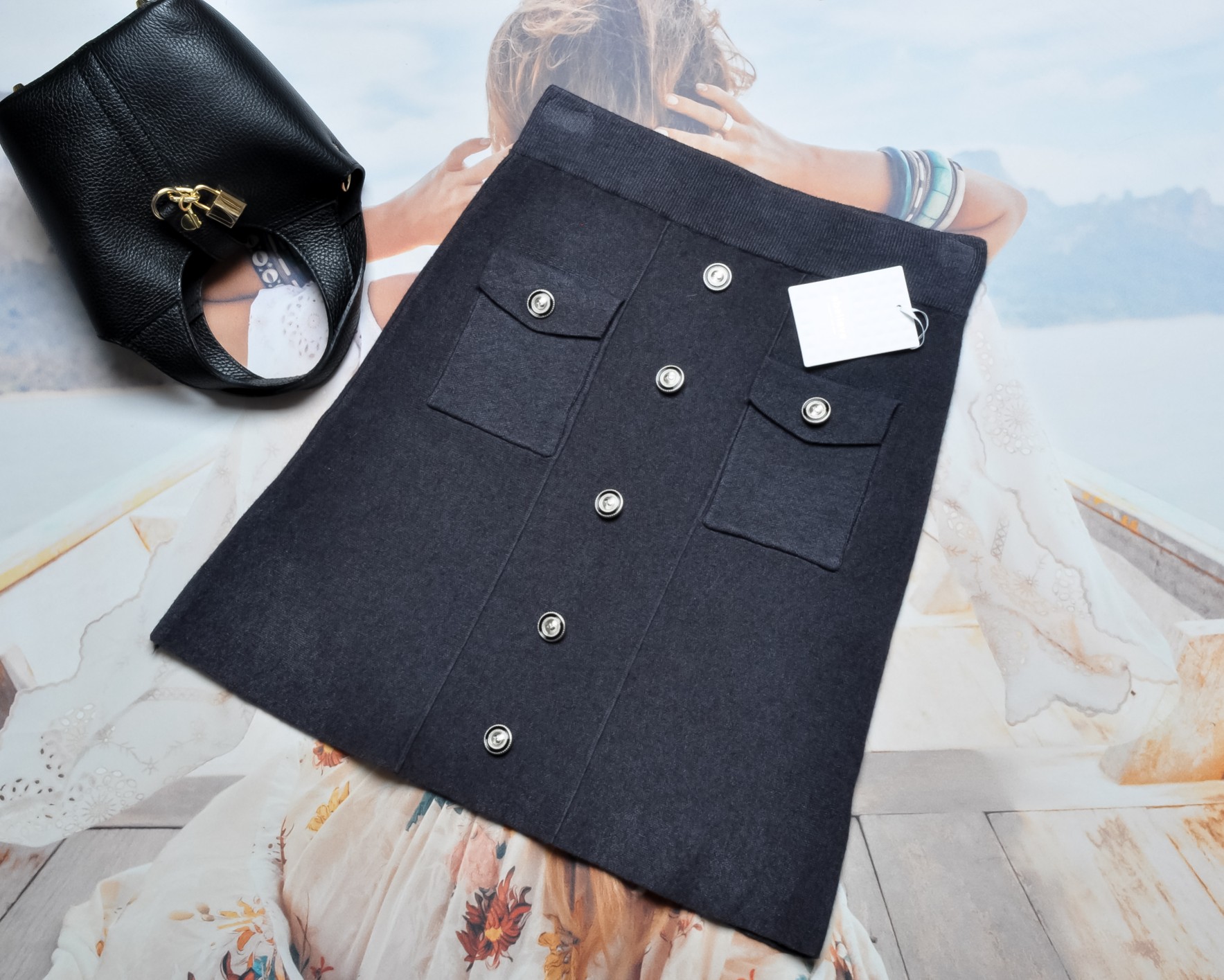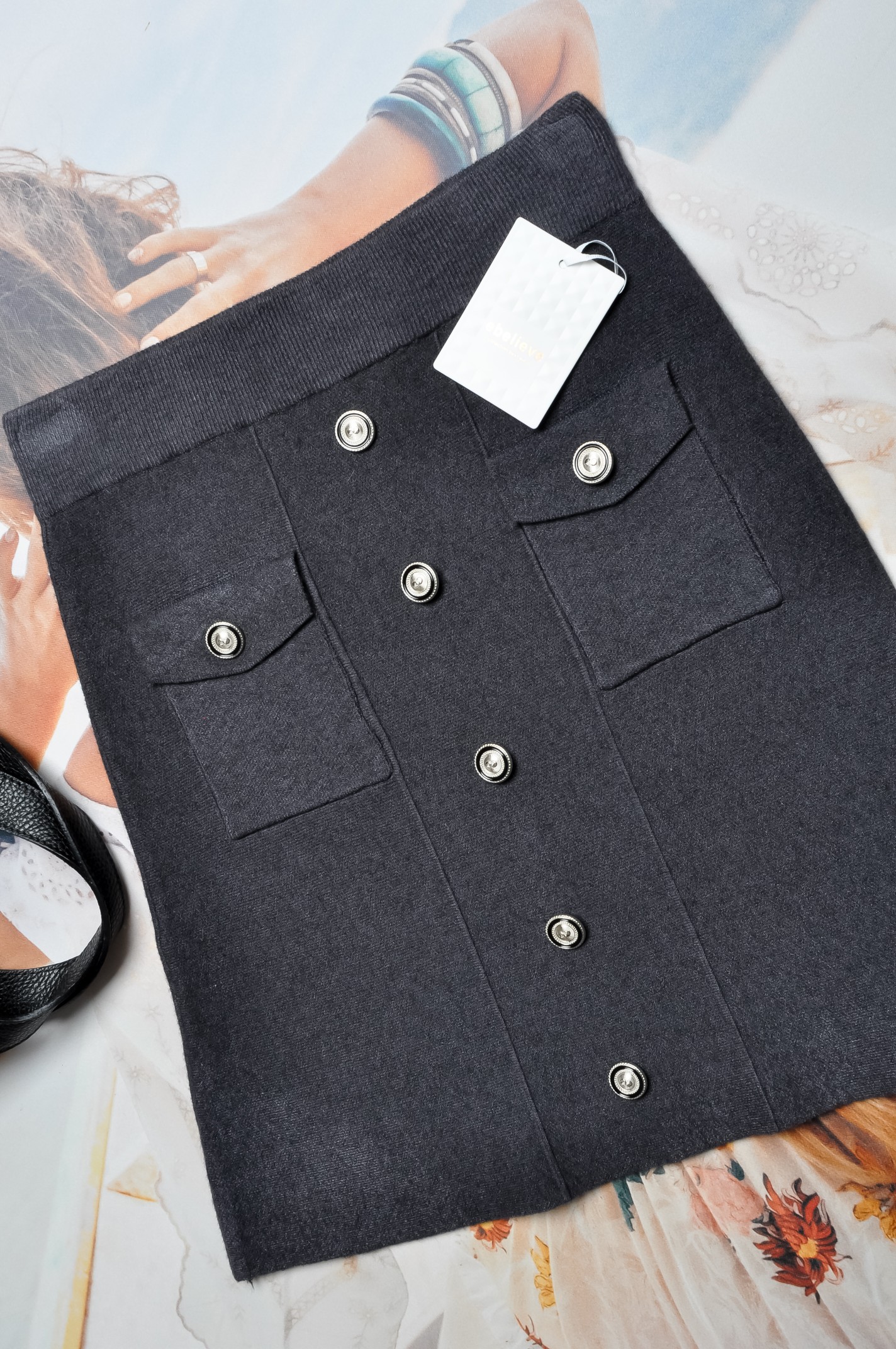 DZIANINOWA SPÓDNICA W KOLORZE SZARYM Z GUZICZKAMI