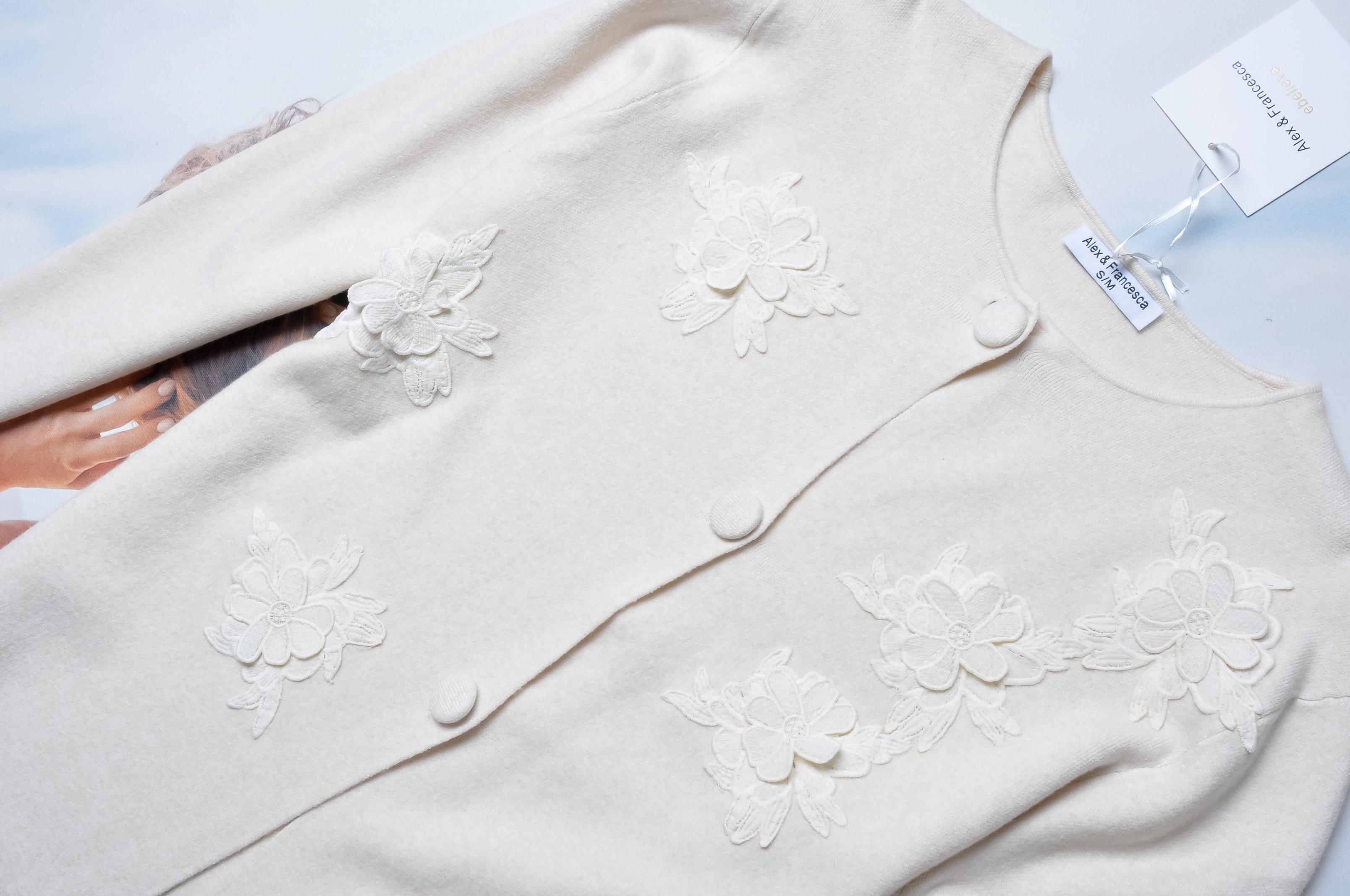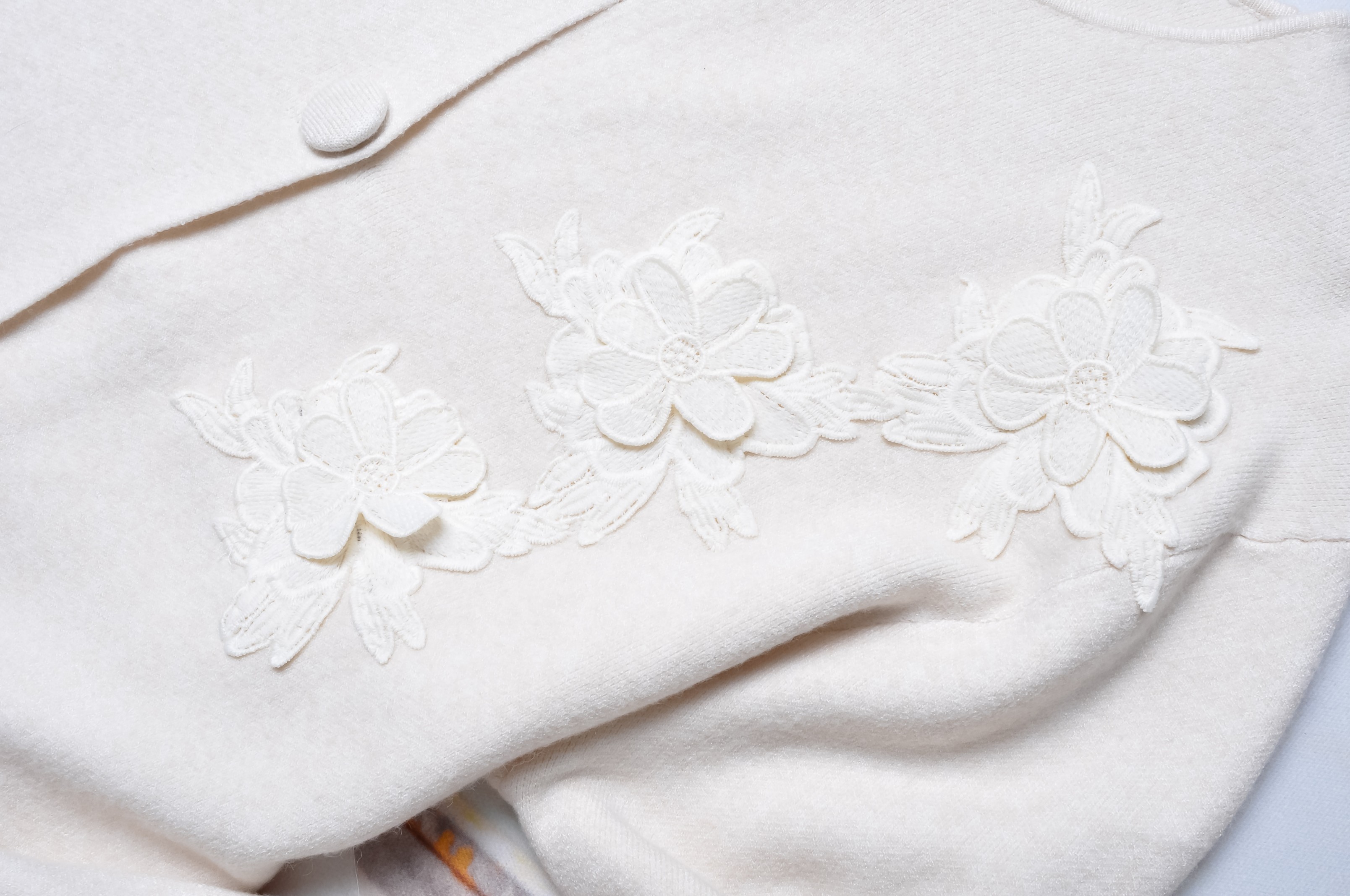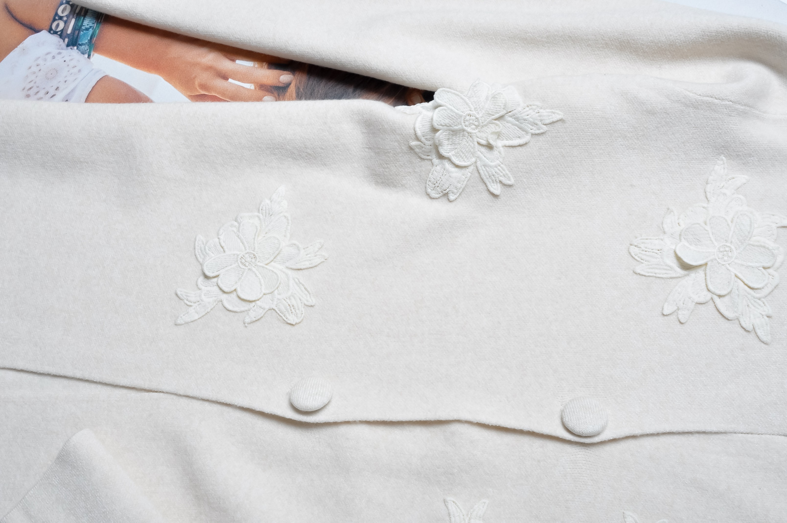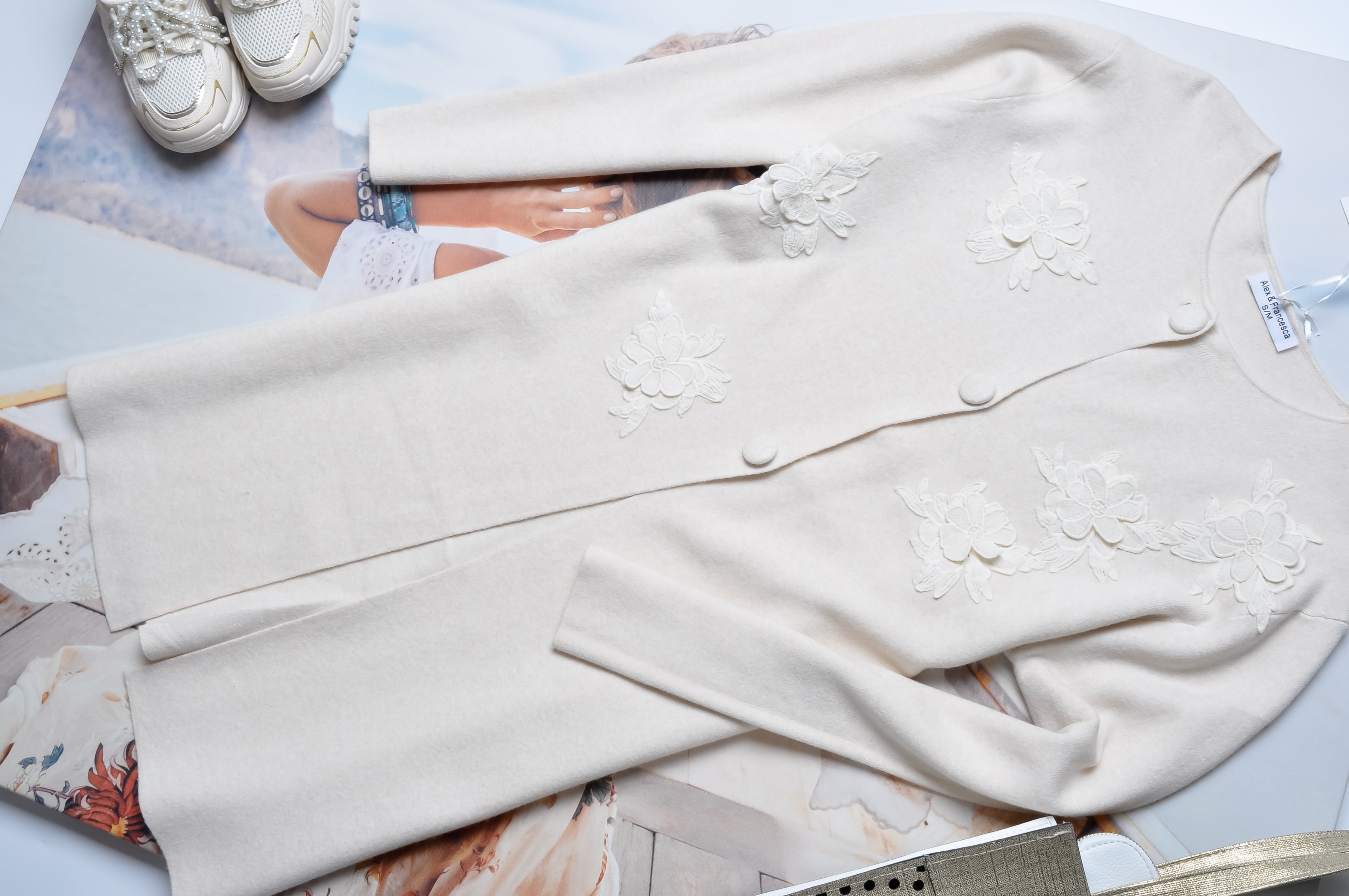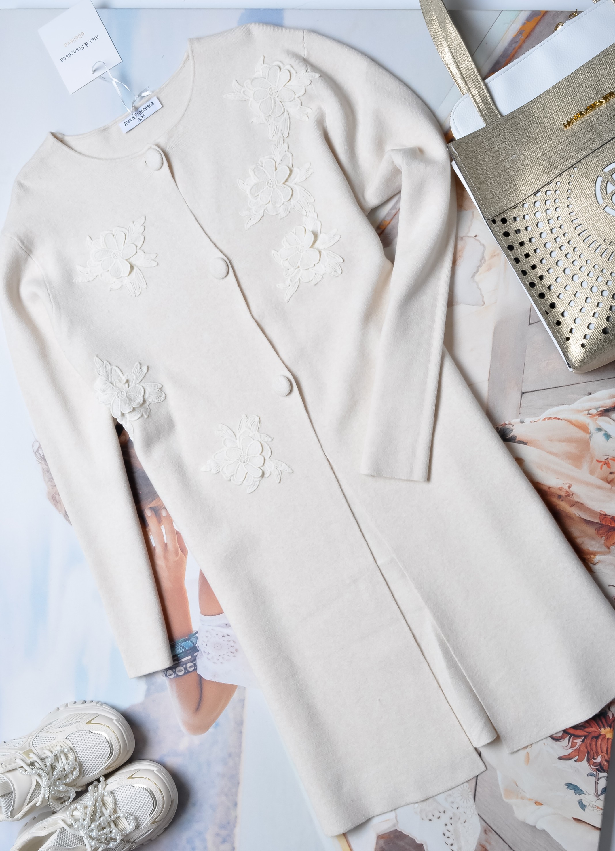 DZIANINOWA SUKIENKA/KARDIGAN - KREMOWA - GUZIKI - KWIATY