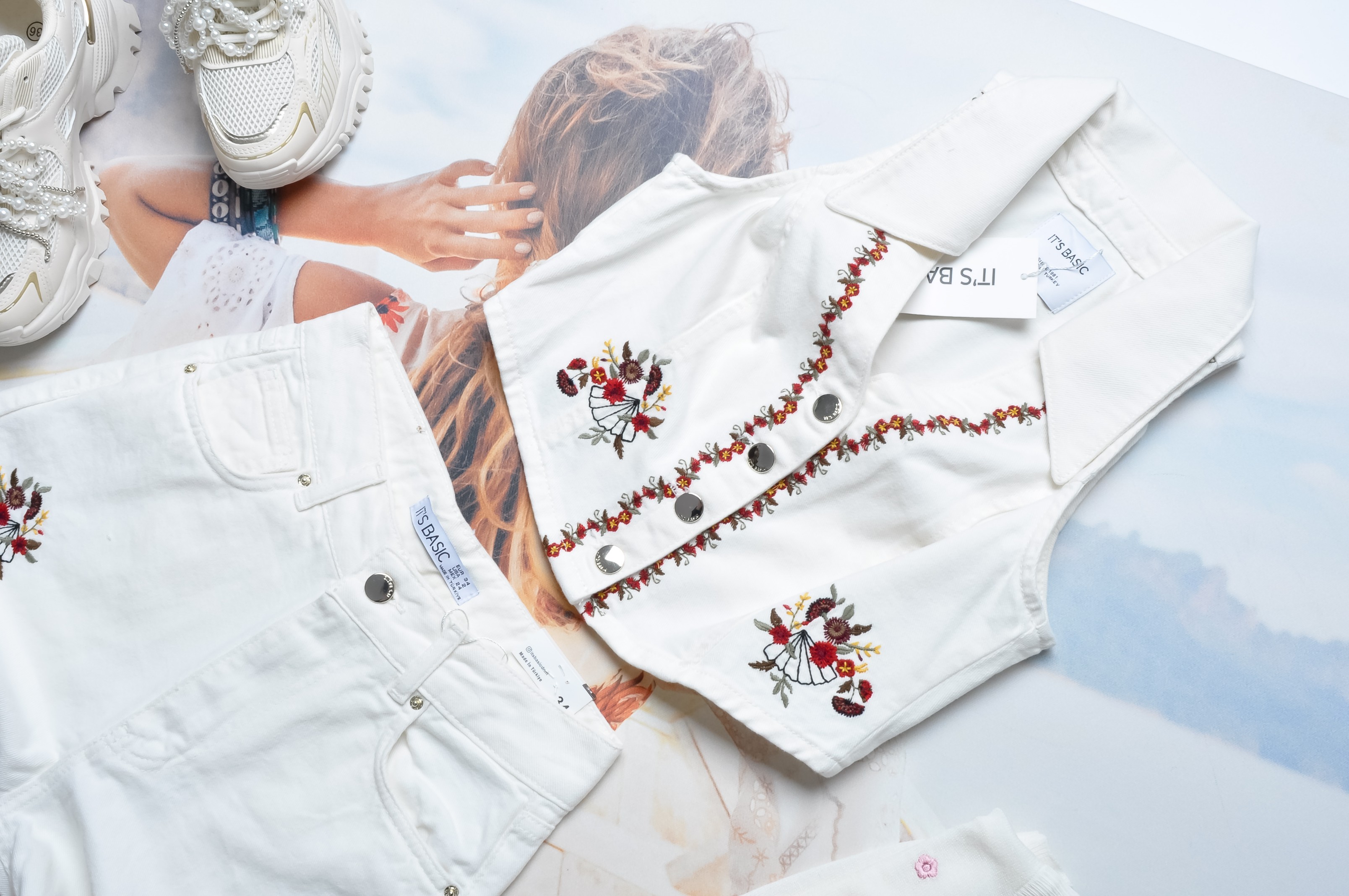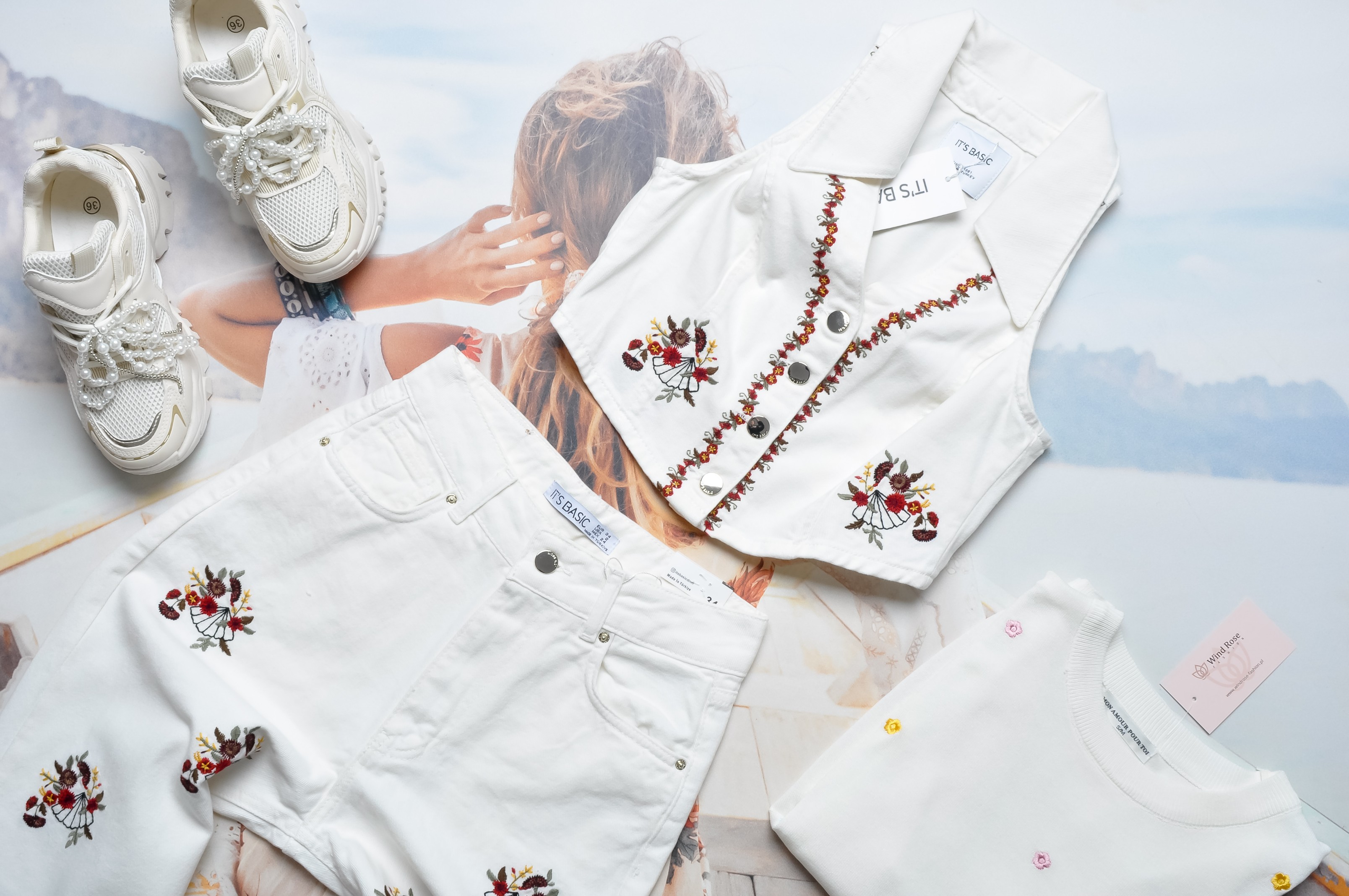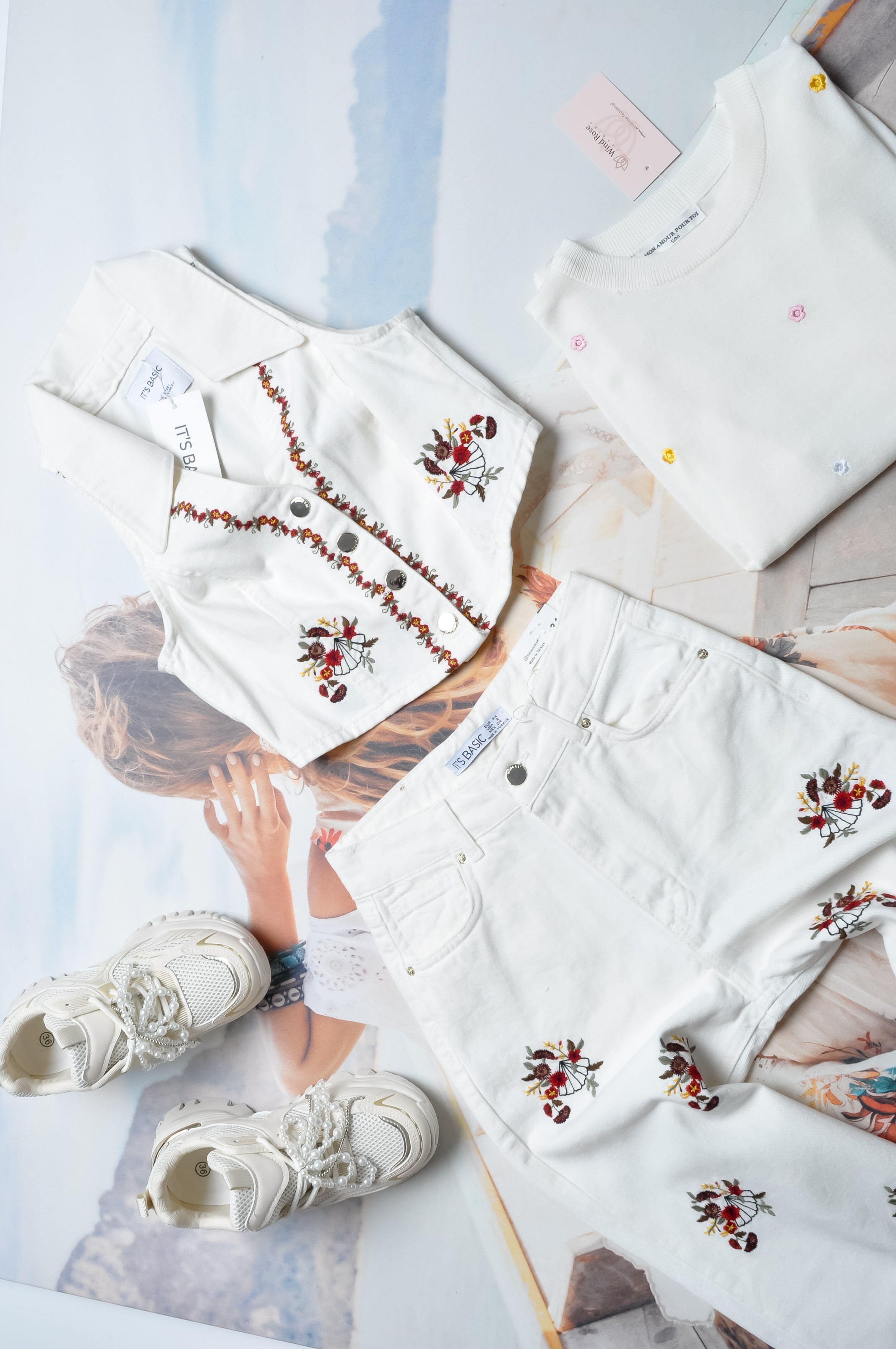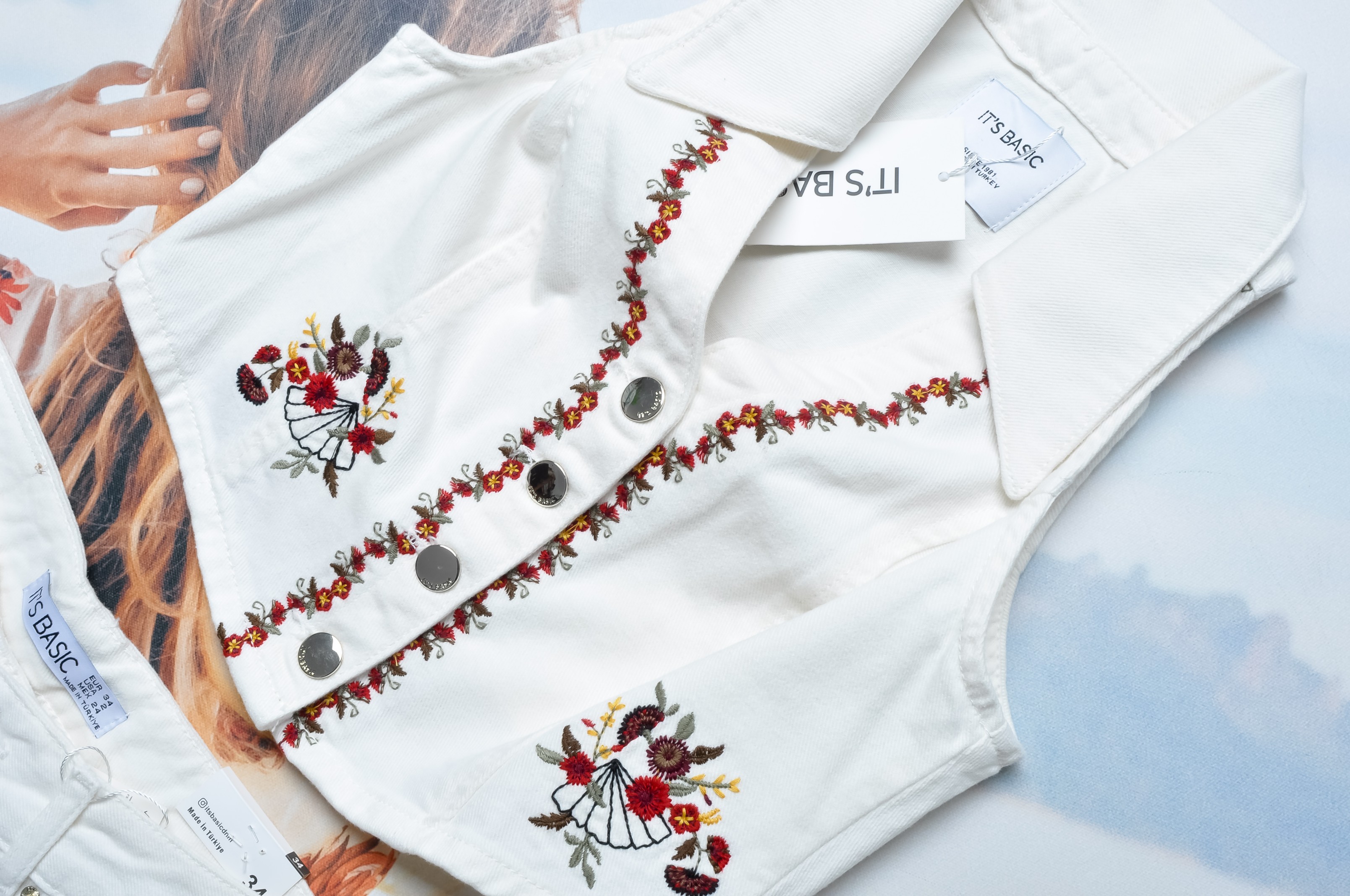 IT'S BASIC - KAMIZELKA ECRU - HAFTOWANE KWIATY