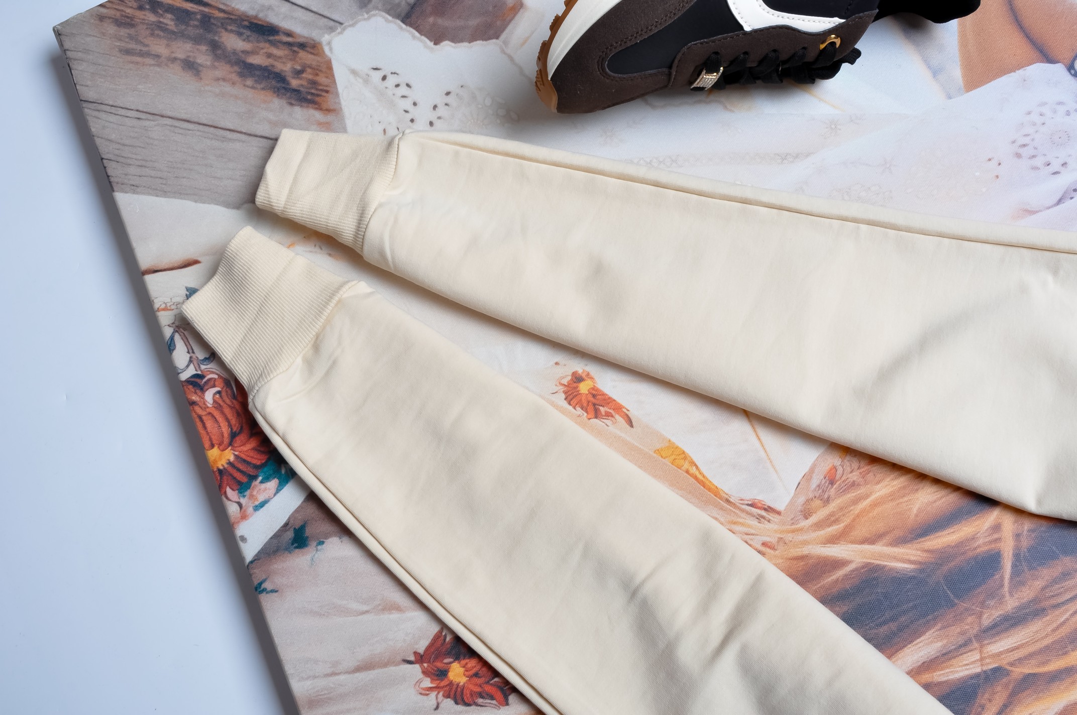 KREMOWE SPODNIE ZE ŚCIĄGACZAMI