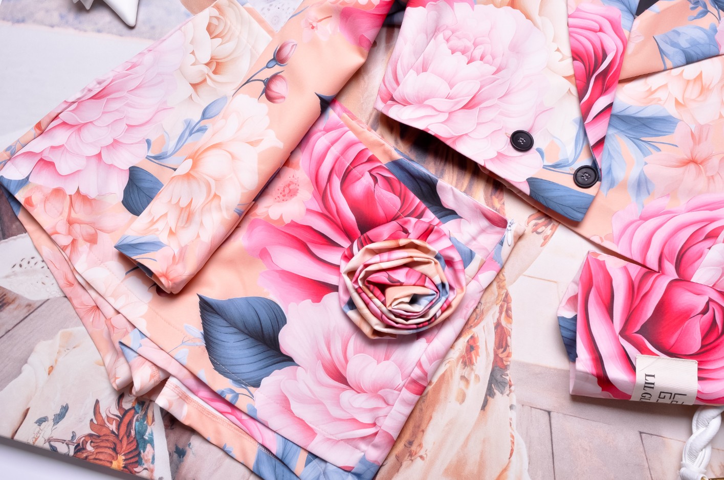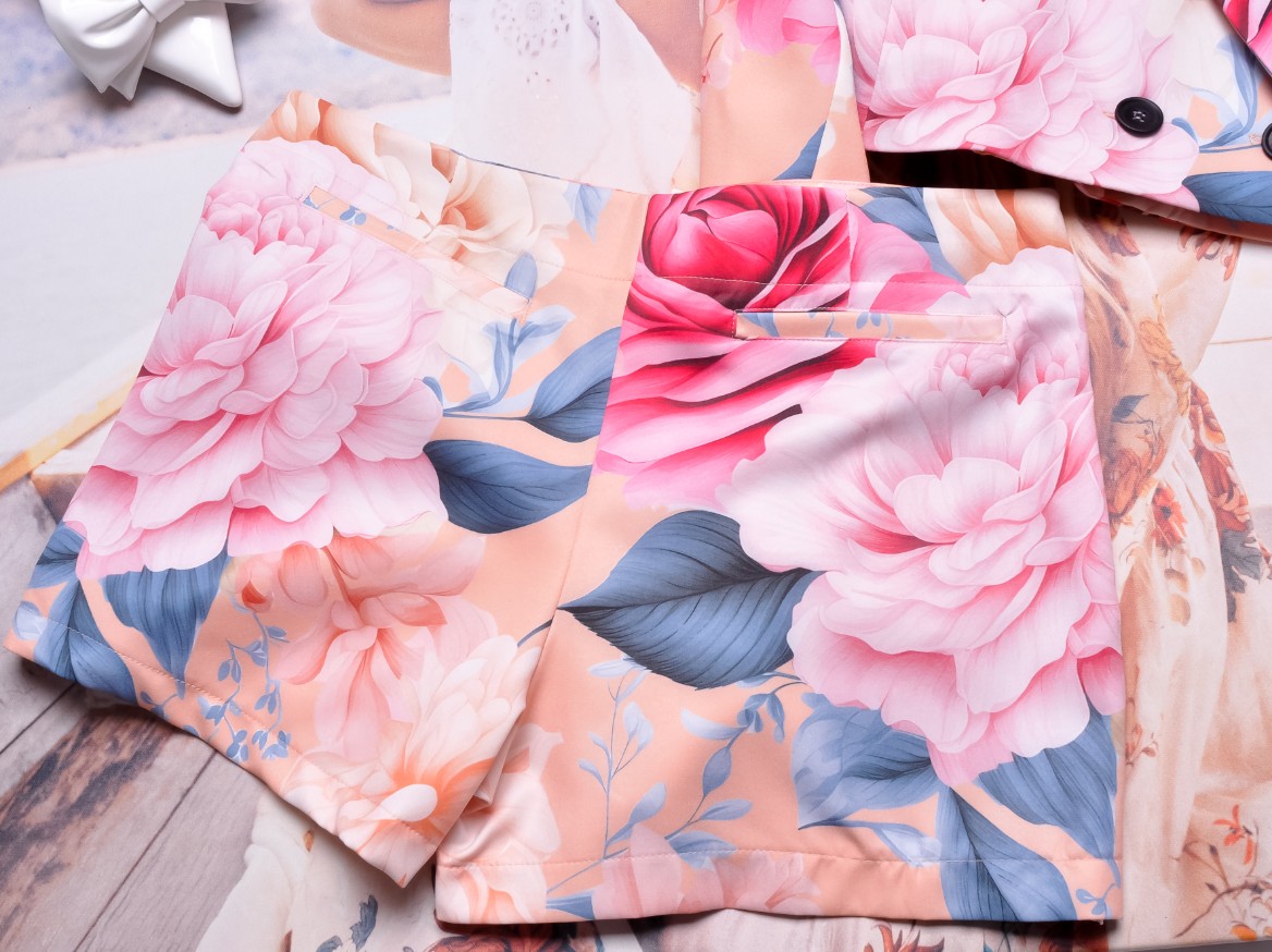 LIL GLAM MORELOWY KOMPLET Z KWIECISTYM MOTYWEM ZE SPÓDNICO-SPODENKAMI