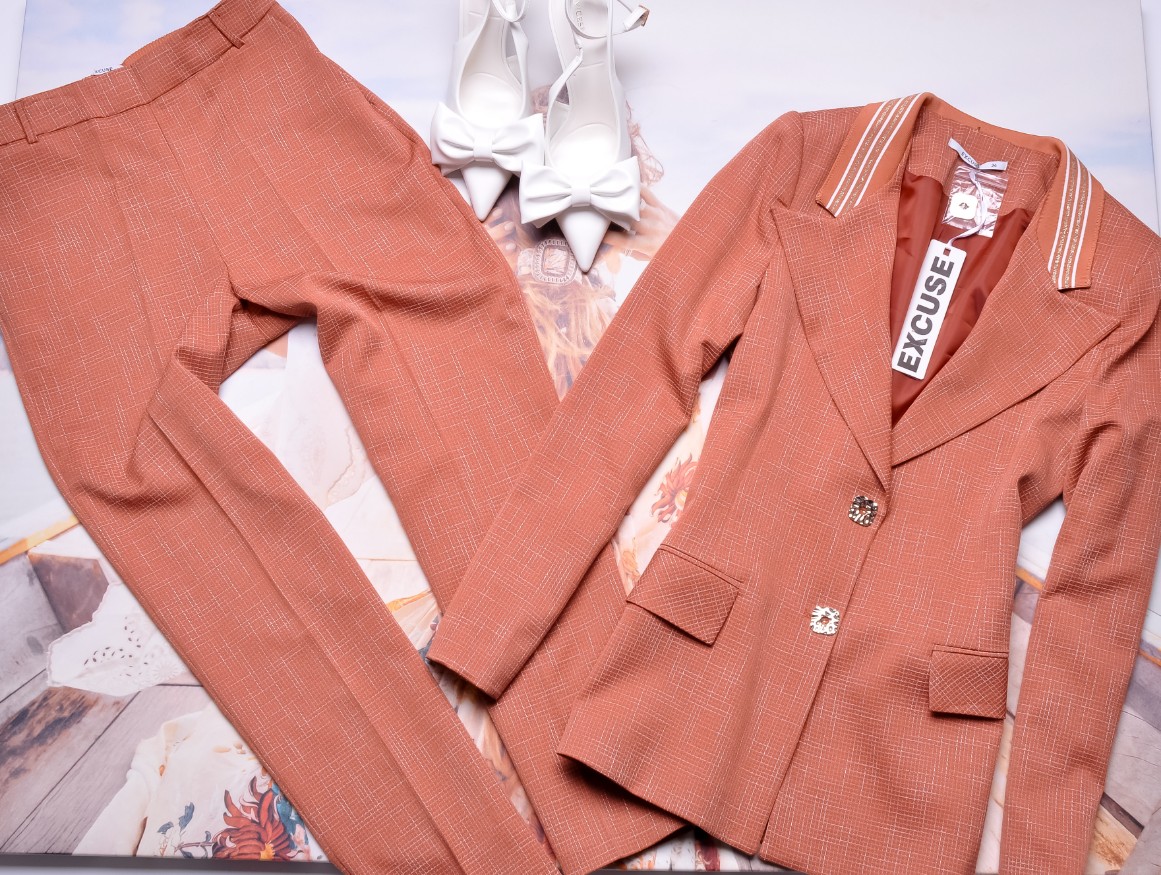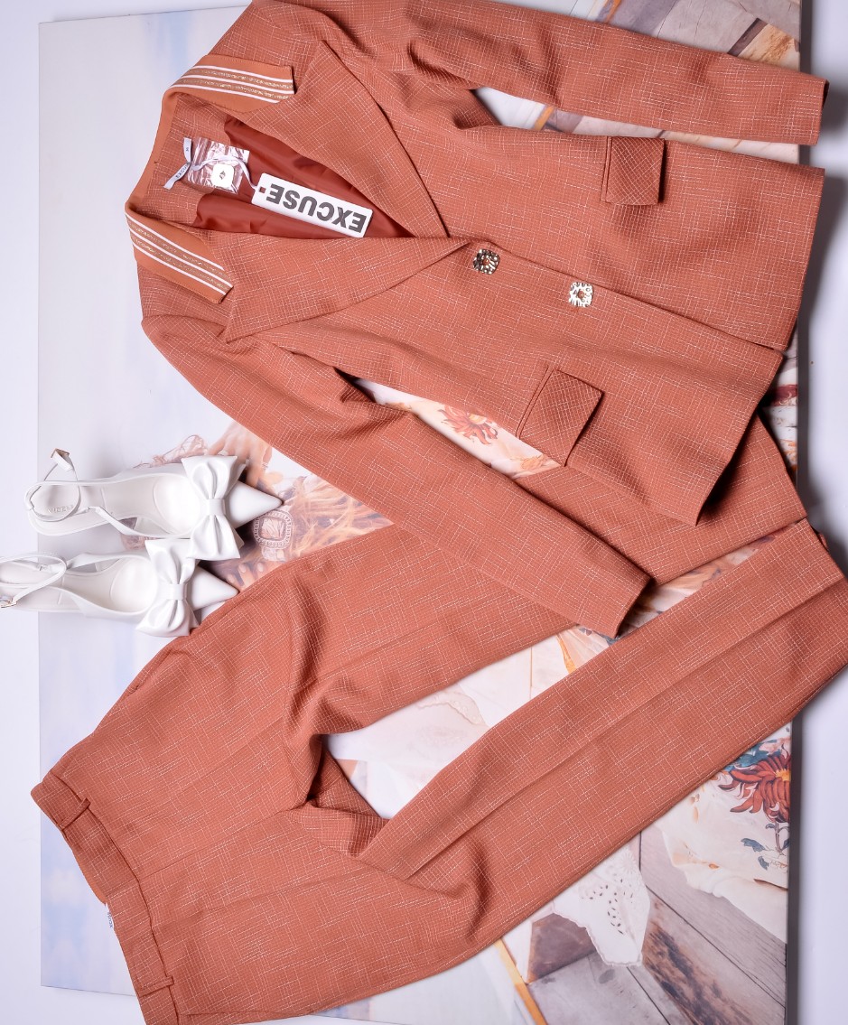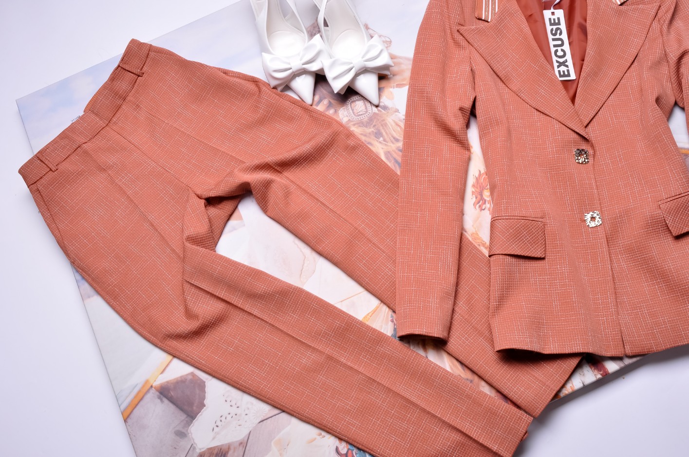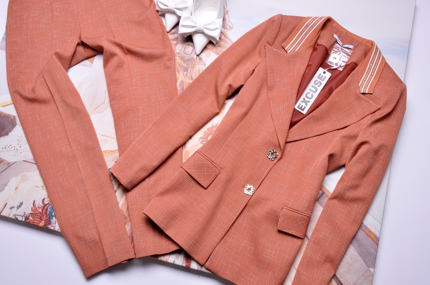 ŁOSOSIOWY ELEGANCKI KOMPLET - MARYNARKA - SPODNIE