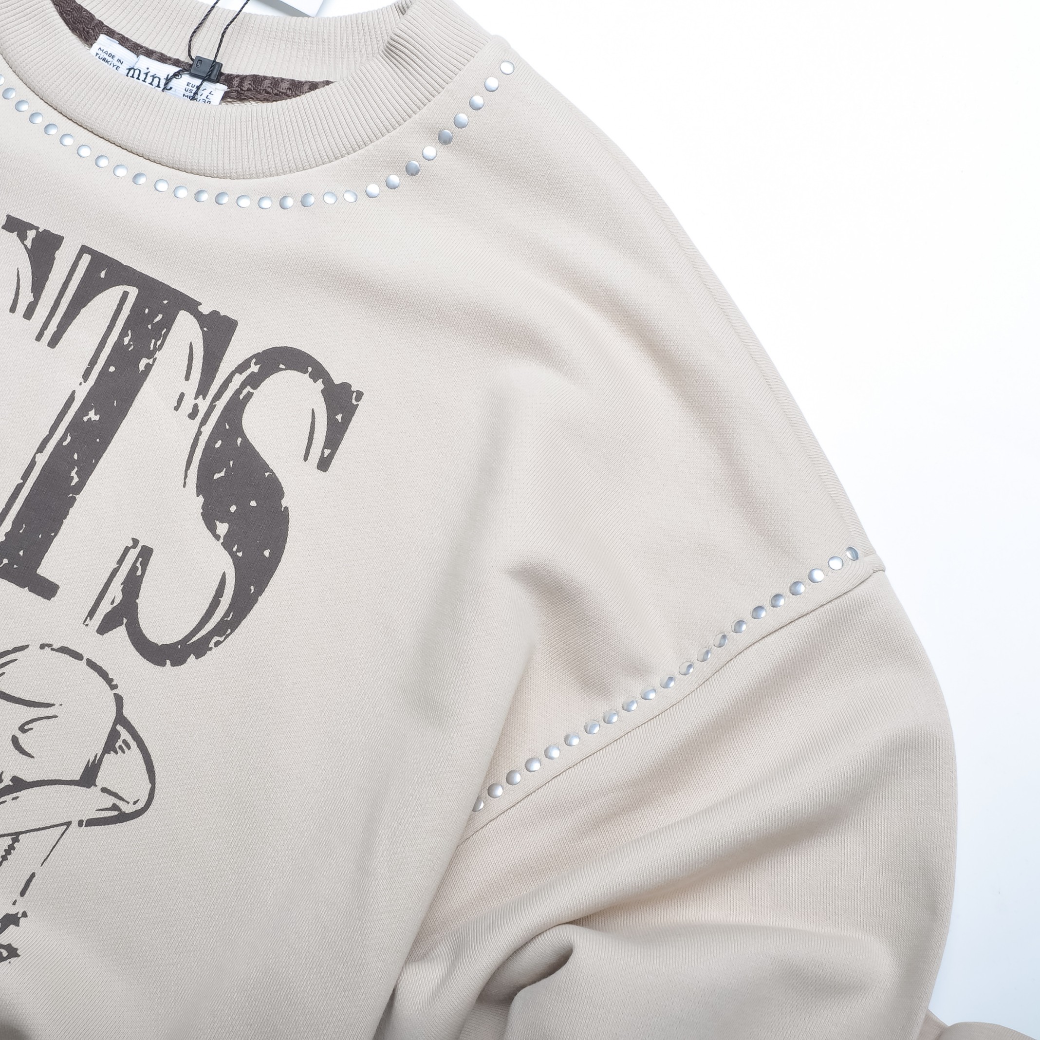 MINT - BEŻOWA BLUZA - BRĄZOWE NAPISY - CYRKONIE