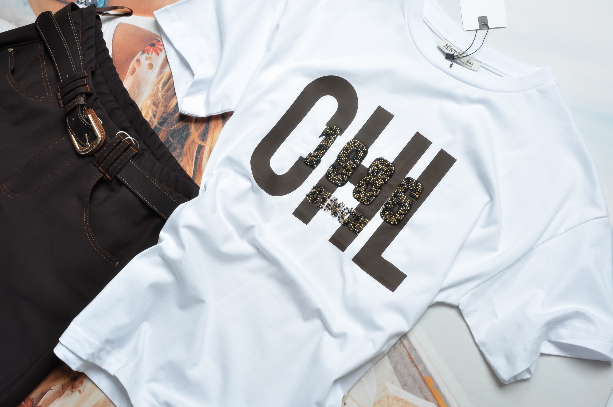 MINT - BIAŁA BLUZKA - KORALIKOWE NAPISY