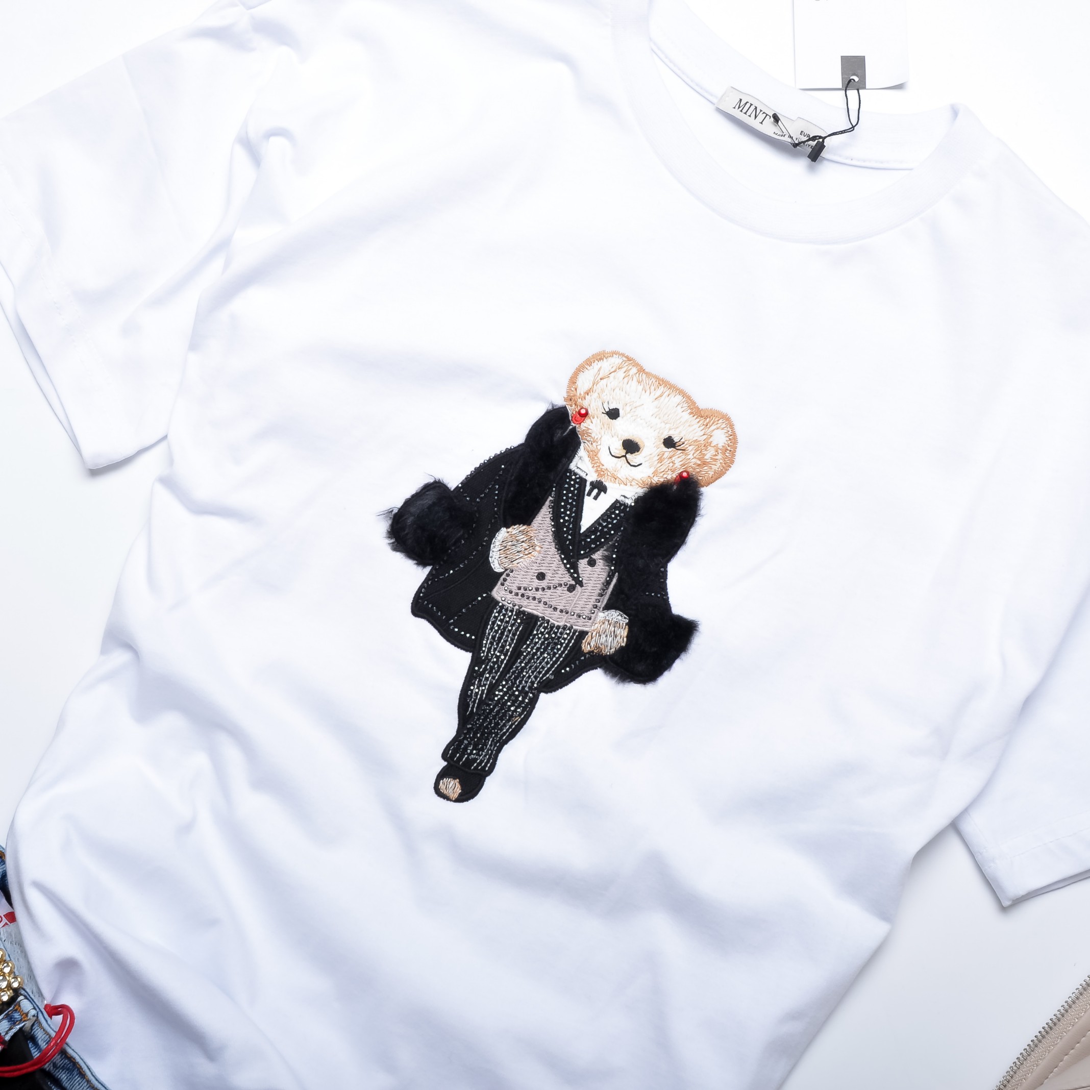 MINT - BIAŁA BLUZKA - MIŚ Z FUTERKIEM