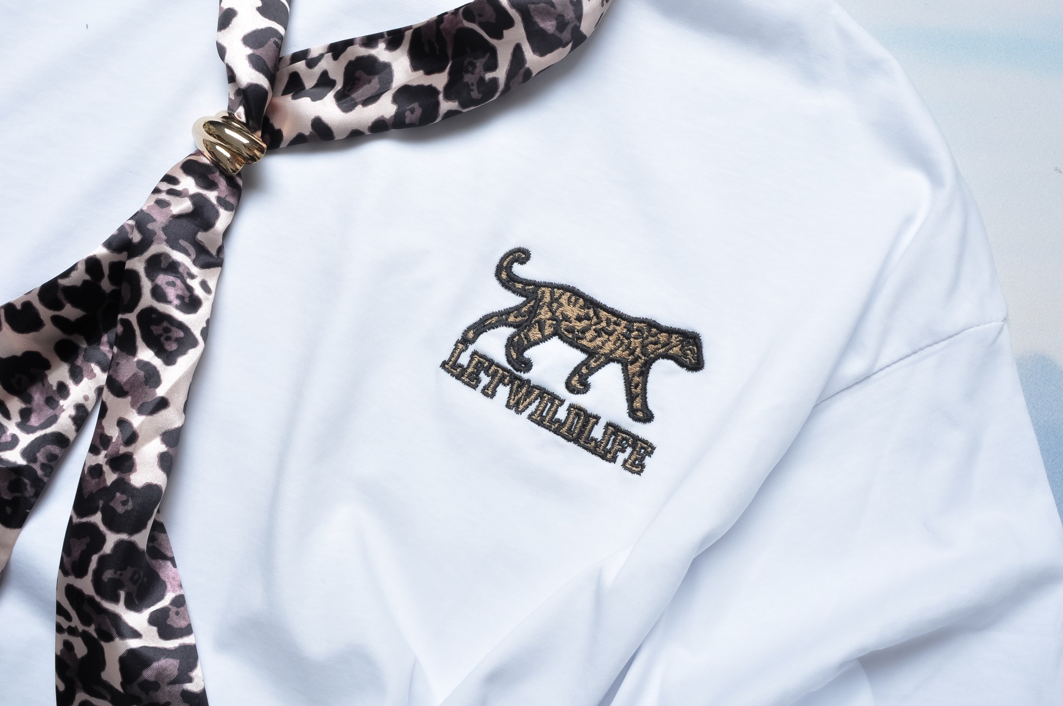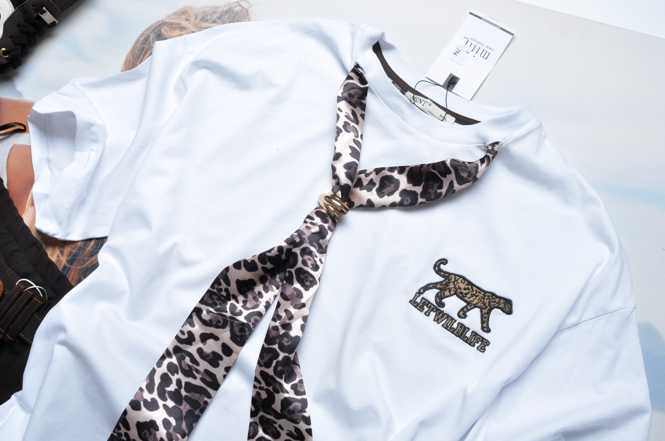 MINT - BIAŁA BLUZKA Z PANTERKOWYM FULAREM