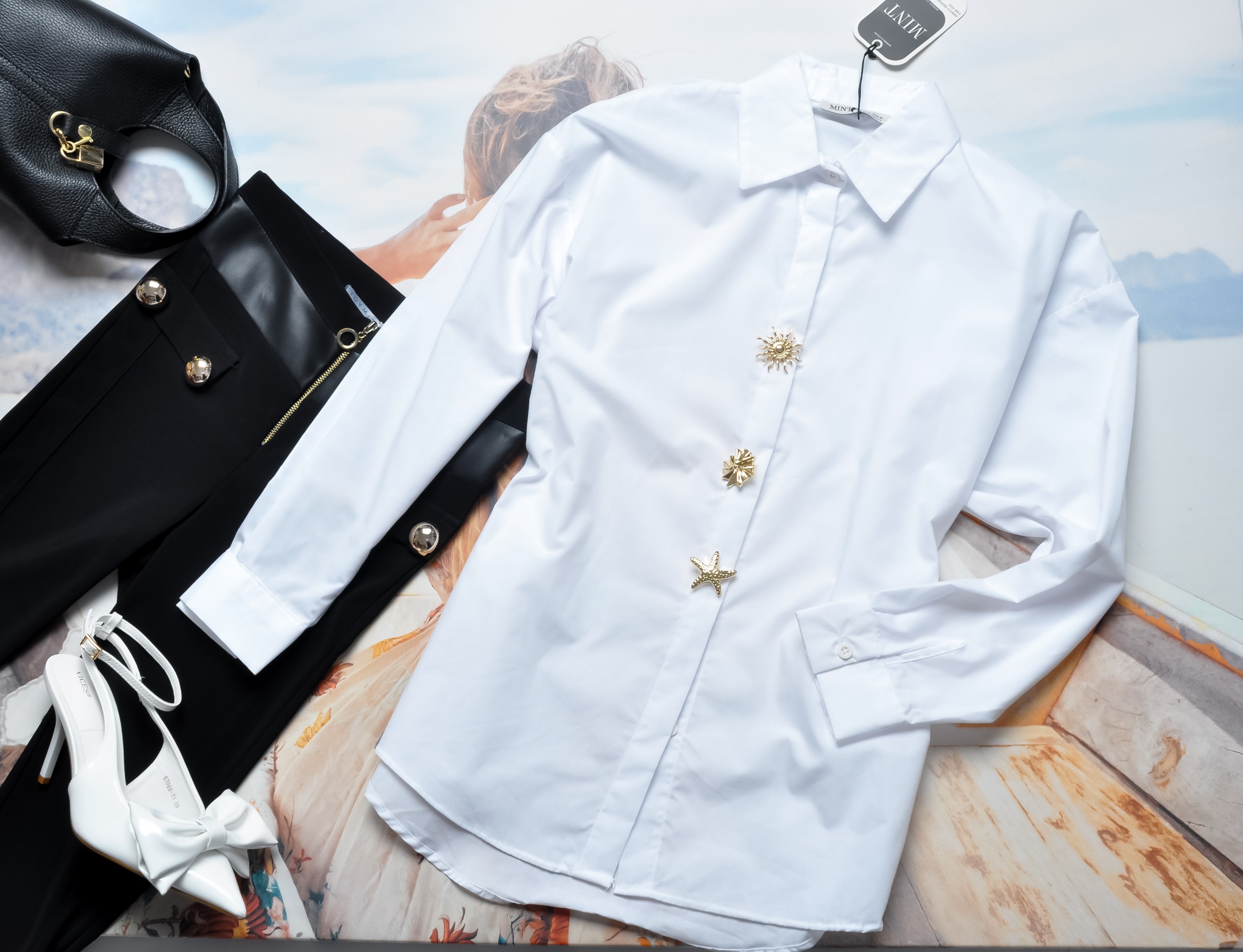 MINT - BIAŁA KOSZULA - ZŁOTE PRZYSZYWKI