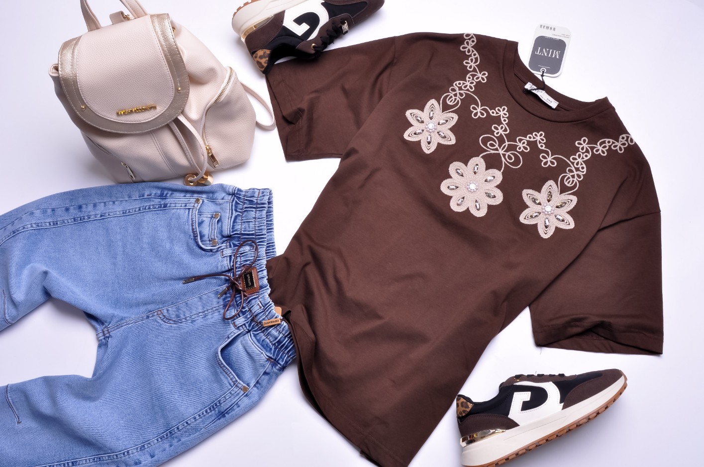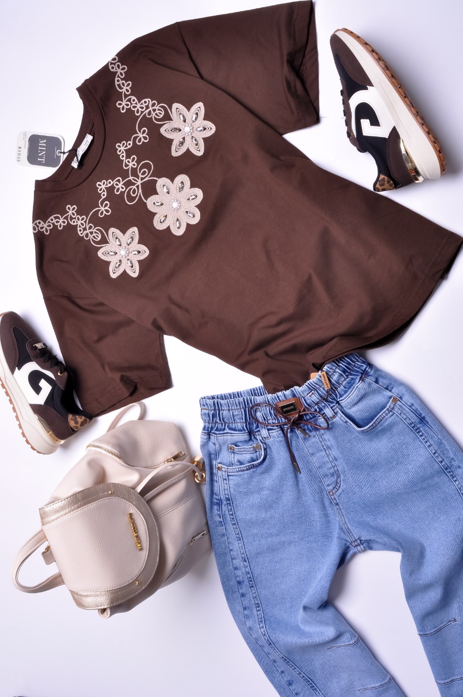 MINT - BRĄZOWA BLUZKA - ESY FLORESY - KWIATY - CYRKONIE