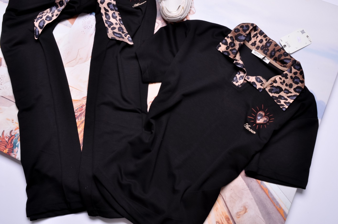 MINT - CZARNY DRES - PANTERKOWY KOŁNIERZYK