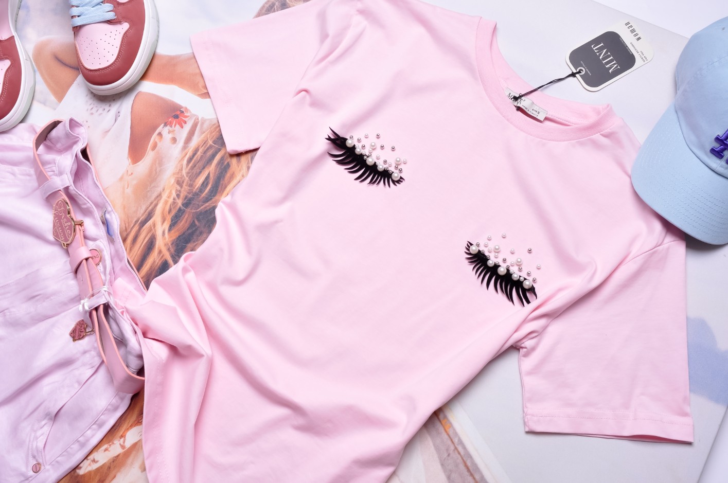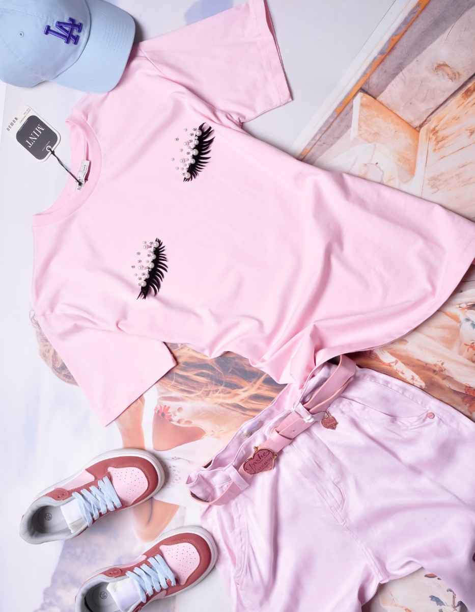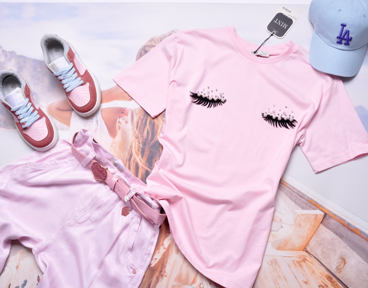 MINT - RÓŻOWA BLUZKA - RZĘSY - PEREŁKI