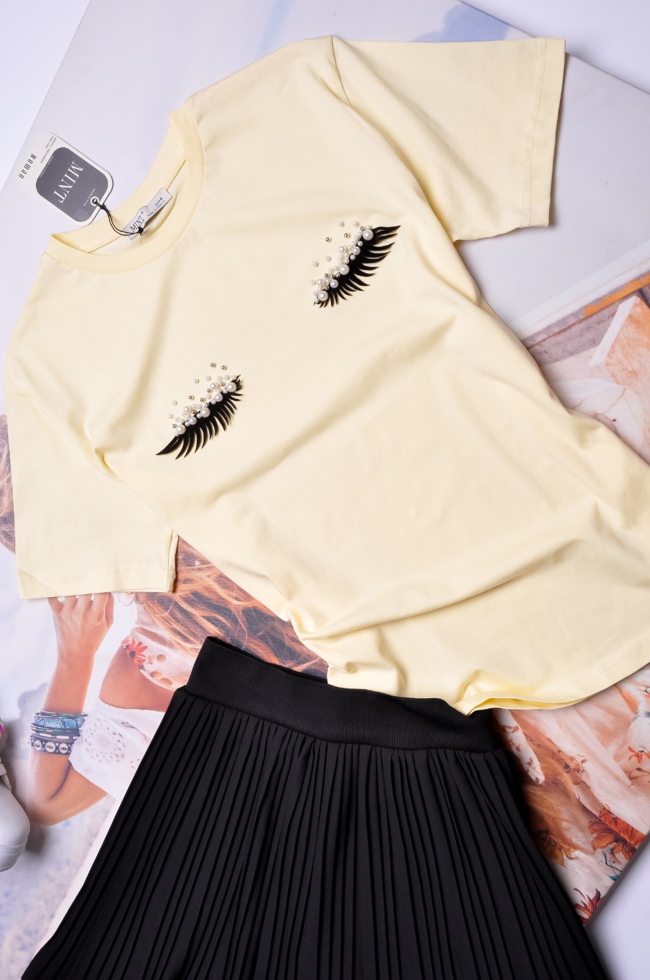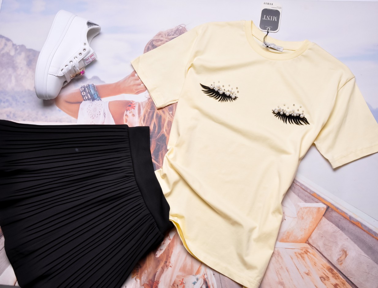 MINT - ŻÓŁTA BLUZKA - RZĘSY - PEREŁKI