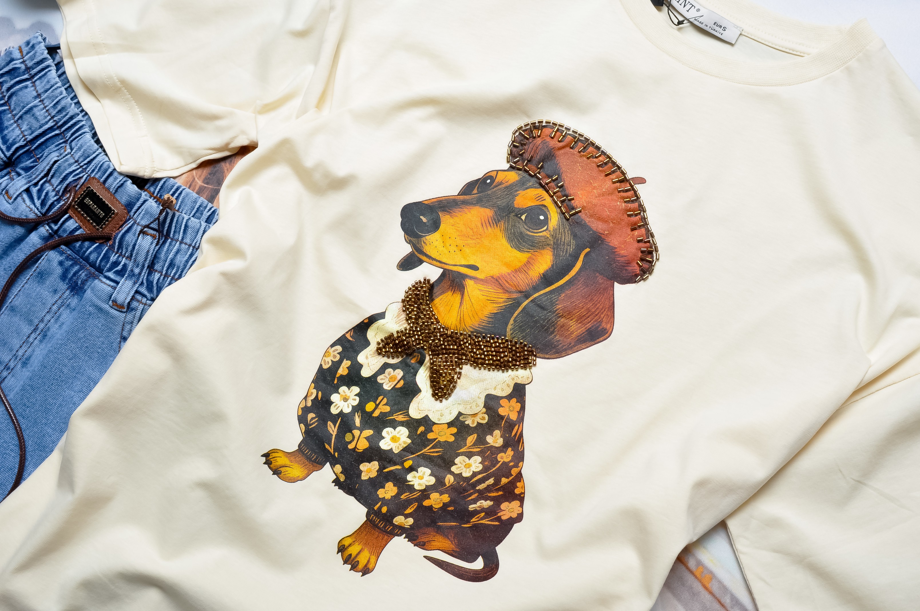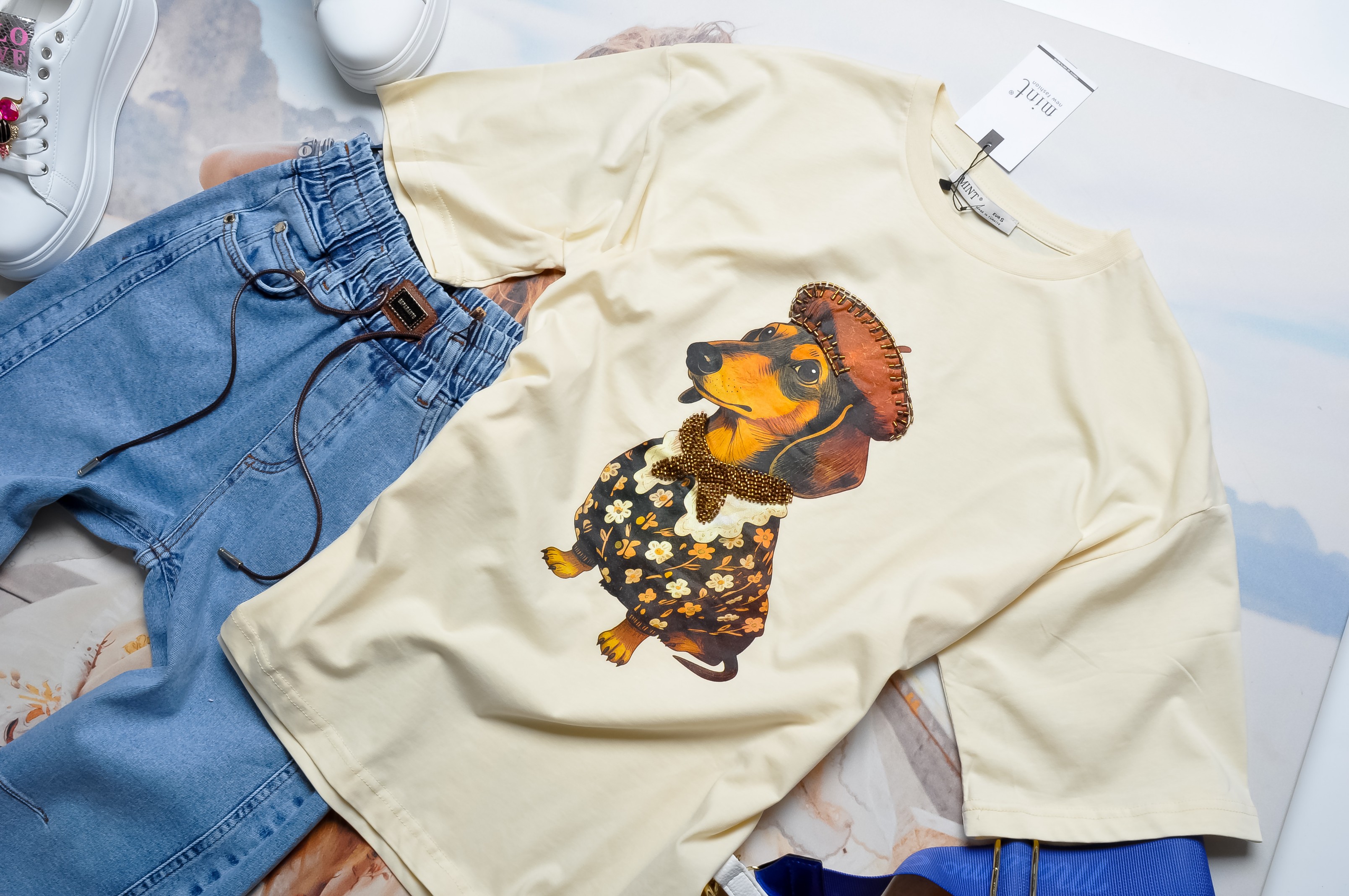 MINT - ŻÓŁTA BLUZKA Z UROCZYM JAMNIKIEM