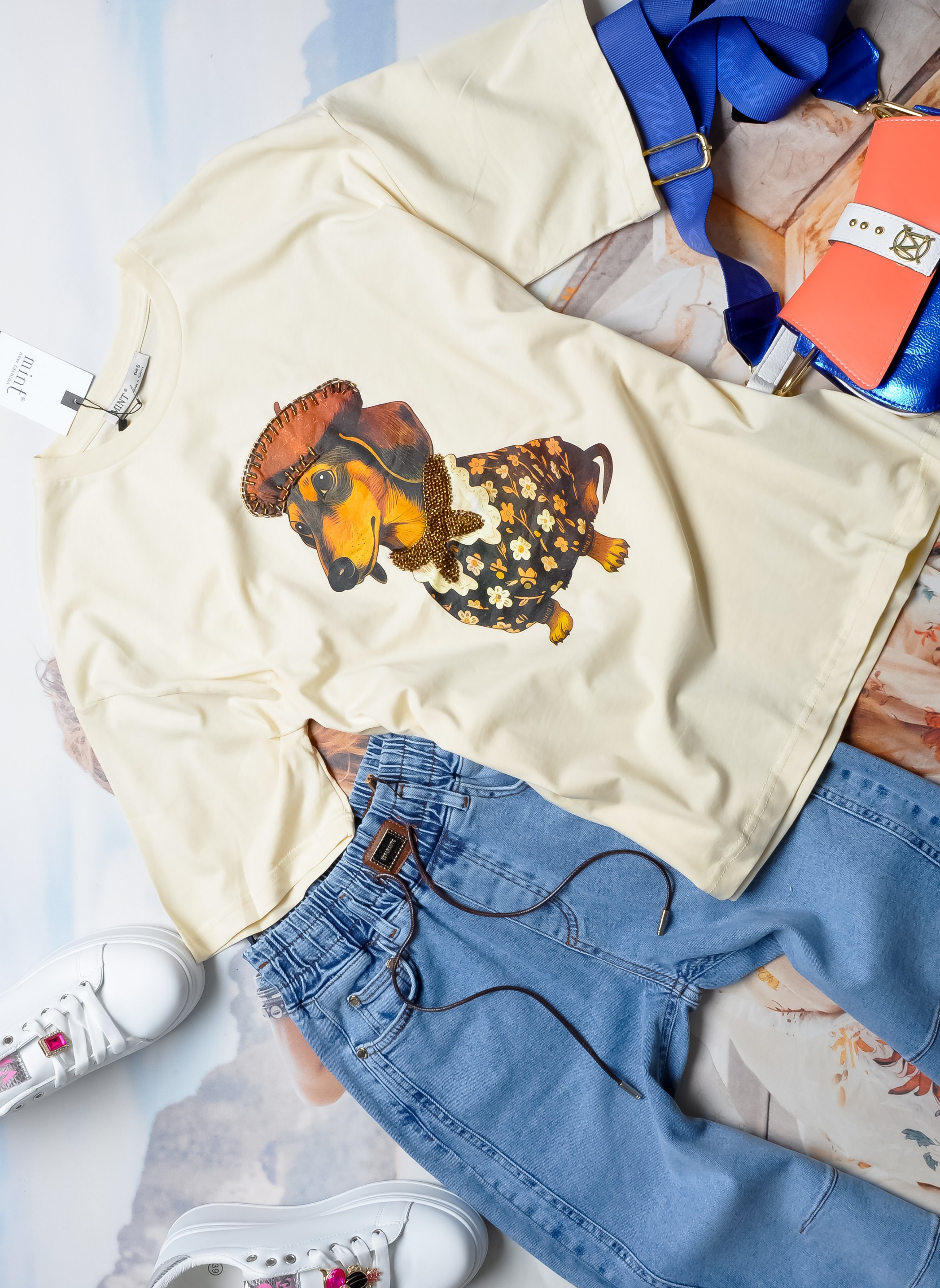 MINT - ŻÓŁTA BLUZKA Z UROCZYM JAMNIKIEM