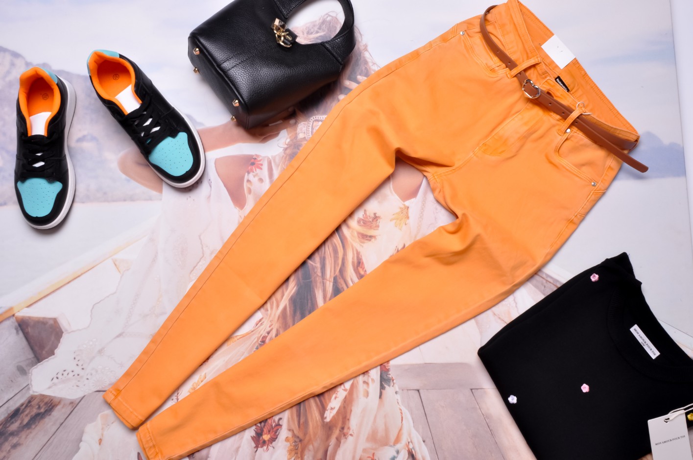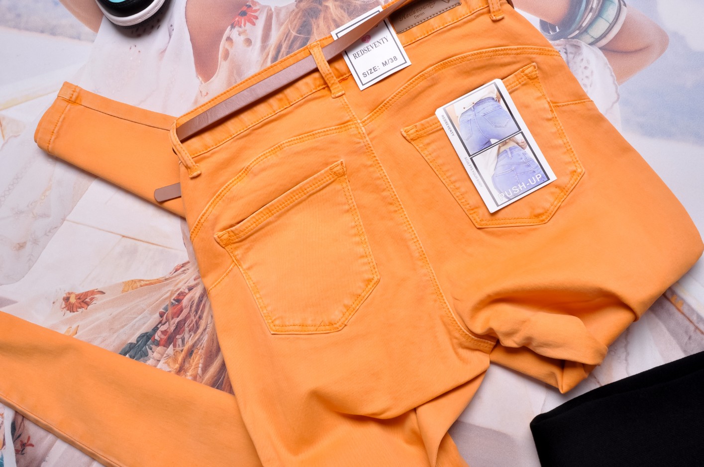 POMARAŃCZOWE SPODNIE - PUSH UP + PASEK