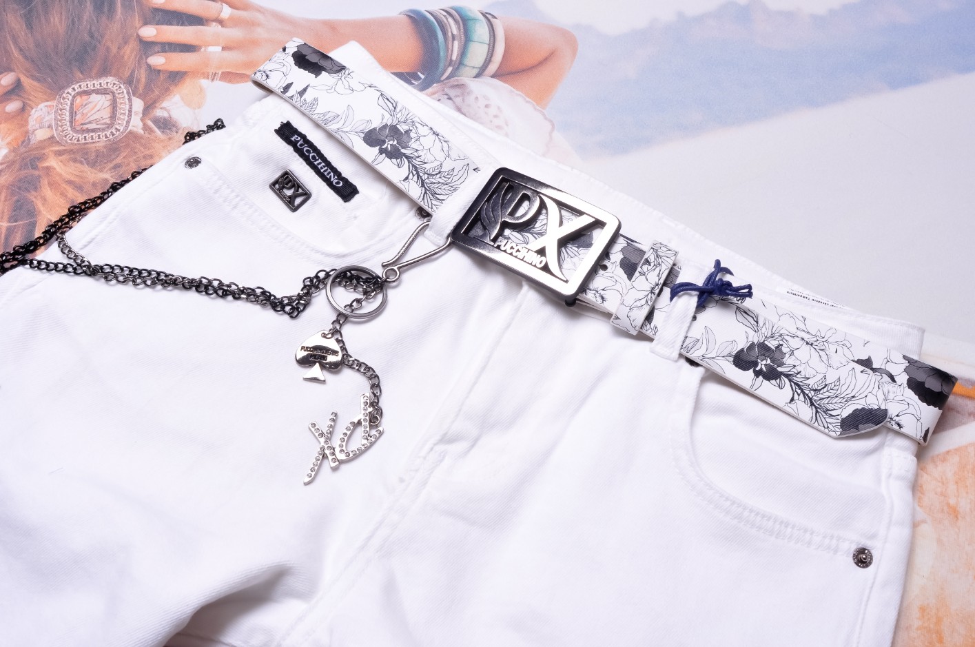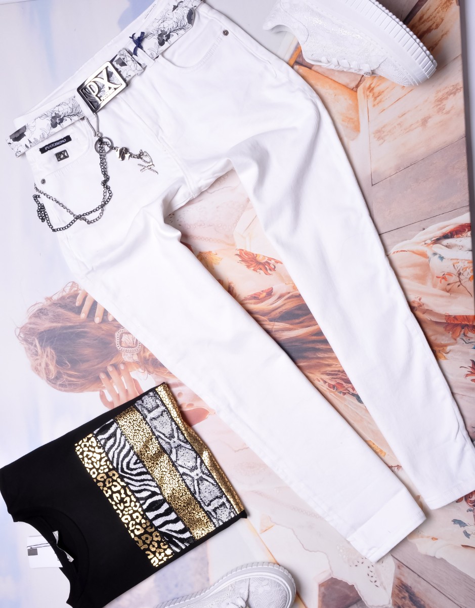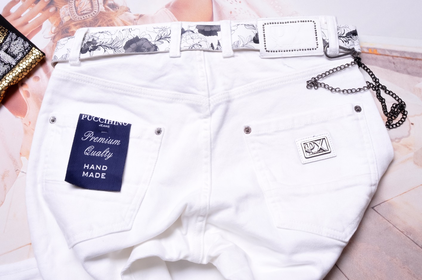 PUCCIHINO - BIAŁE JEANSY BOYFRIEND Z PASKIEM